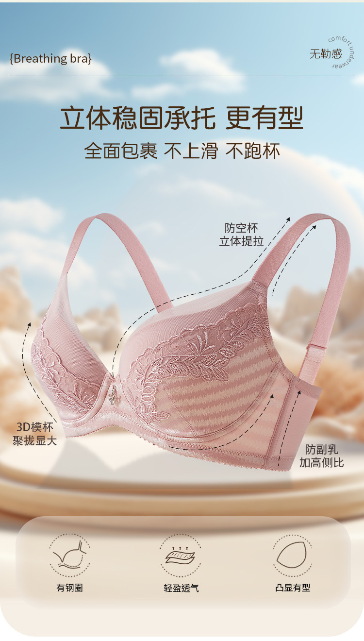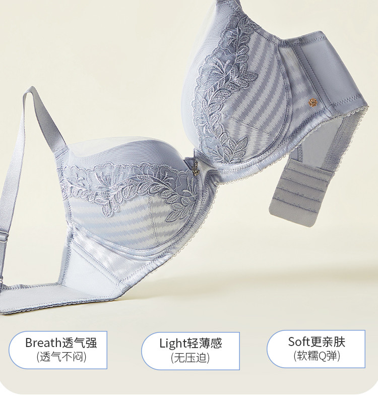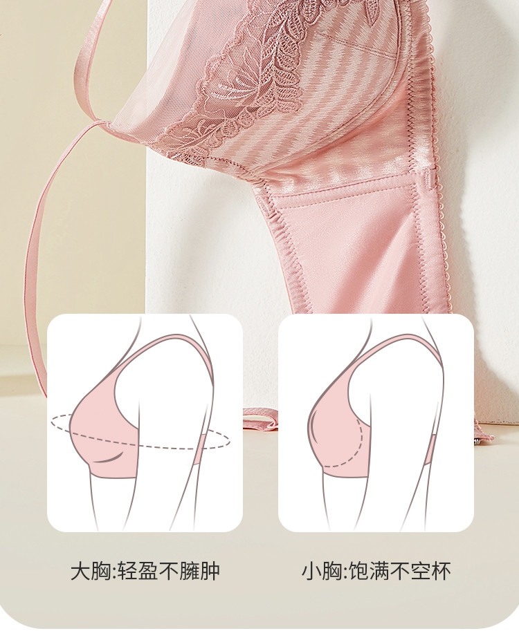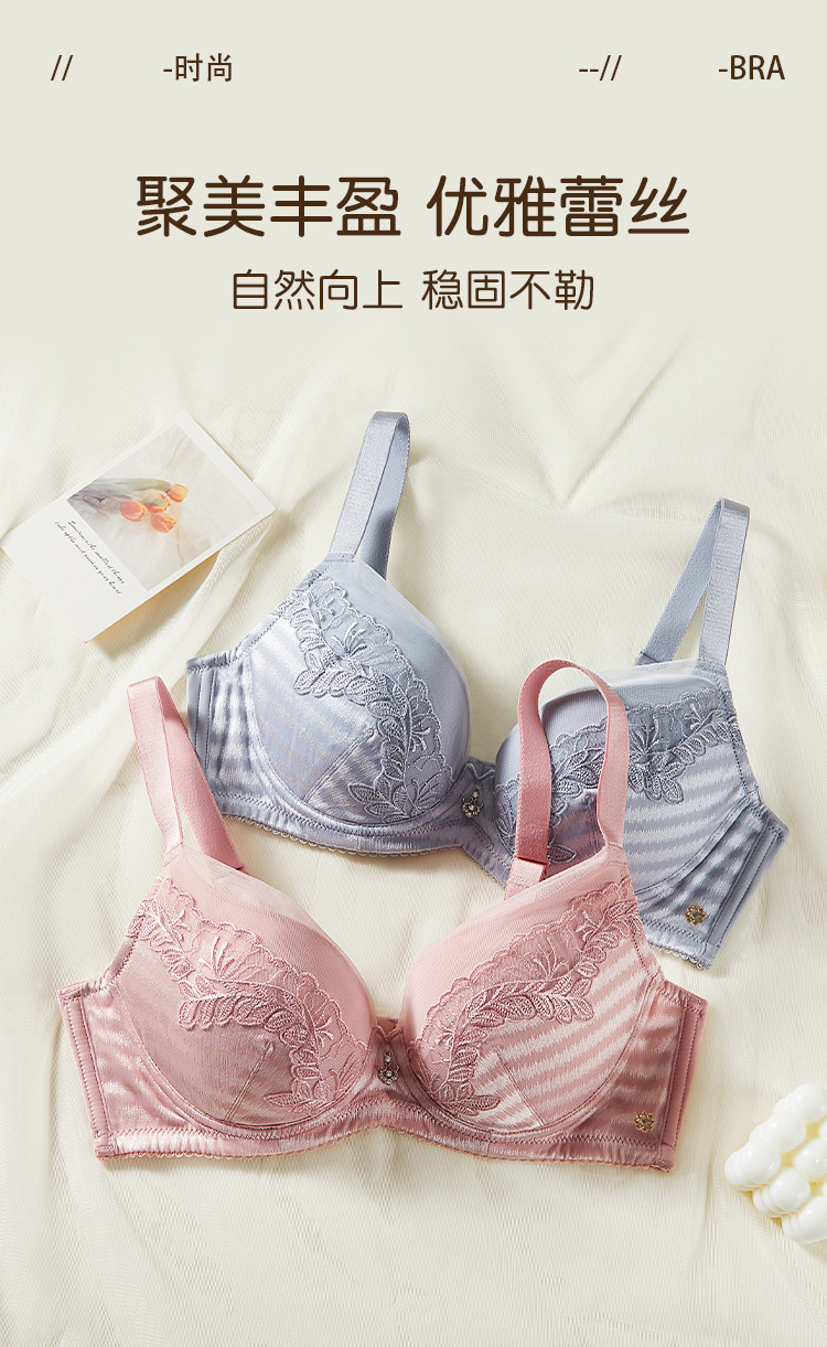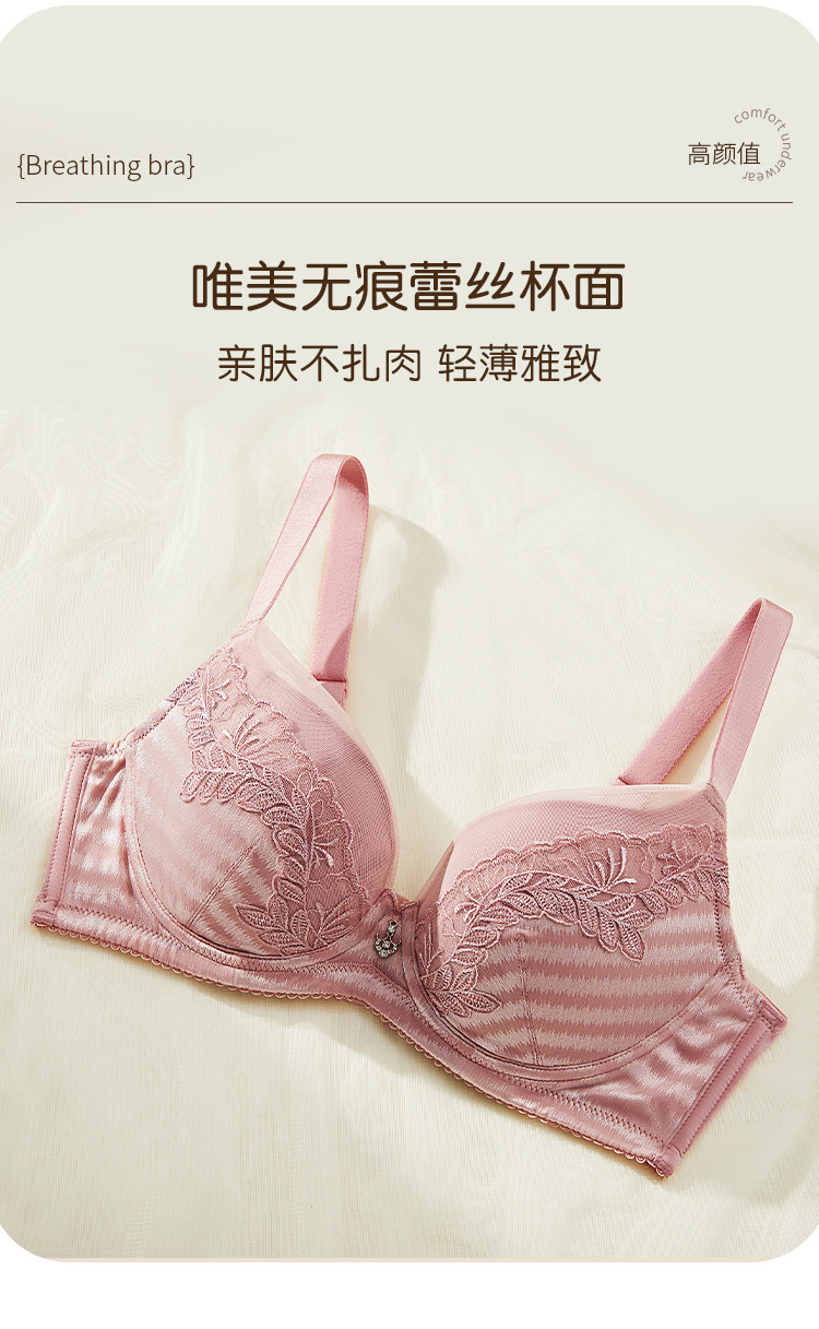 商品名称:女士大胸聚拢上托内衣女舒适透气软圈蕾丝法式防下垂文胸罩 178955