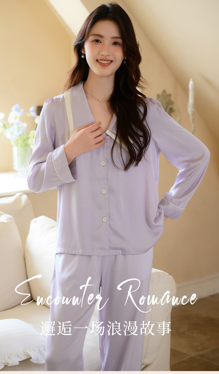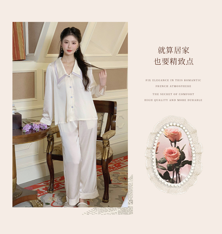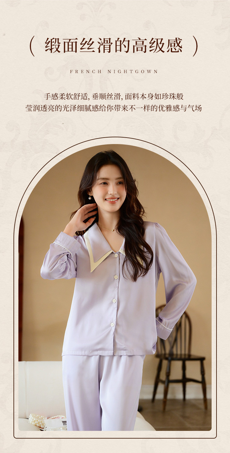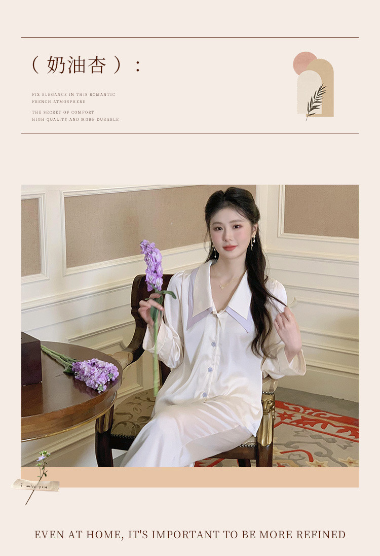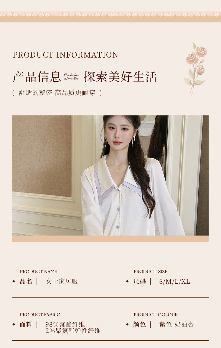 商品名称:【唯美法式】翻领开衫长袖家居服套装春秋款女士睡衣可外穿 555019