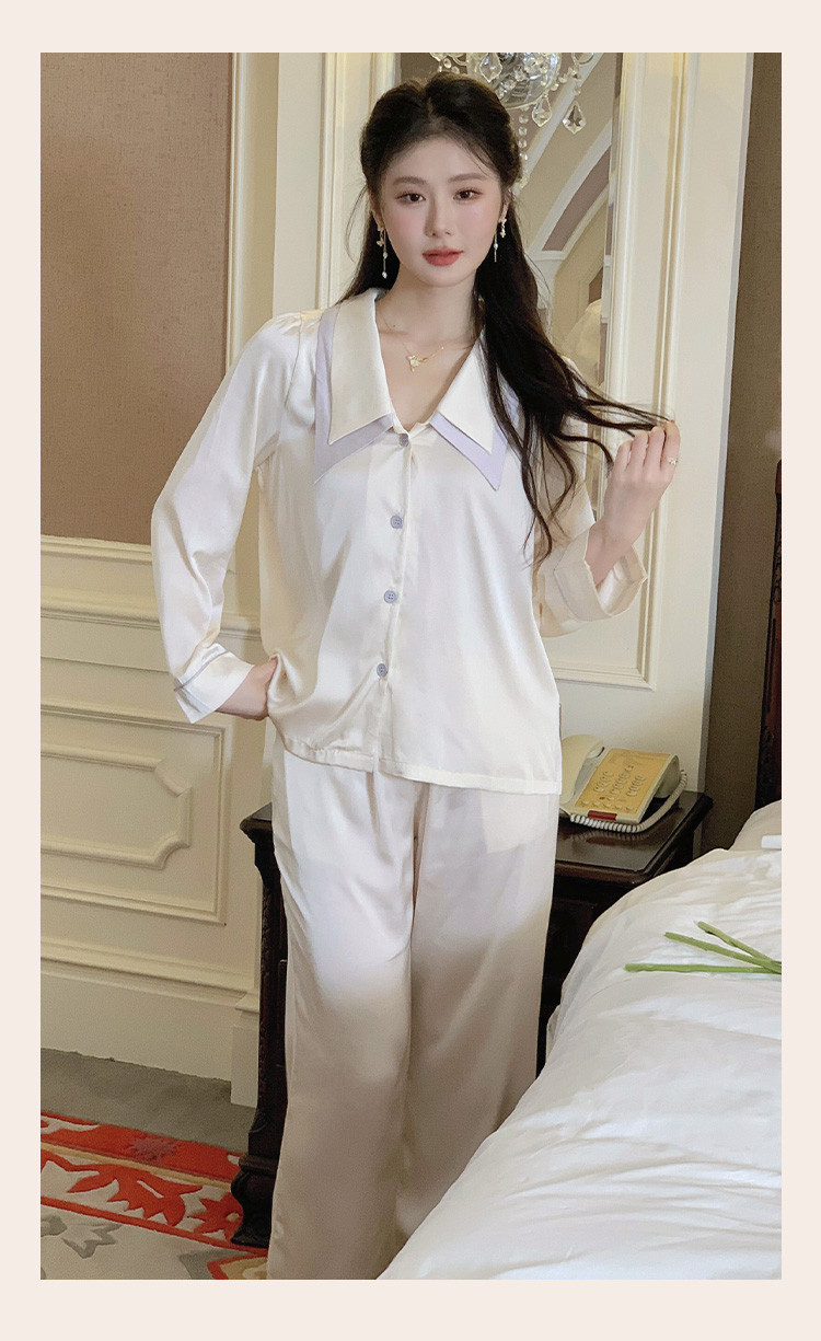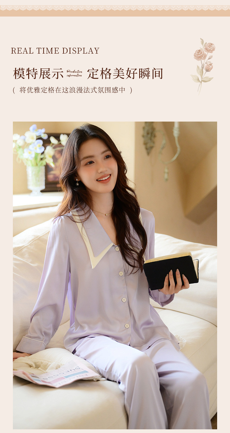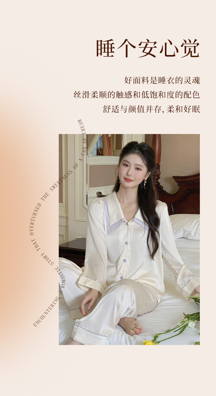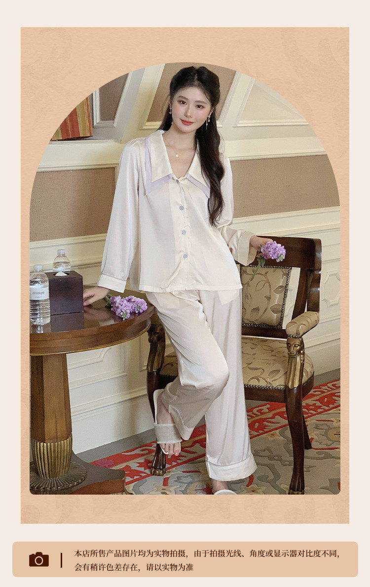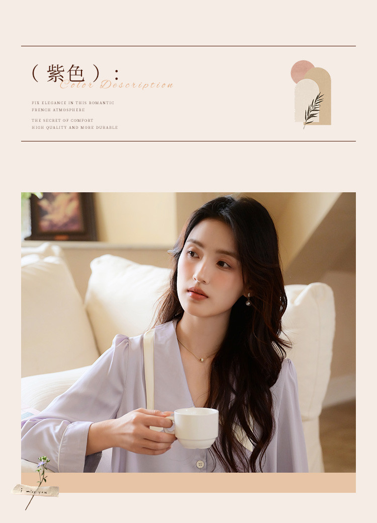 商品名称:【唯美法式】翻领开衫长袖家居服套装春秋款女士睡衣可外穿 555019