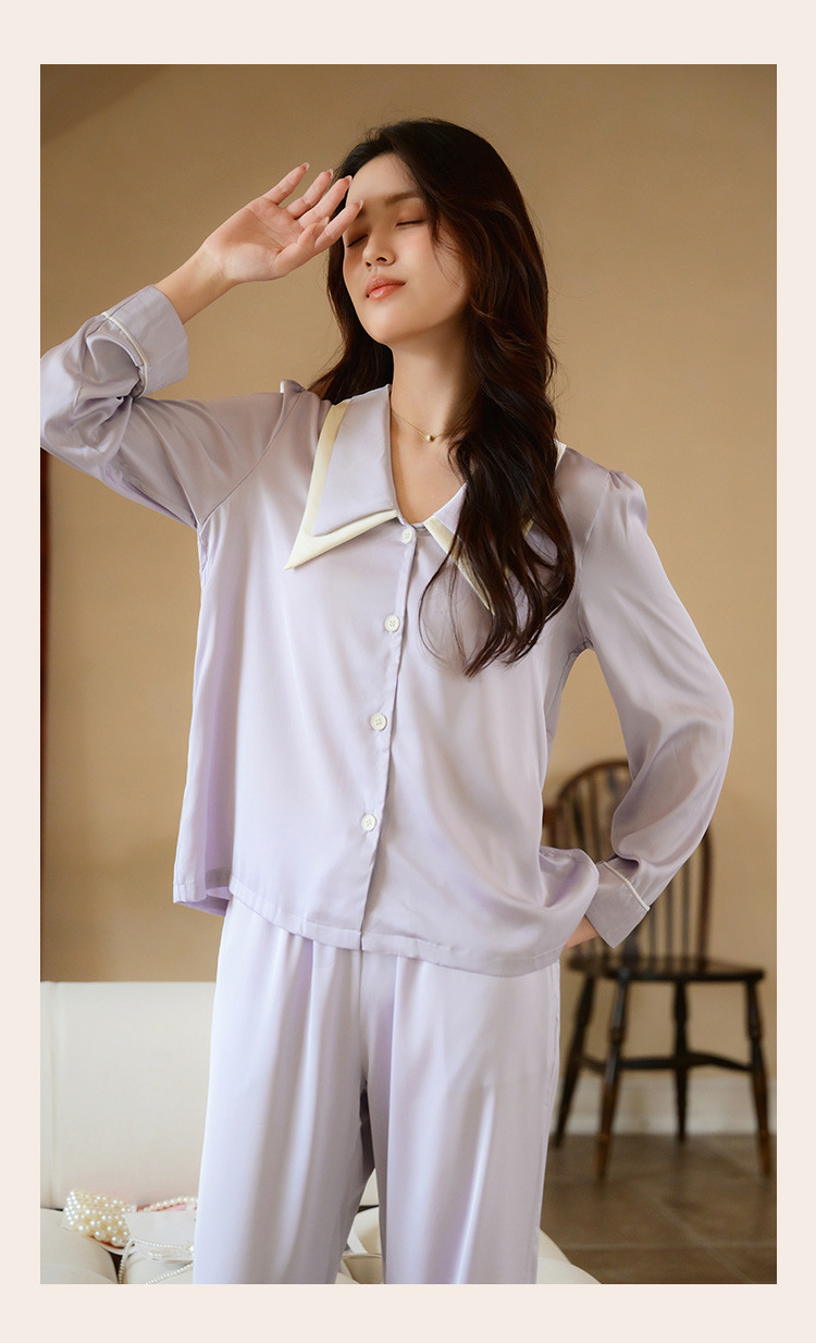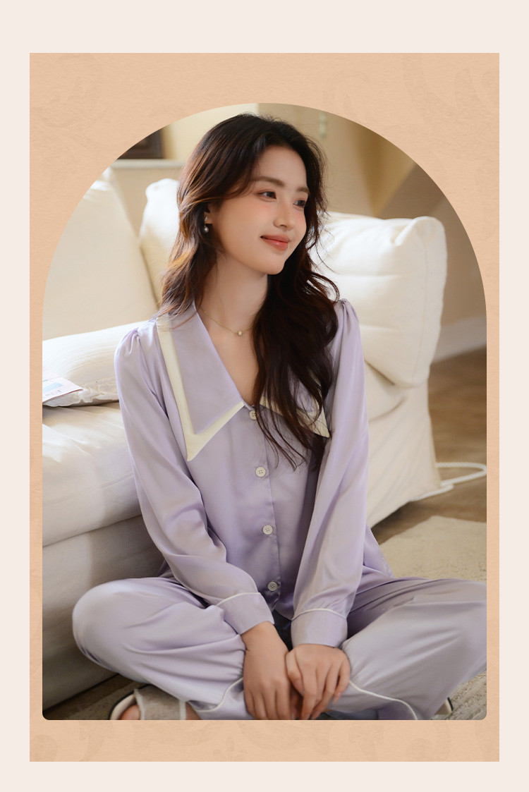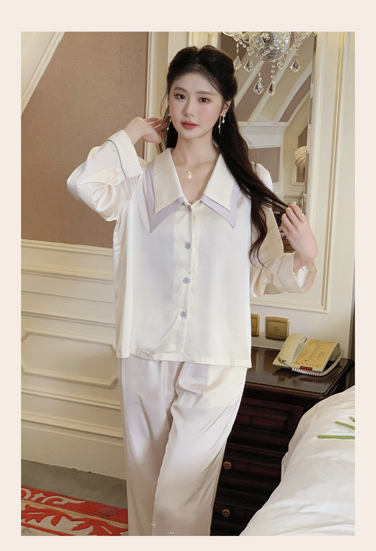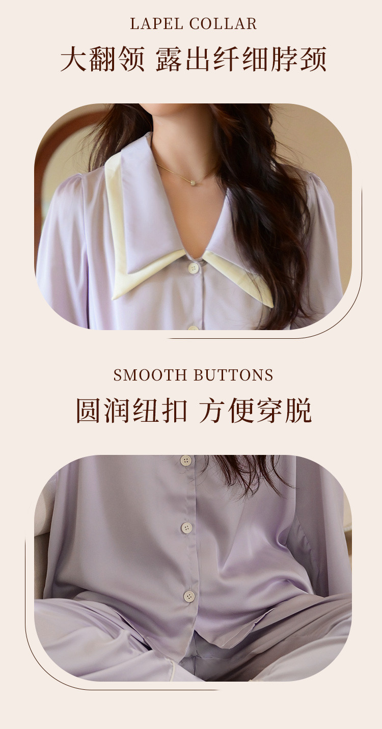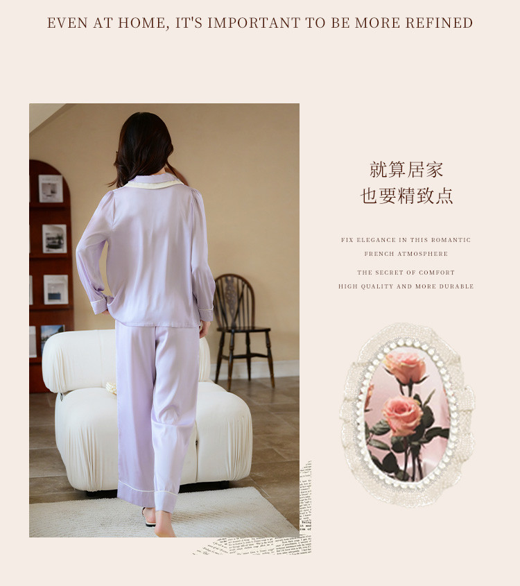 商品名称:【唯美法式】翻领开衫长袖家居服套装春秋款女士睡衣可外穿 555019