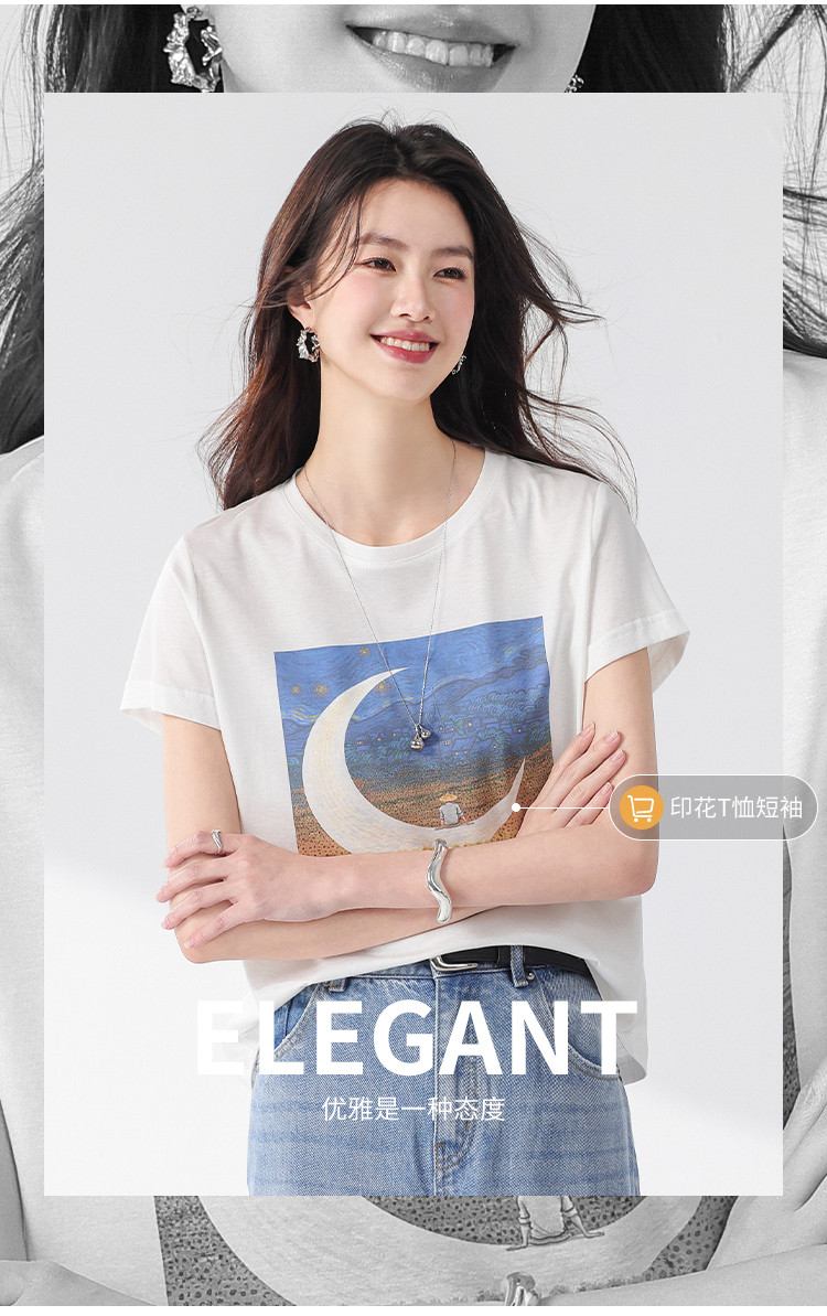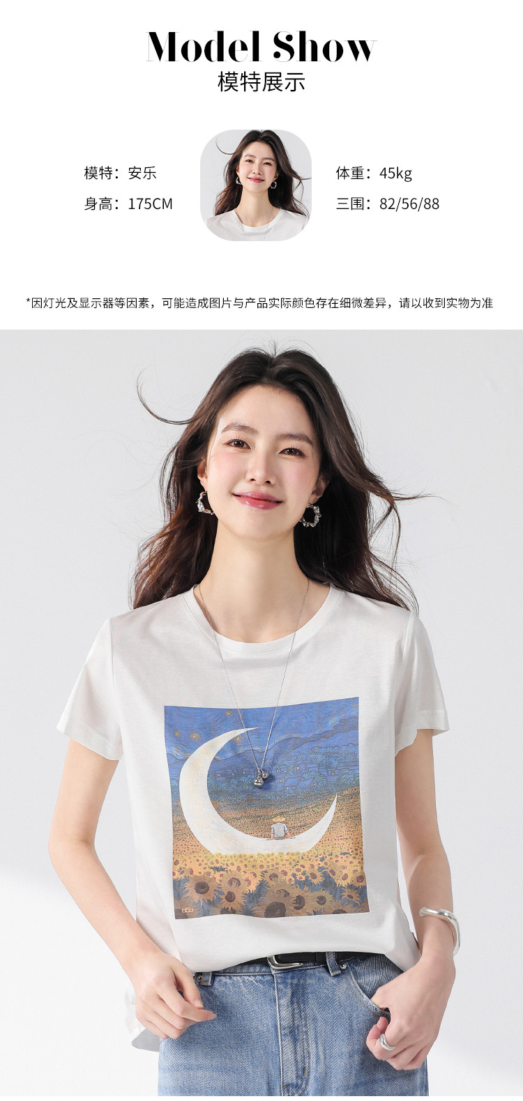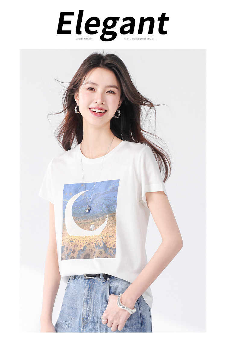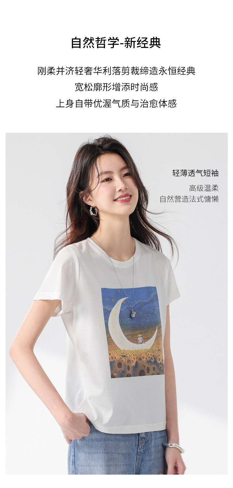 【含桑蚕丝】轻薄透气印花圆领短袖T恤女夏款休闲上衣打底衫 317075