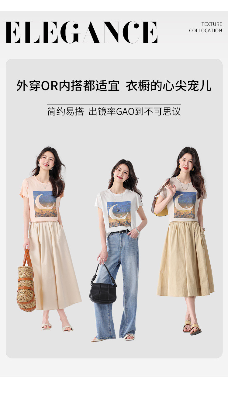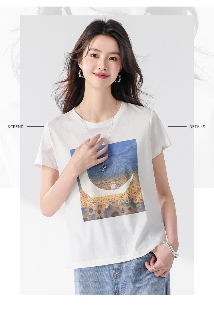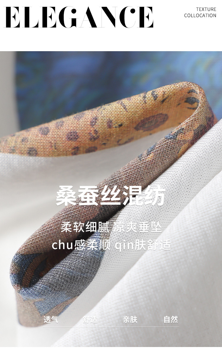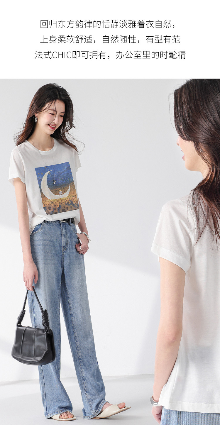 【含桑蚕丝】轻薄透气印花圆领短袖T恤女夏款休闲上衣打底衫 317075