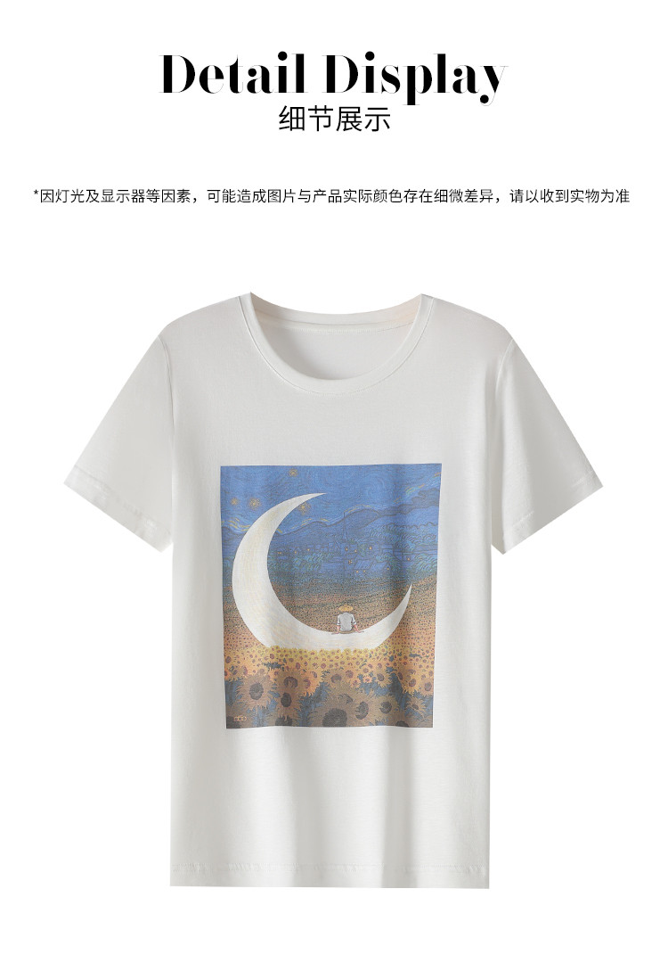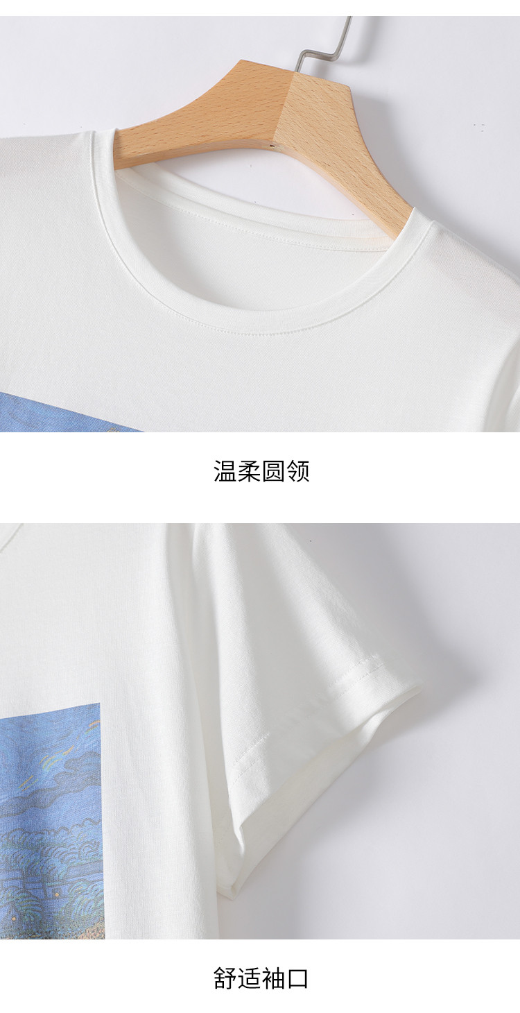 商品名称:【含桑蚕丝】轻薄透气印花圆领短袖T恤女夏款休闲上衣打底衫 317075
