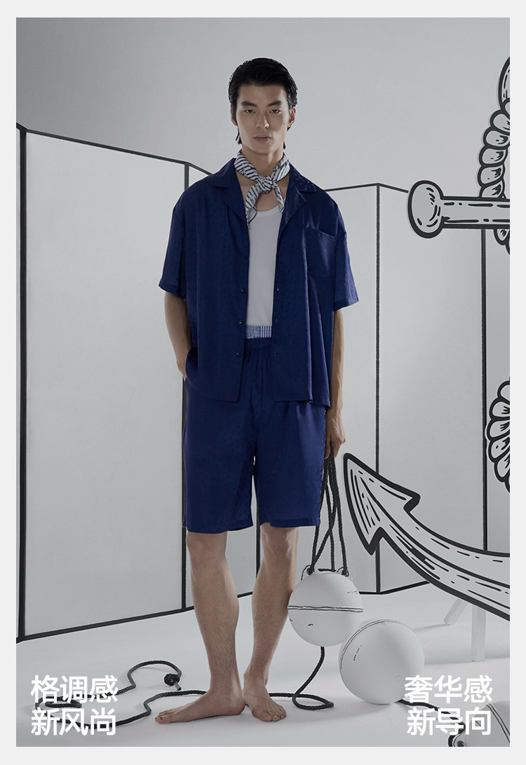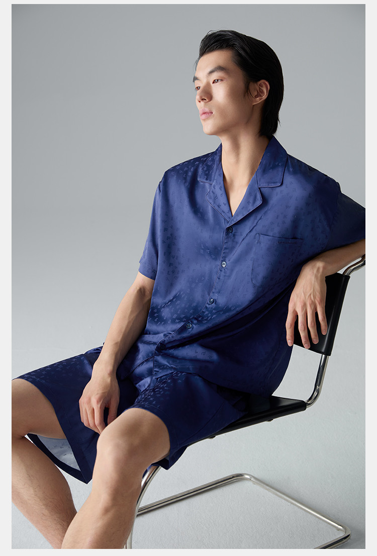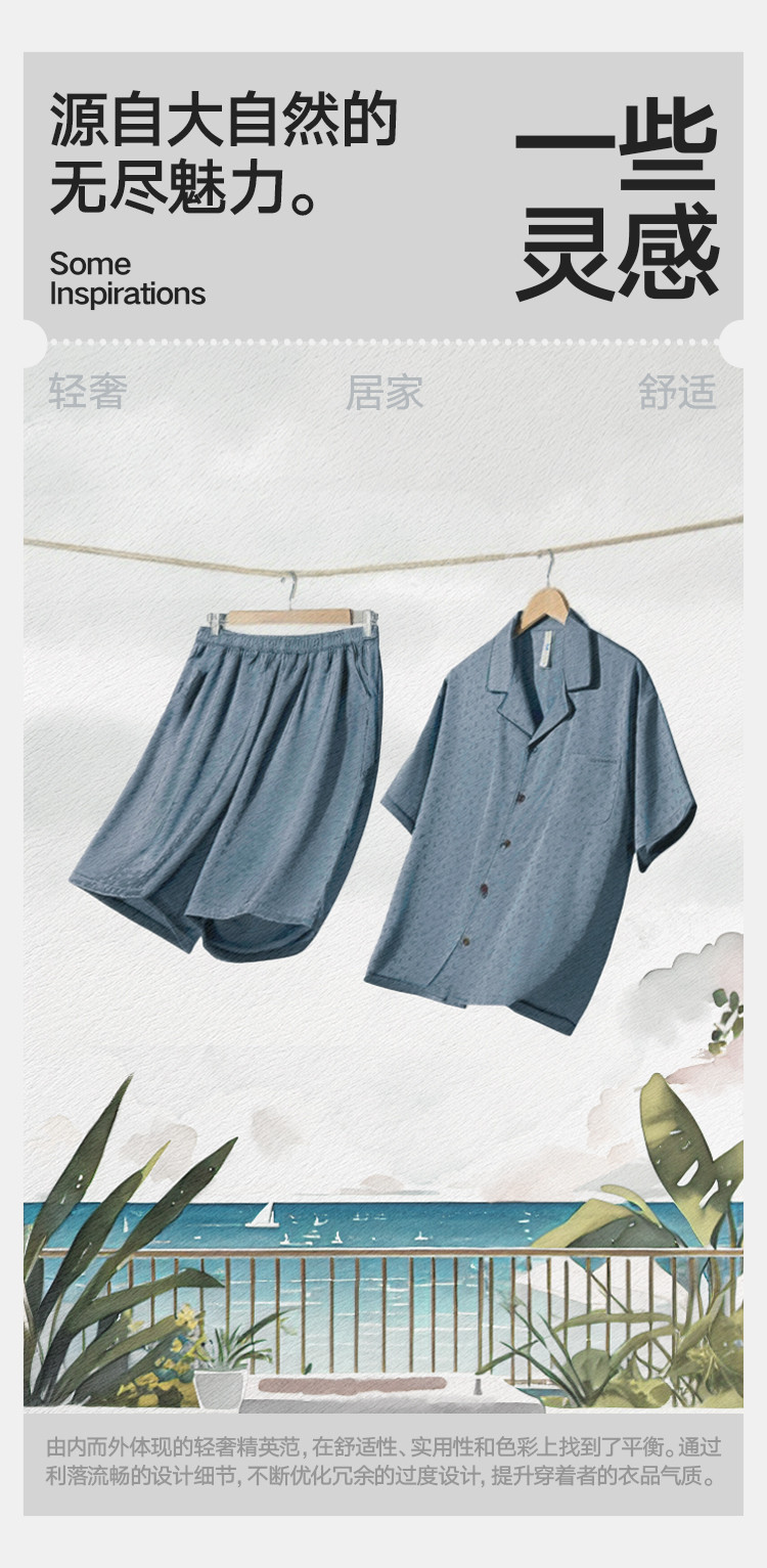 商品名称:【轻奢系列 冰丝凉感】春夏男士家居服套装休闲短袖短裤睡衣男款 421018