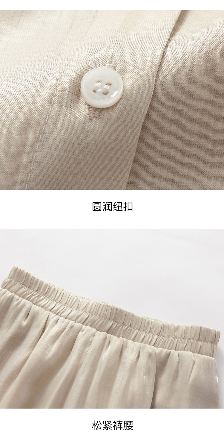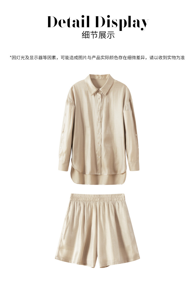 商品名称:【两件套】纯色休闲衬衫松紧腰纯色短裤夏季薄款两件套套装 388307