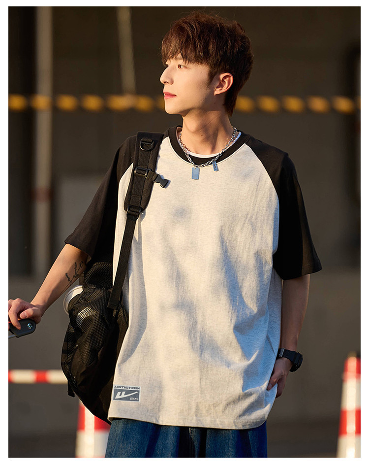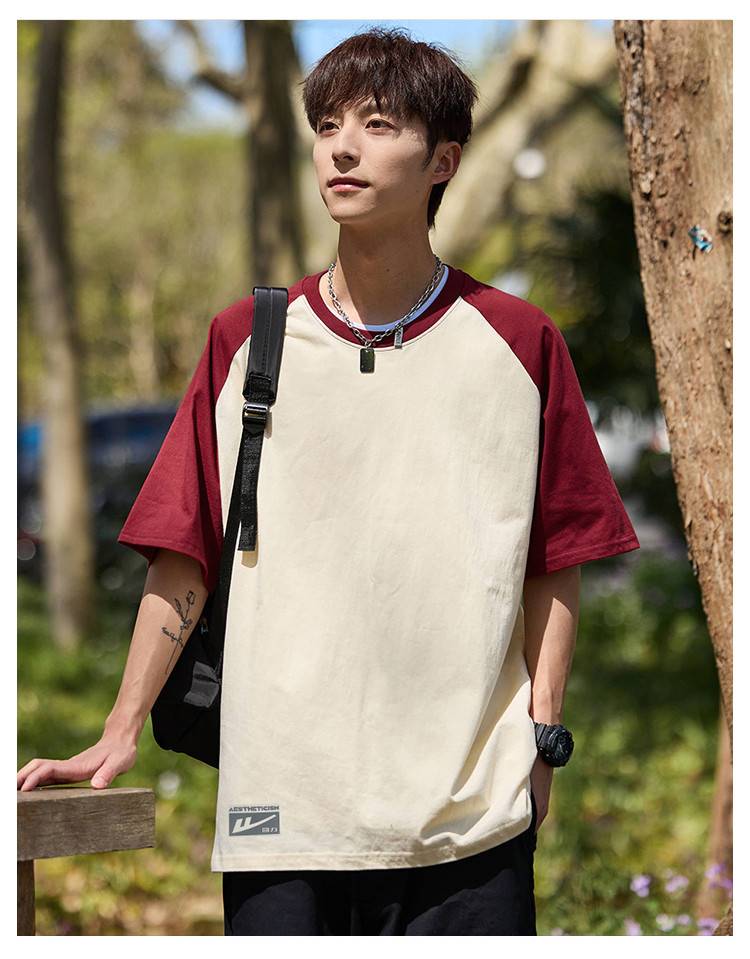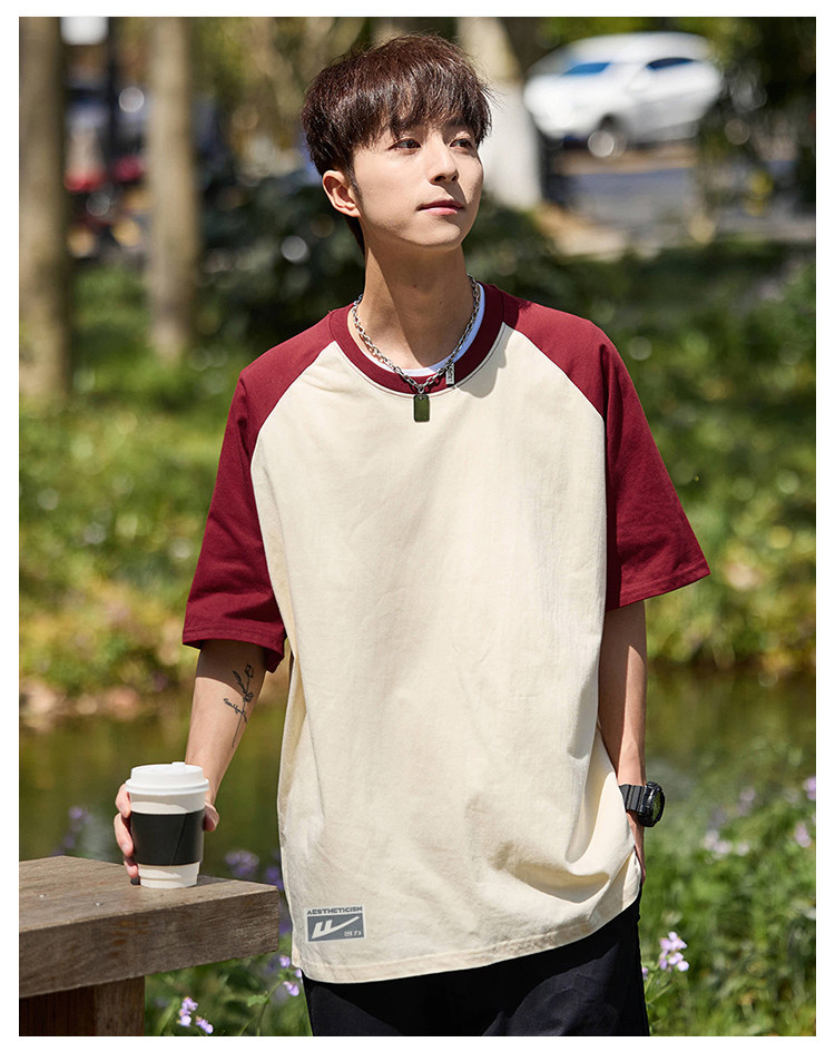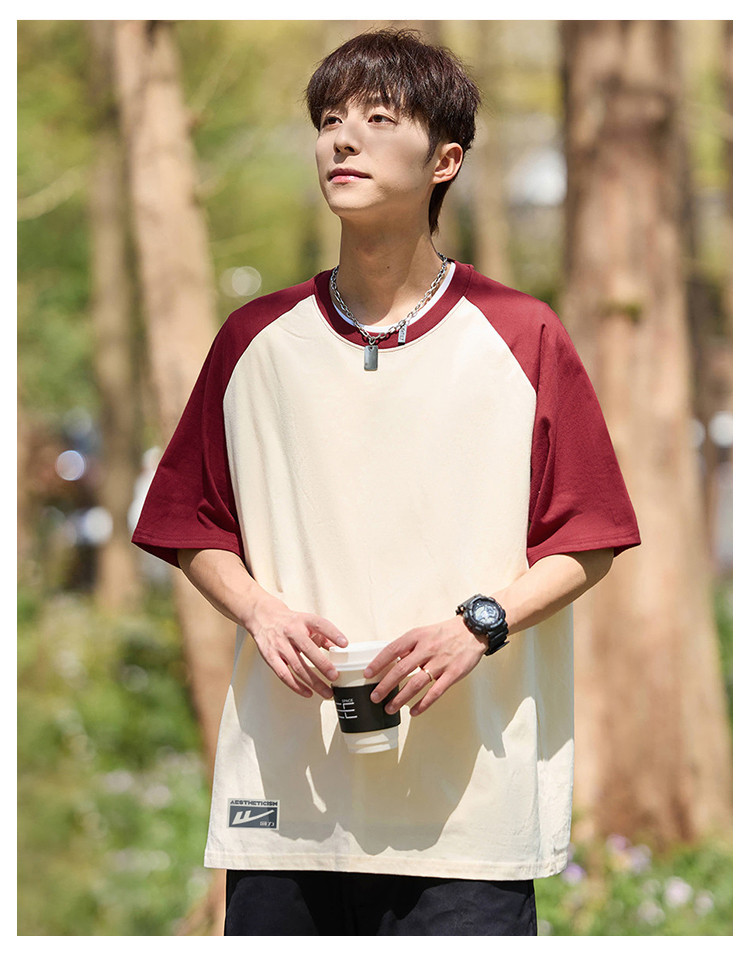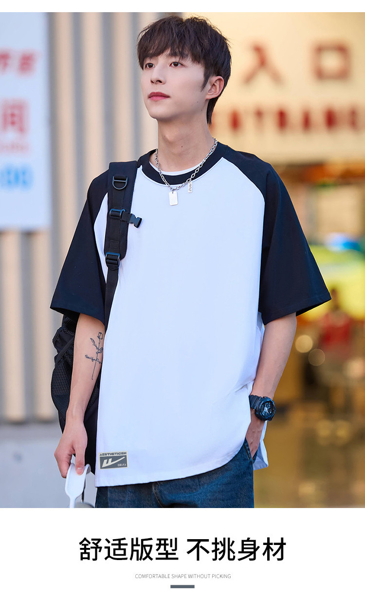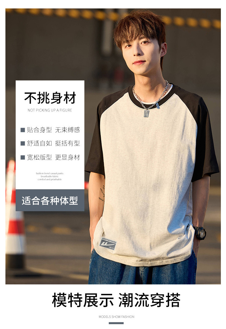 商品名称:运动T恤潮牌夏季插肩袖T恤宽松复古撞色字母重磅T恤男 310931