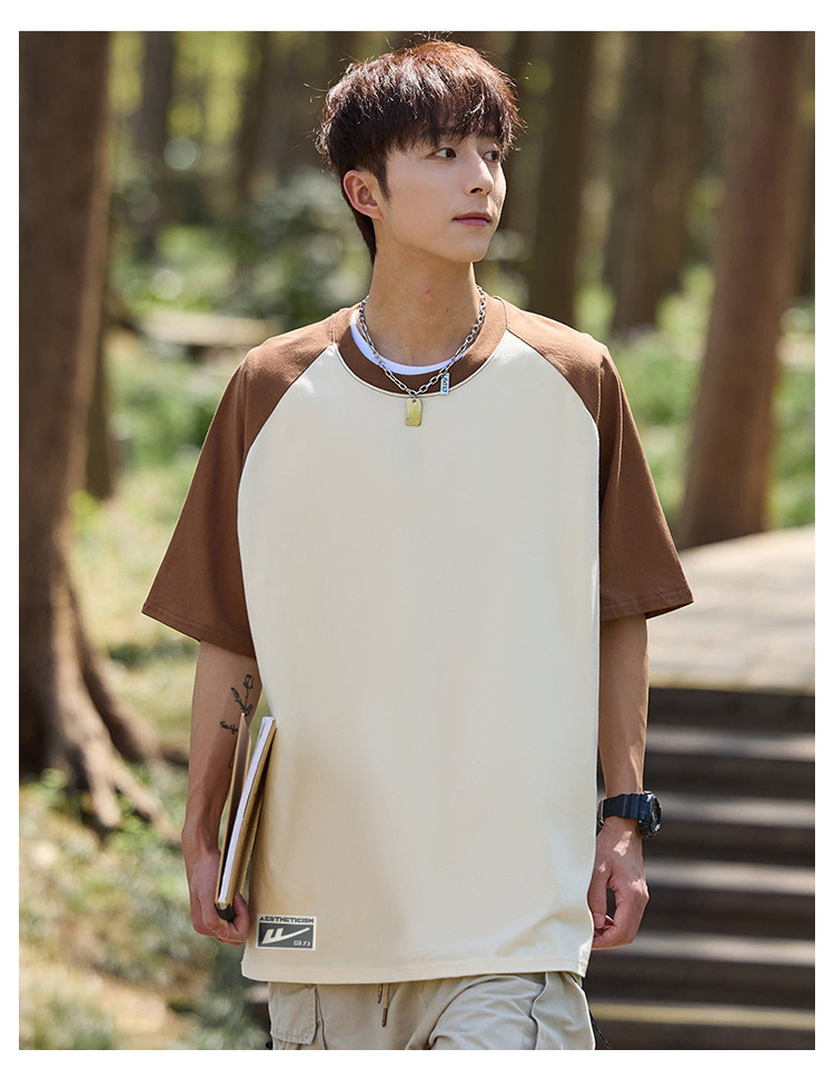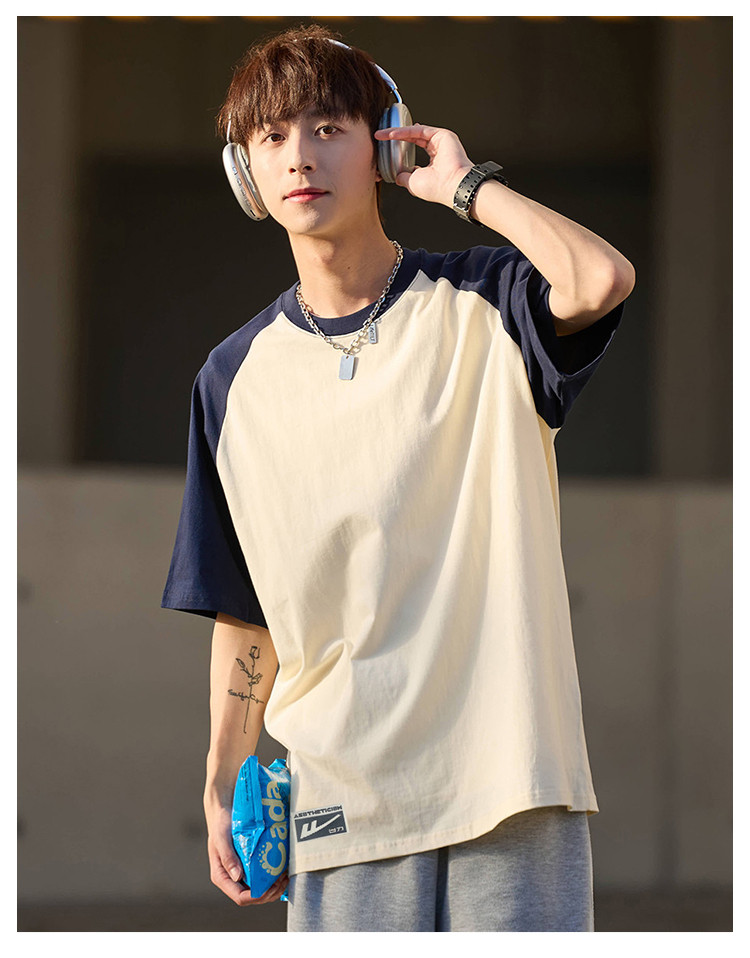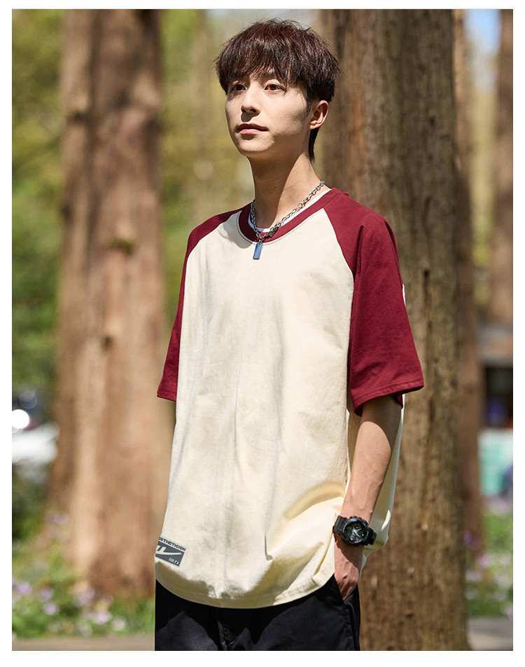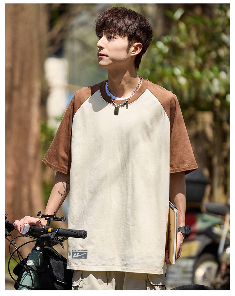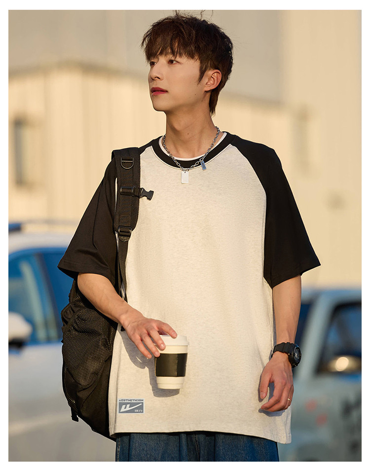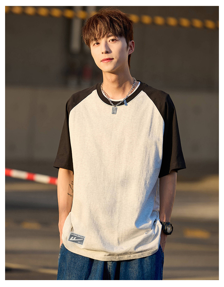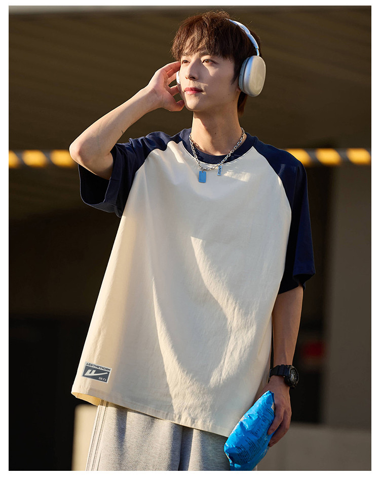 商品名称:运动T恤潮牌夏季插肩袖T恤宽松复古撞色字母重磅T恤男 310931