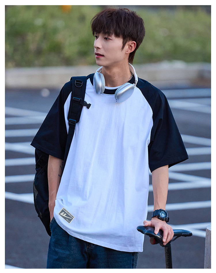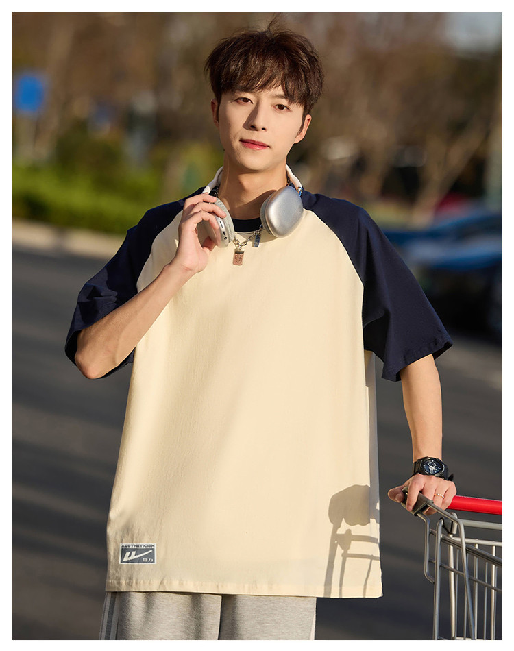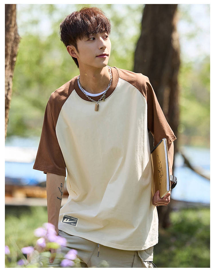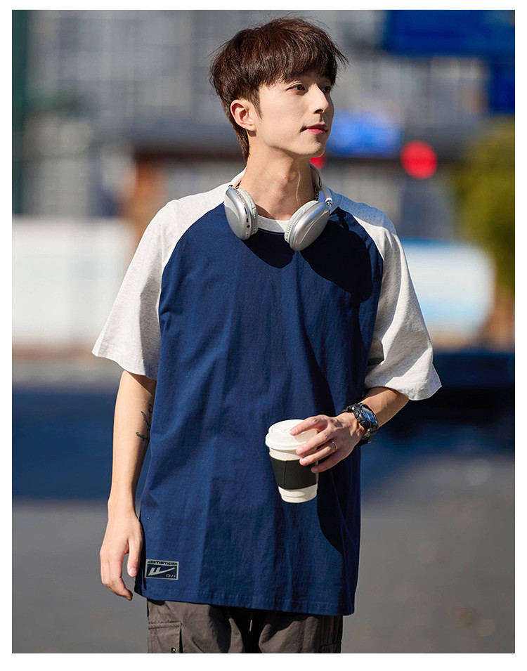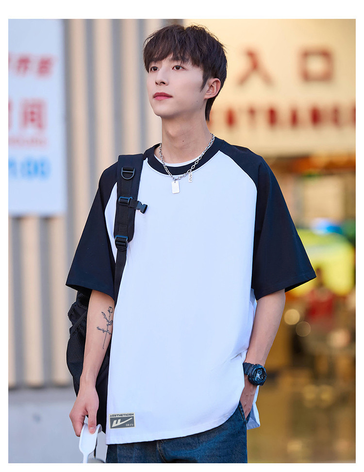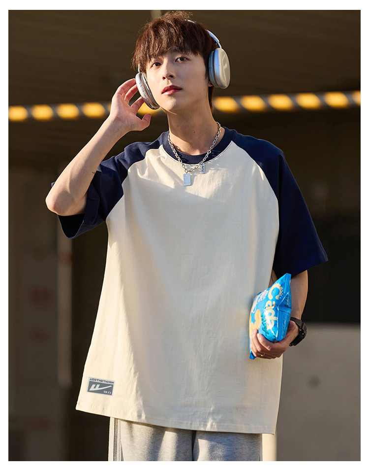 商品名称:运动T恤潮牌夏季插肩袖T恤宽松复古撞色字母重磅T恤男 310931