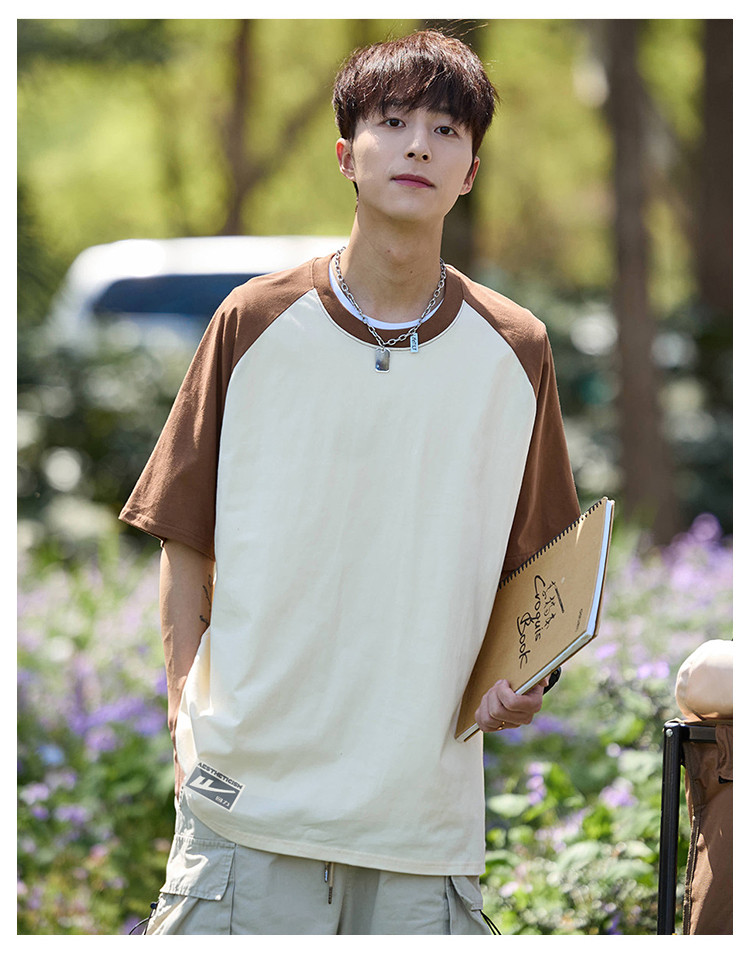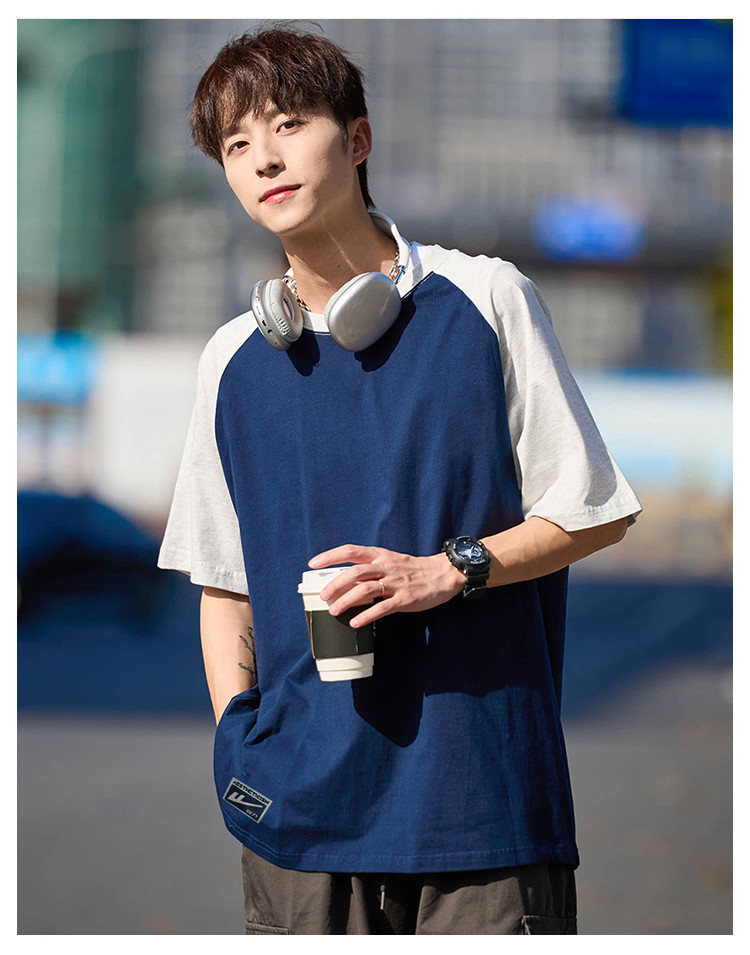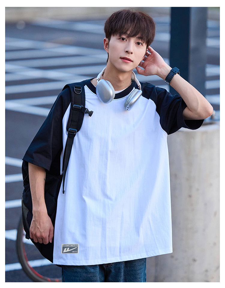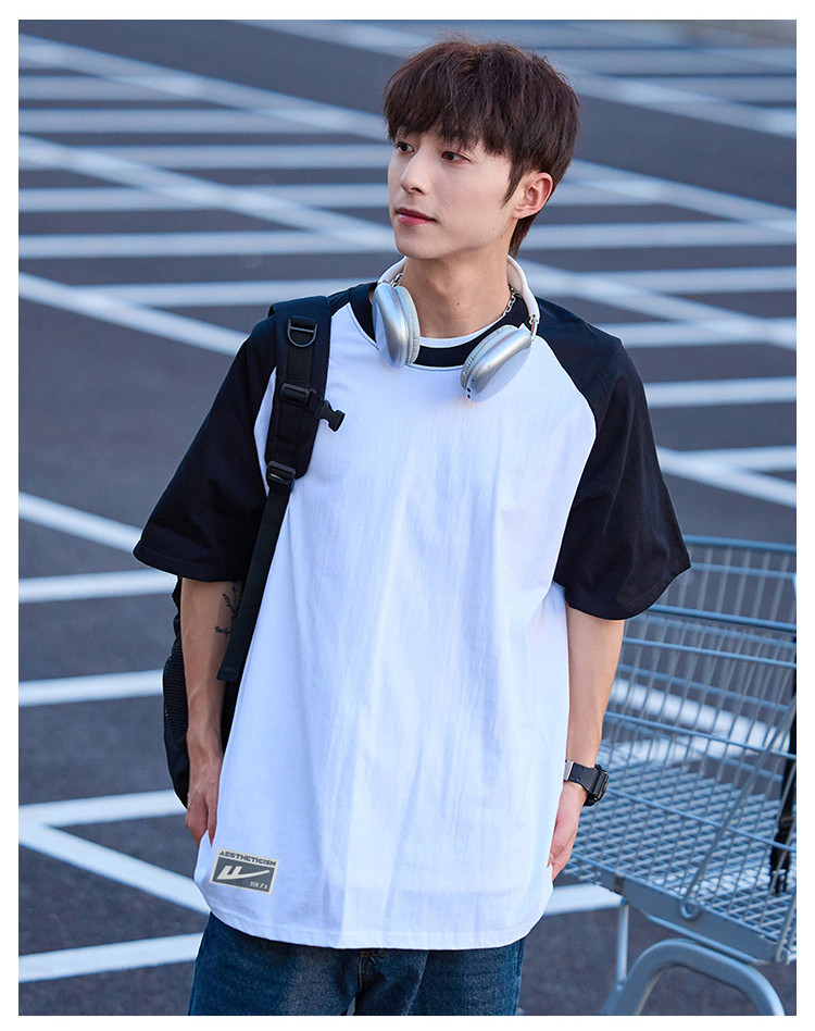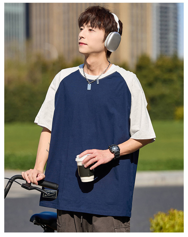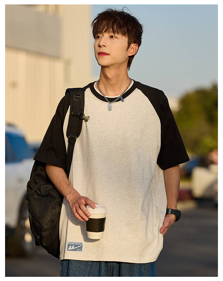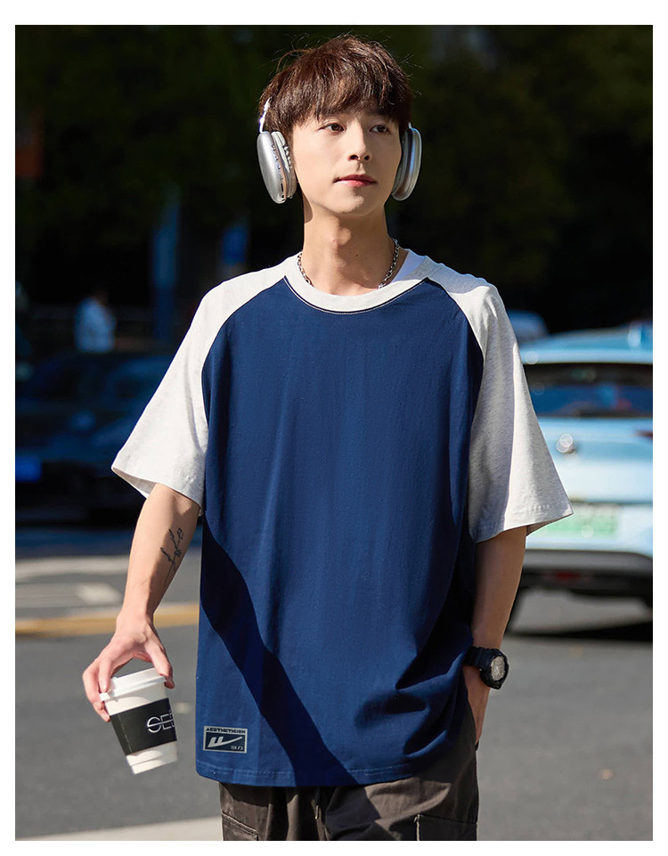 商品名称:运动T恤潮牌夏季插肩袖T恤宽松复古撞色字母重磅T恤男 310931
