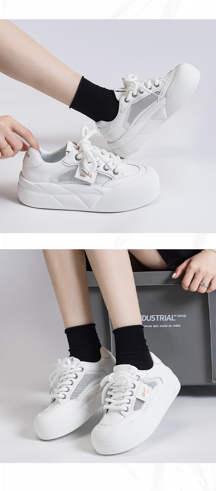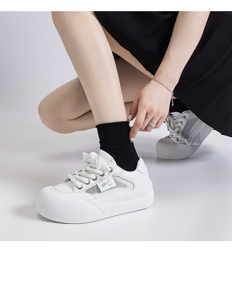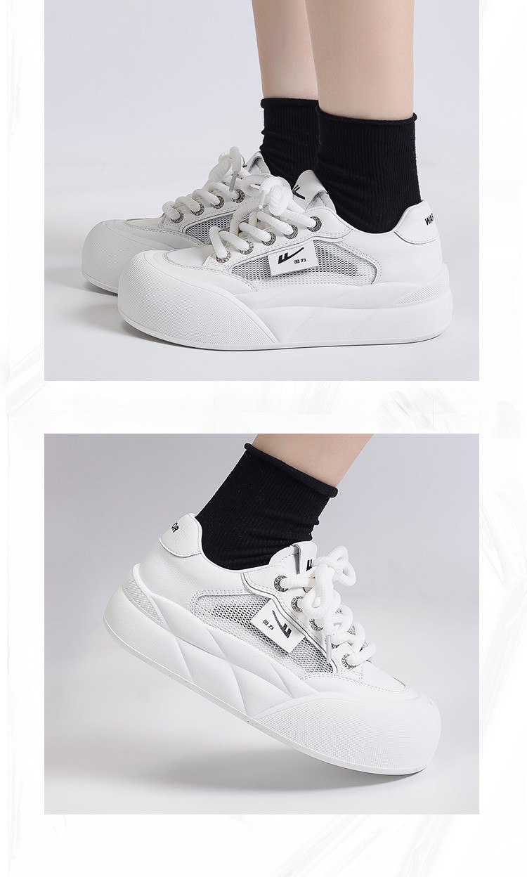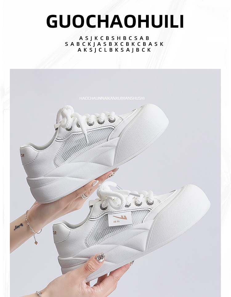商品名称:【夏季热卖】网面透气轻便小白鞋女25新款显脚小圆头厚底板鞋 823619