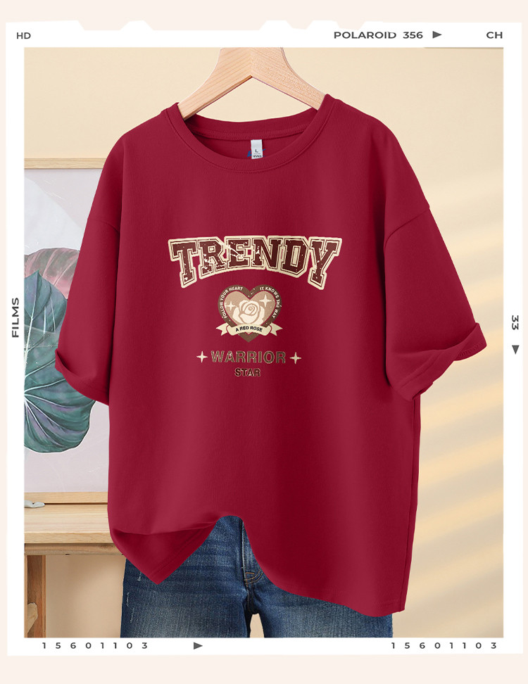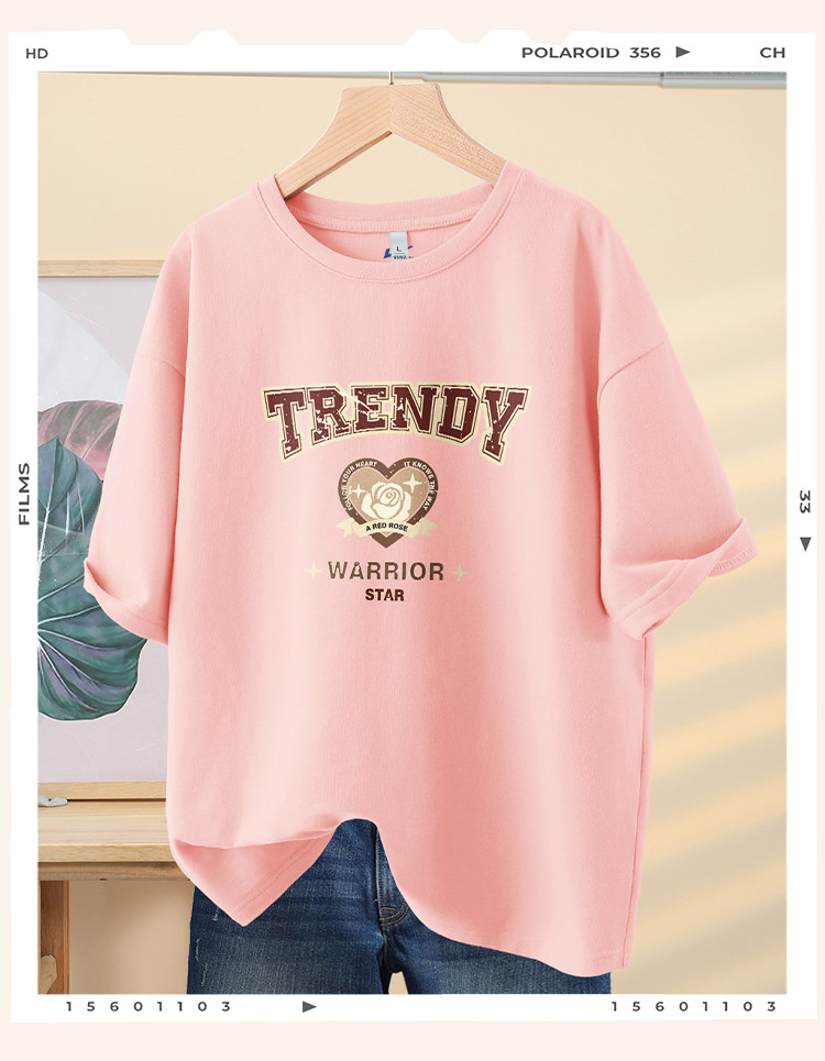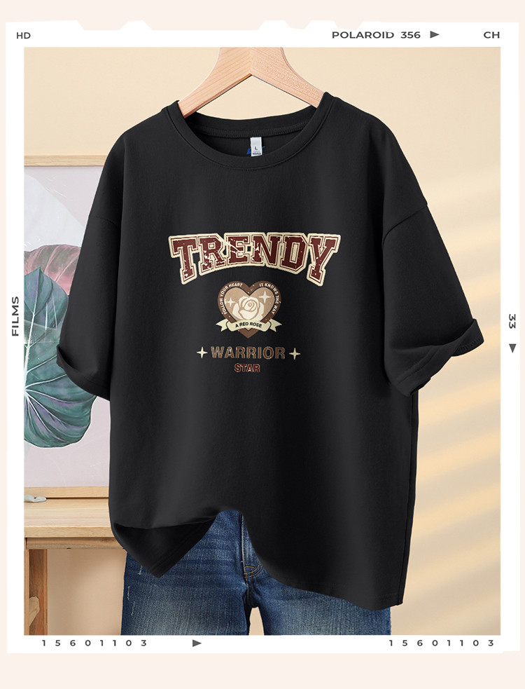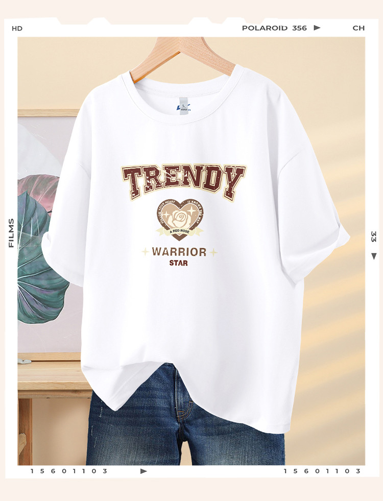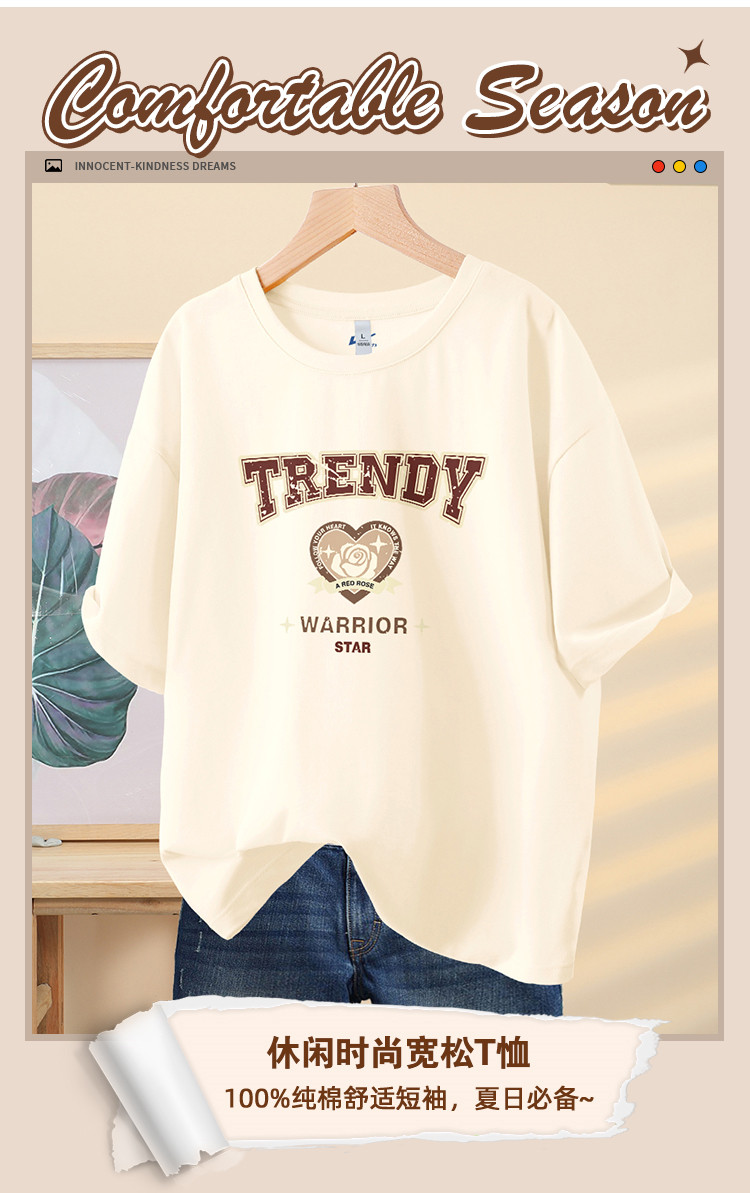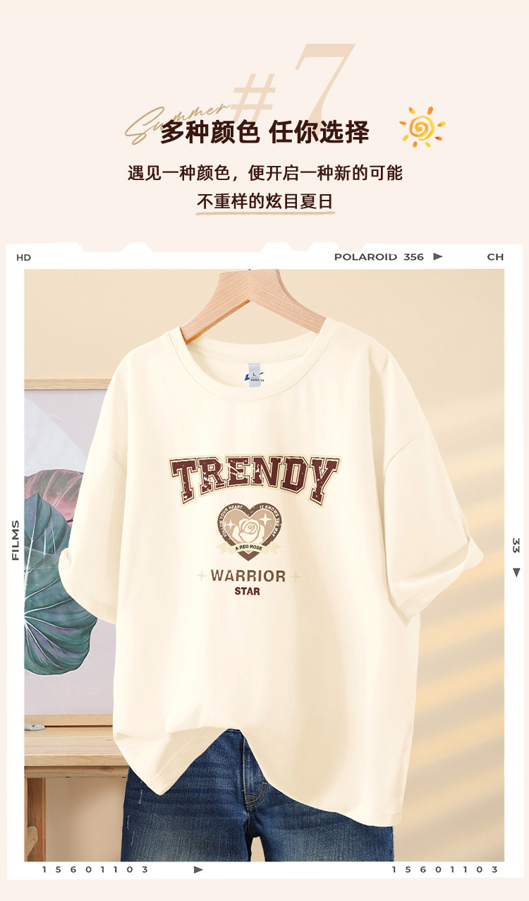 商品名称:【女装重磅棉】夏季女式宽松运动T恤纯棉透气打底大码印花上衣 053075