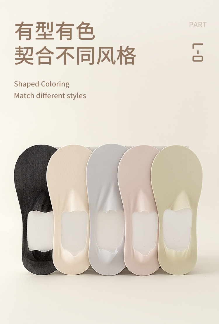 商品名称:【透气冰丝隐形袜】5双装春夏款轻薄舒适船袜浅口防滑女士袜子 446923