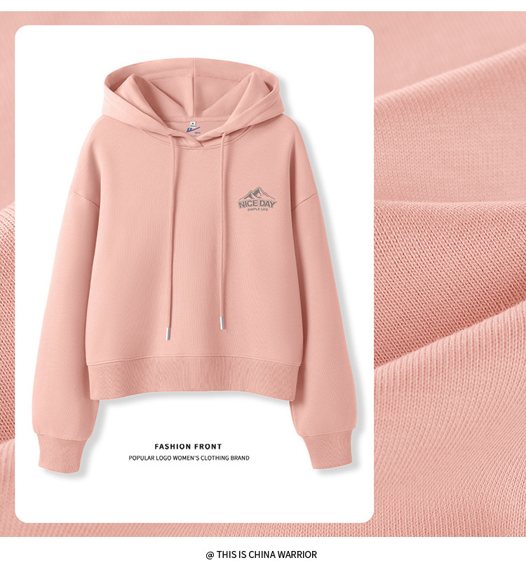 商品名称:【女装】春秋女式连帽外套运动休闲百搭宽松高腰显瘦短款卫衣女 640339