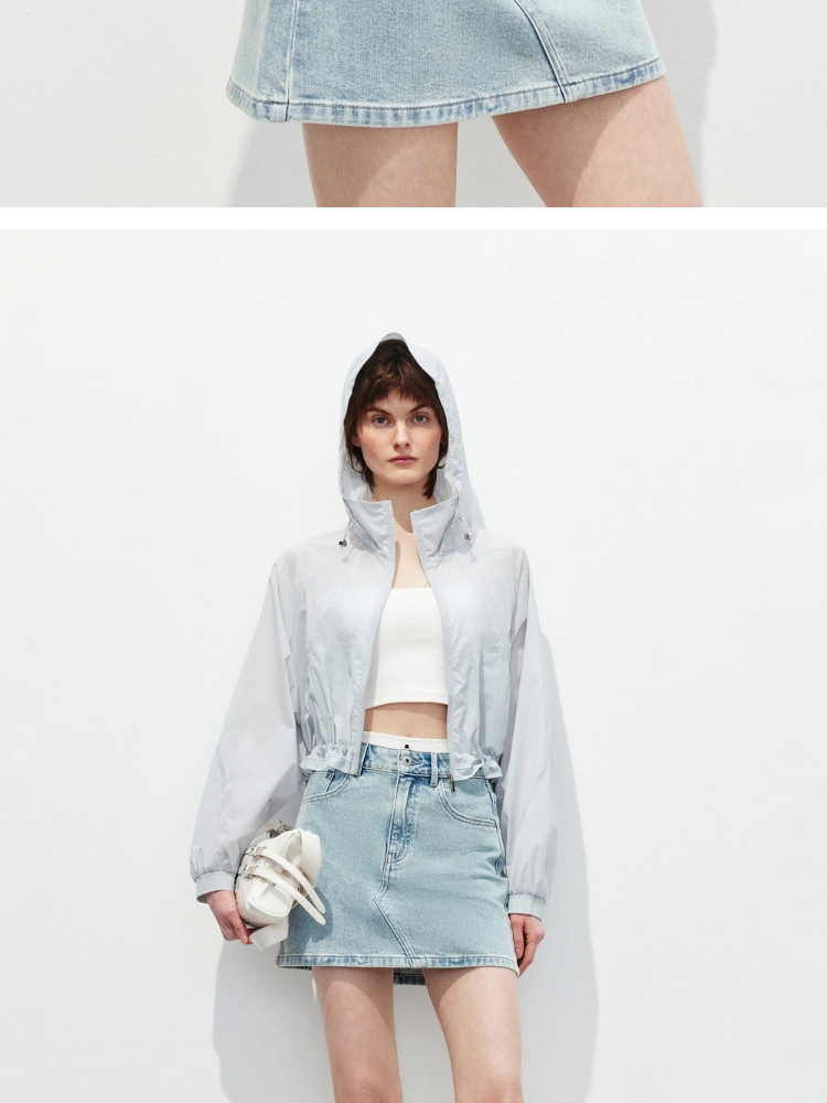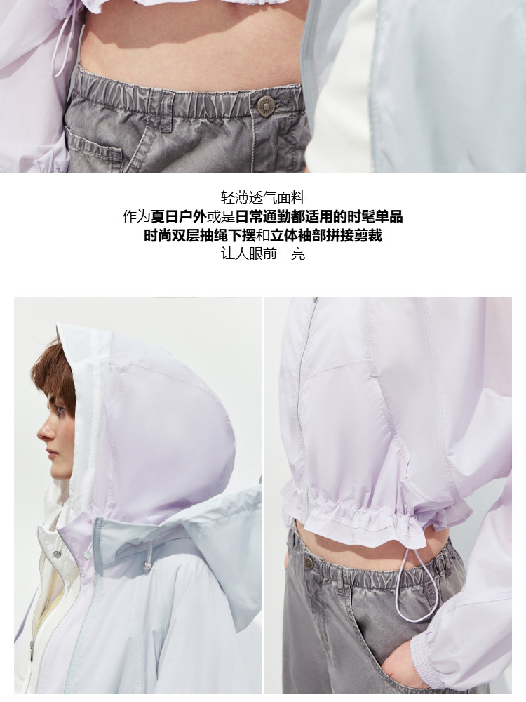 【轻薄透气】2025春季时尚百搭轻薄插肩袖长袖连帽外套女 625434