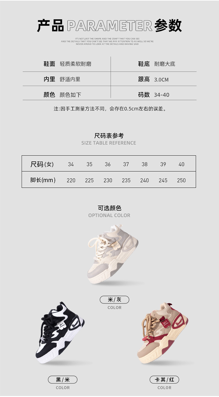 商品名称:女鞋高帮鞋子女2025夏季爆款运动鞋学生百搭厚底小众休闲板鞋 216328