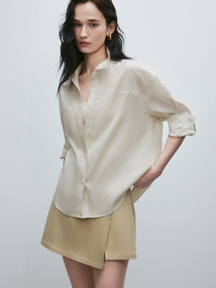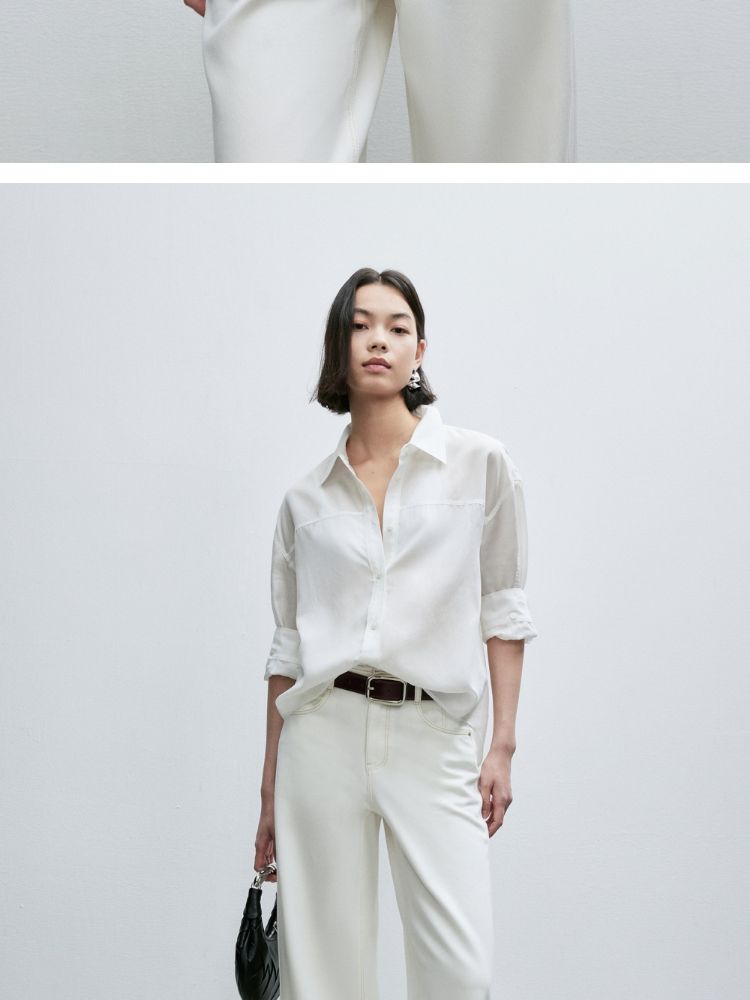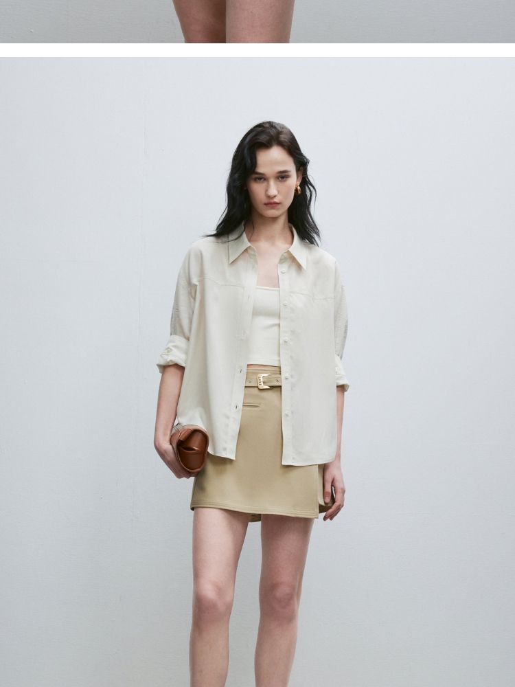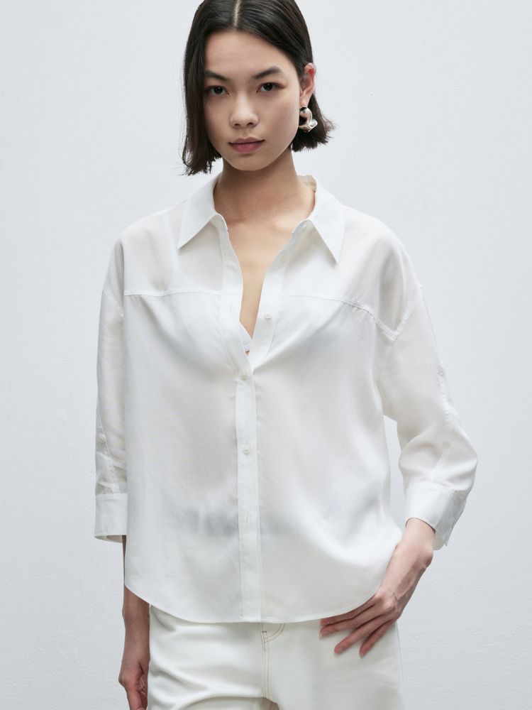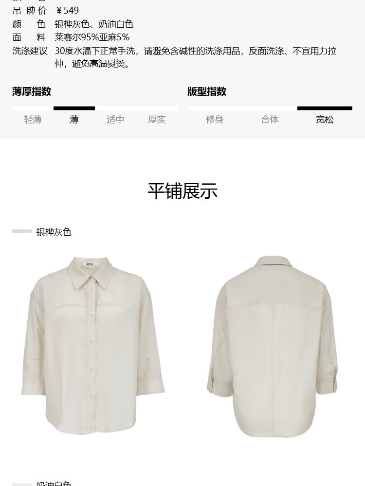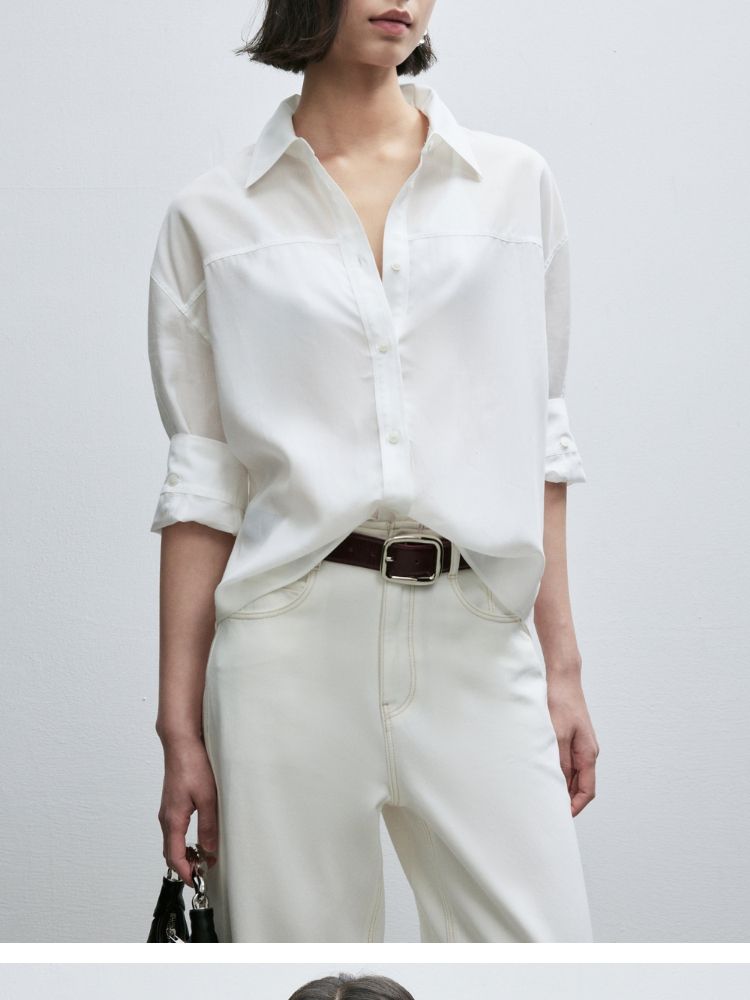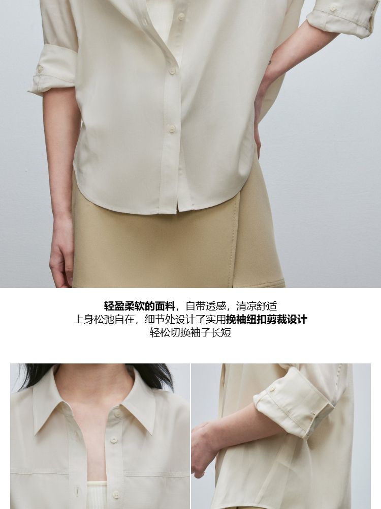 商品名称:【挽袖扣子|精致干练】25夏季含莱赛尔纯色亲肤宽松落肩衬衫女 006554