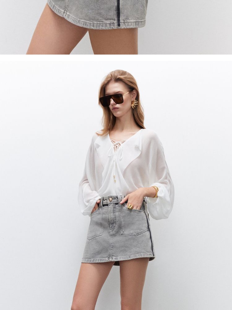 【裙裤】2025夏季时髦显瘦高腰A字短裤牛仔裤女 199322