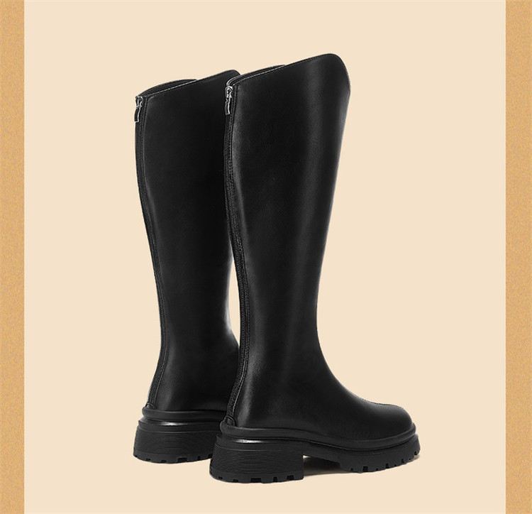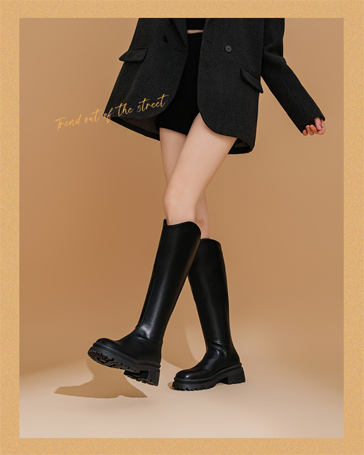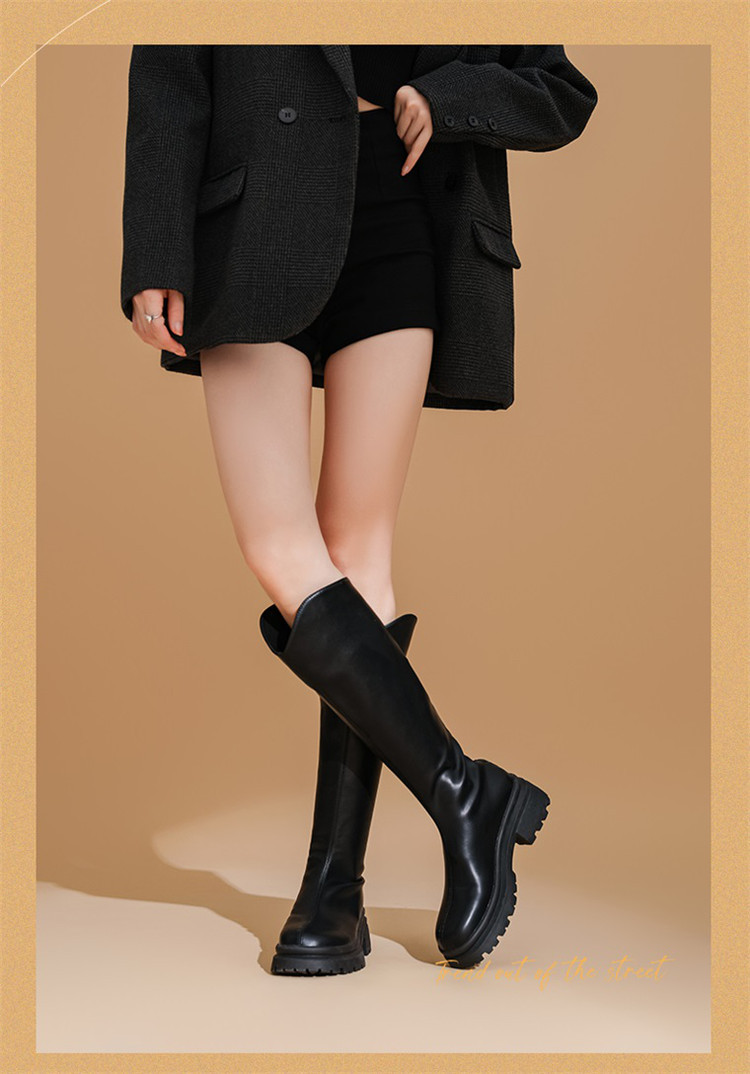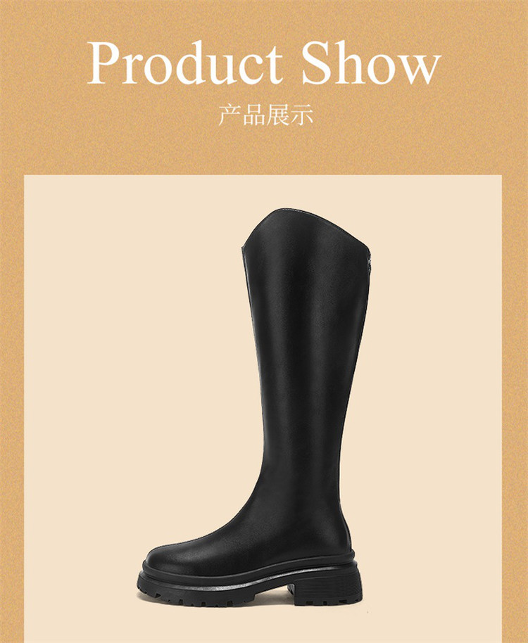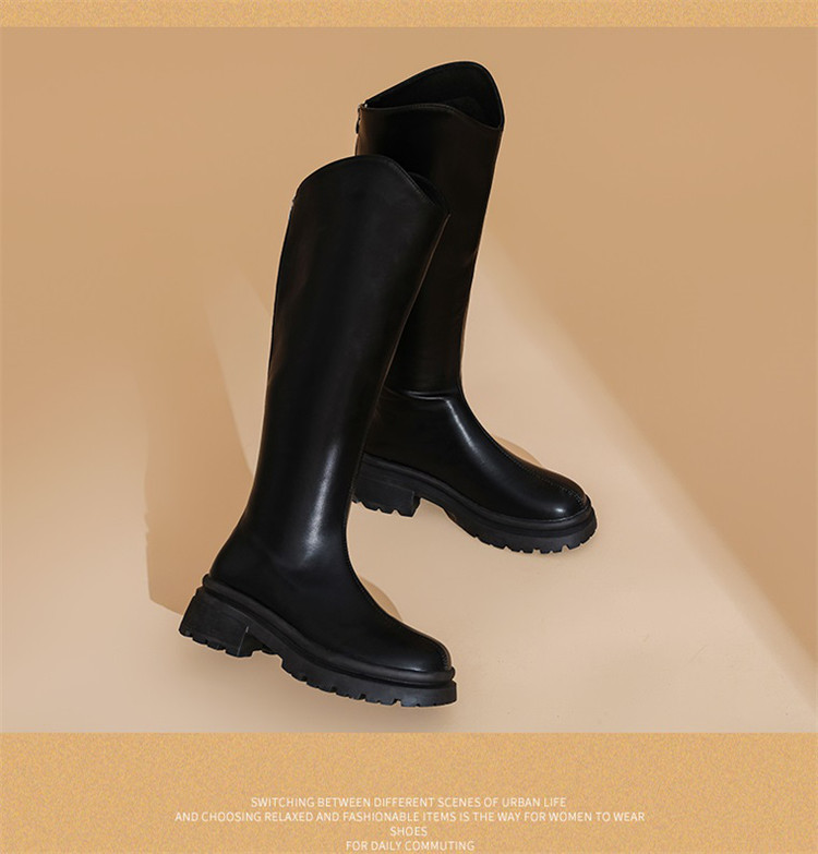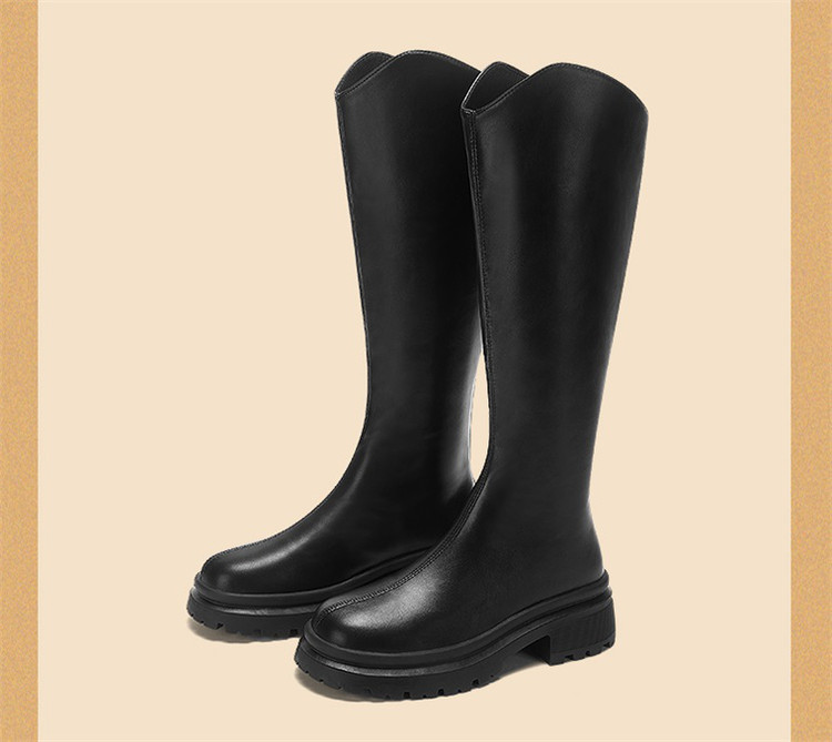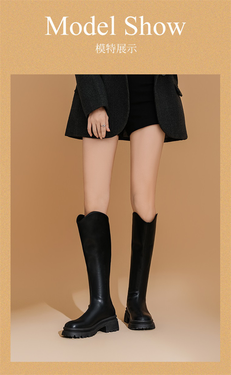 商品名称:春季长靴女款厚底增高皮面靴子女英伦韩版爆款小个子中长筒骑士靴 909381