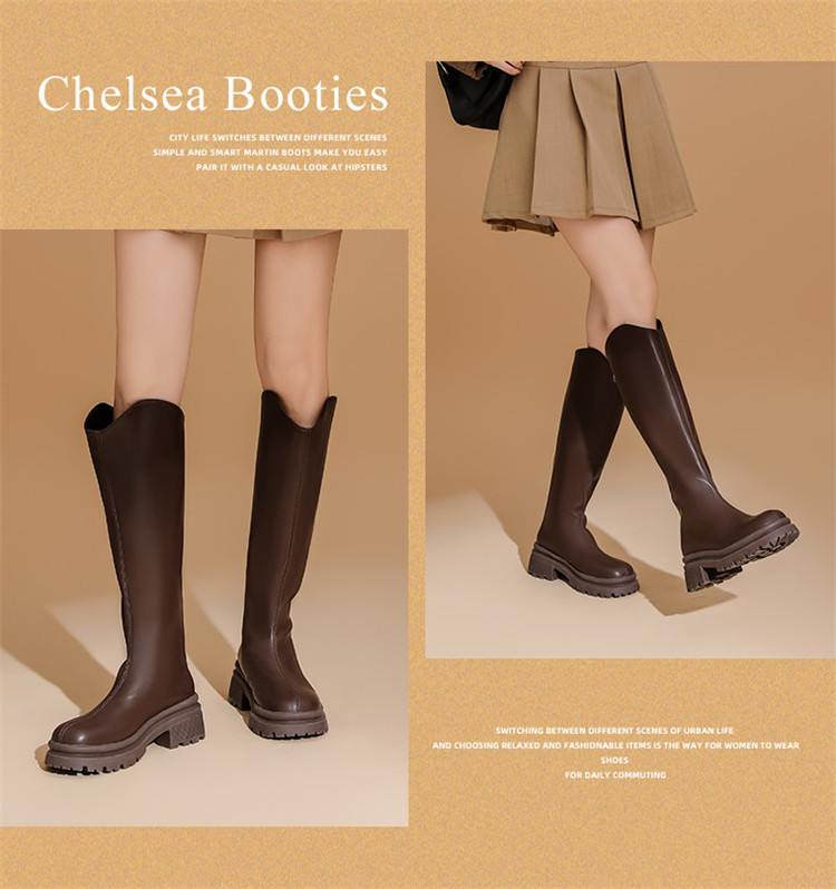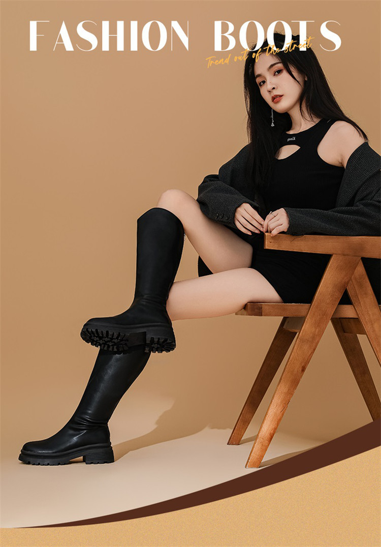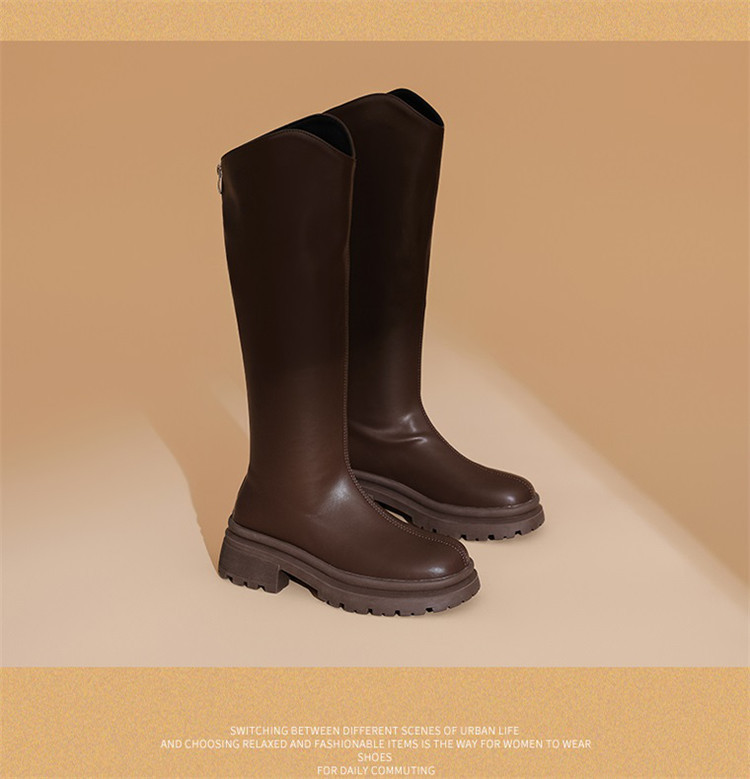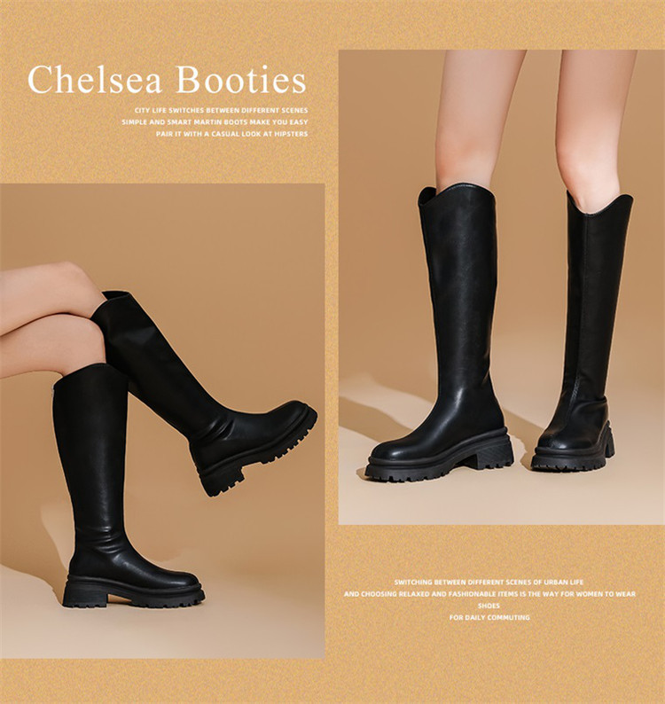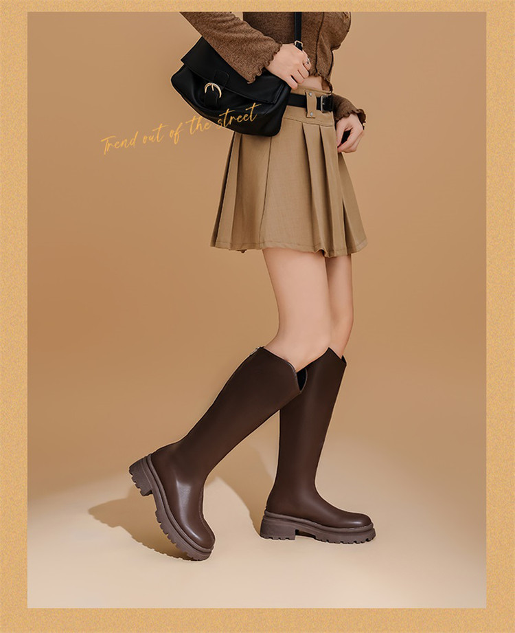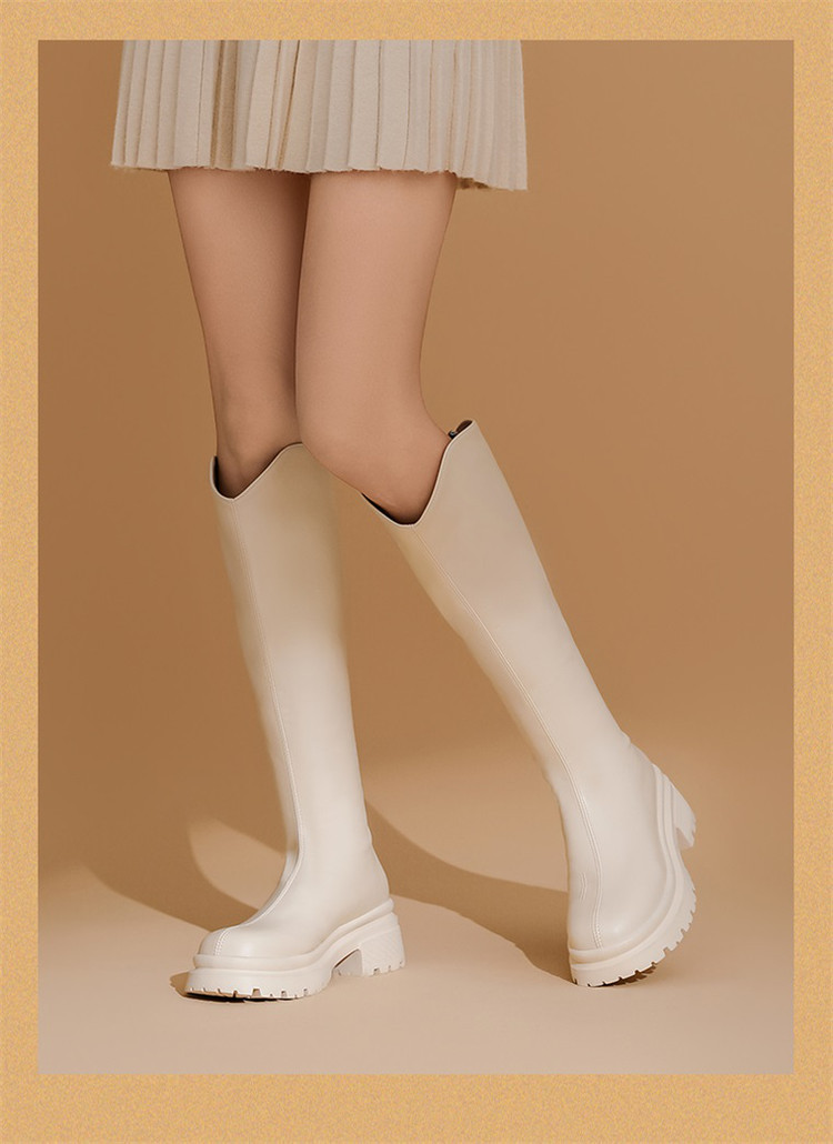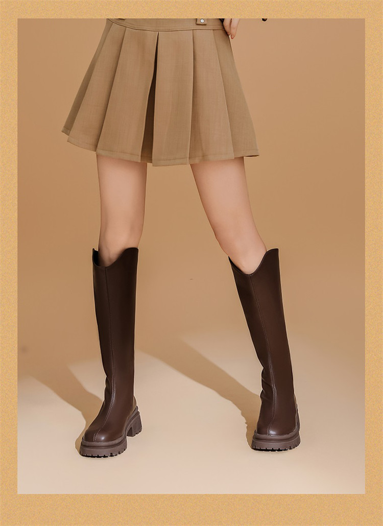 商品名称:春季长靴女款厚底增高皮面靴子女英伦韩版爆款小个子中长筒骑士靴 909381