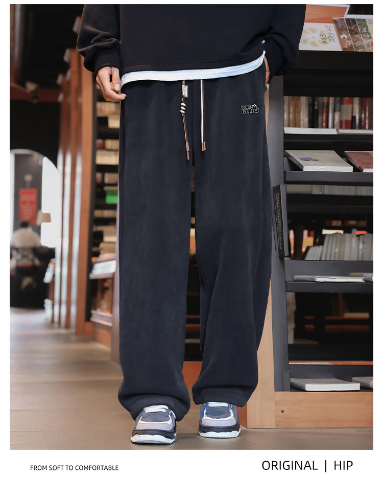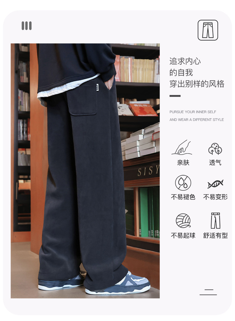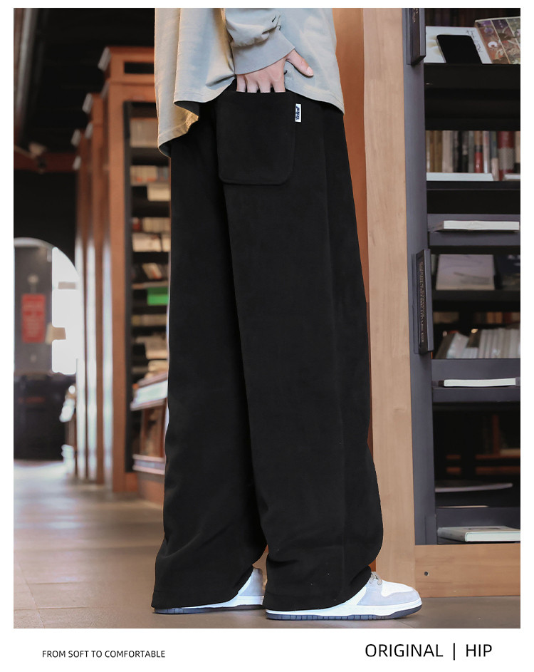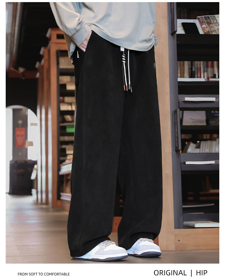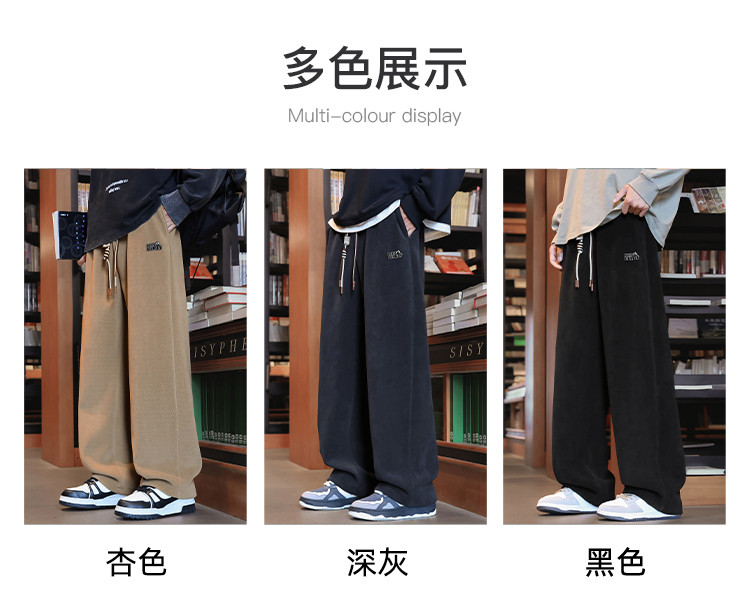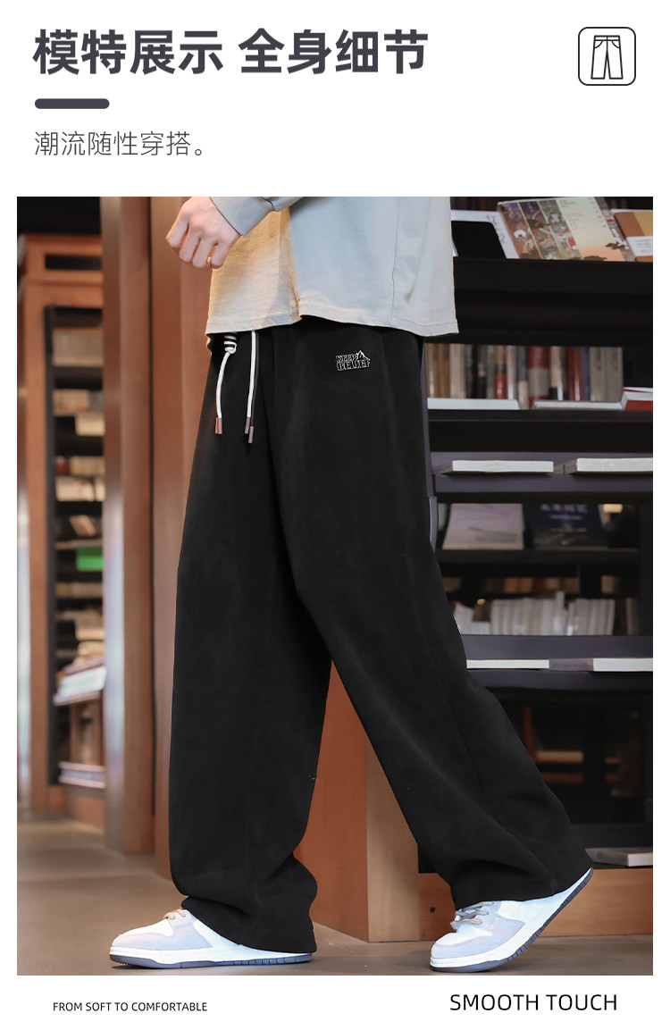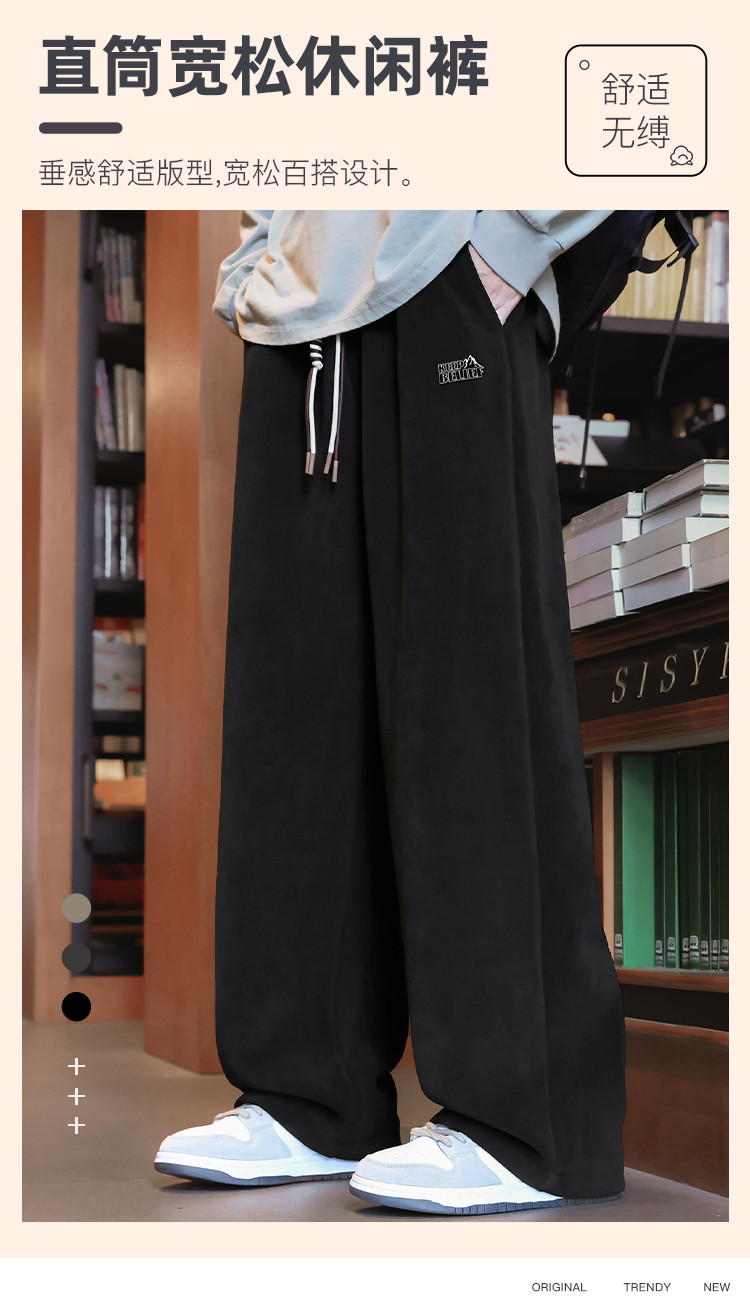 商品名称:博奥绒裤子男潮牌垂感直筒宽松阔腿裤美式复古男裤休闲运动裤 962579
