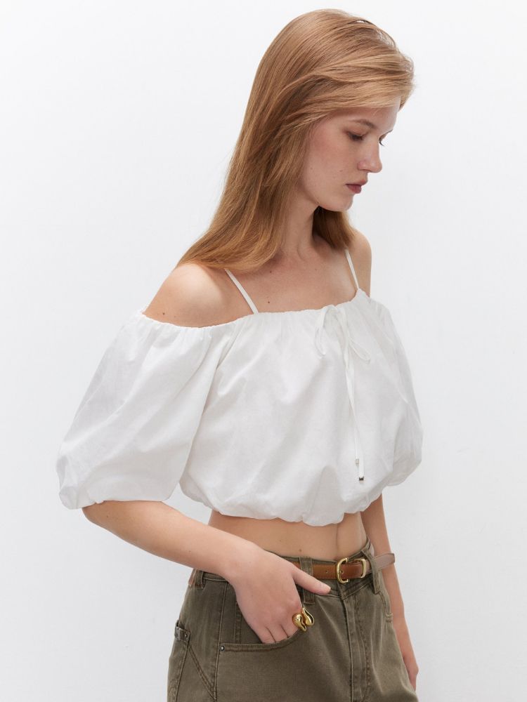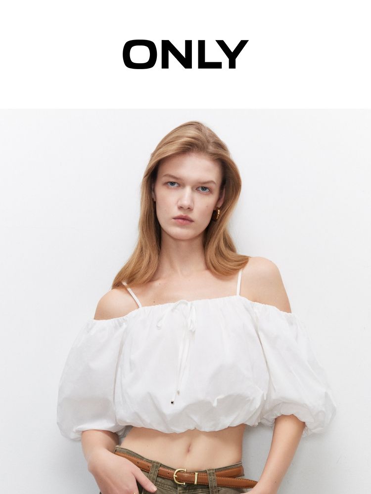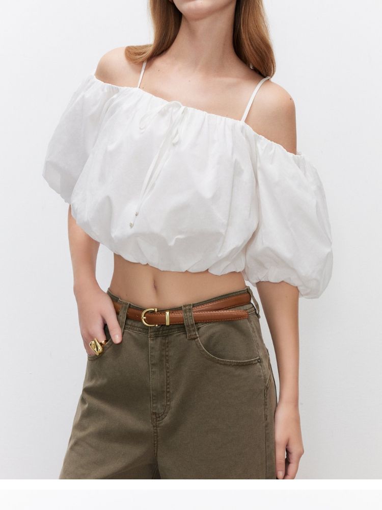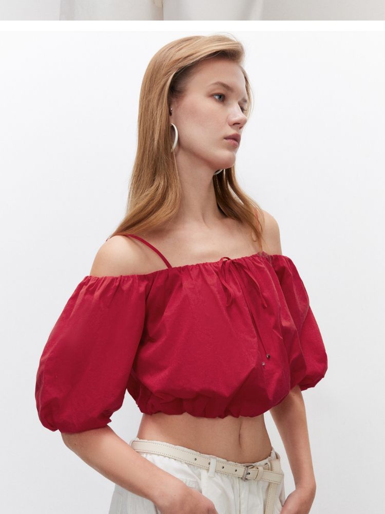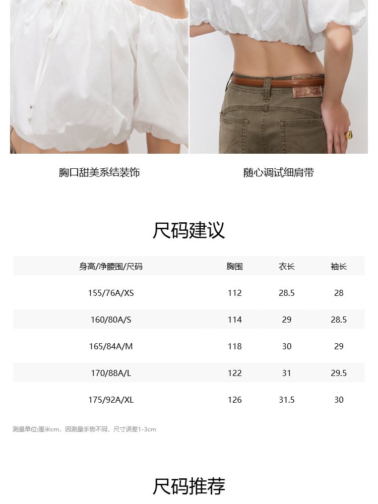 商品名称:【泡泡袖短款】2025夏季甜美系带一字肩雪纺衫女 309914