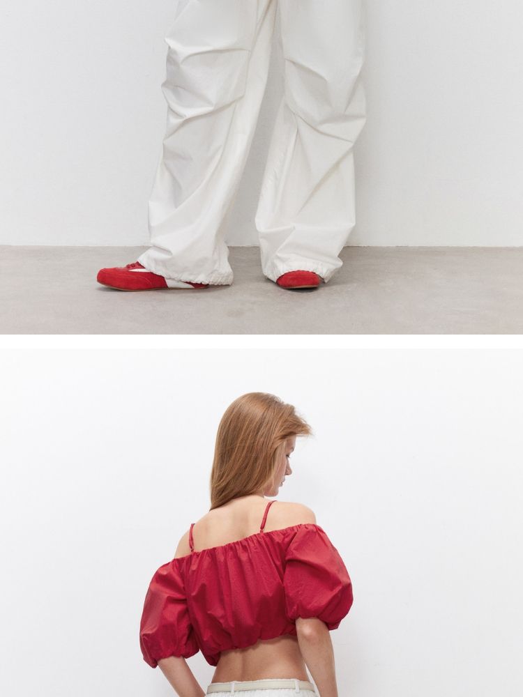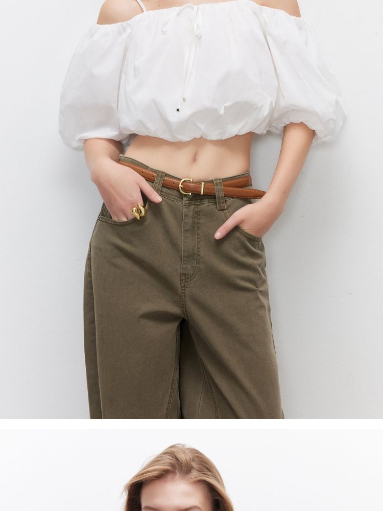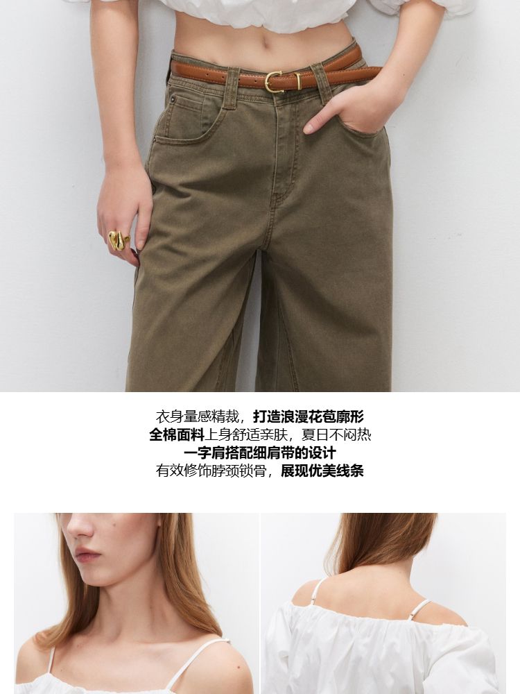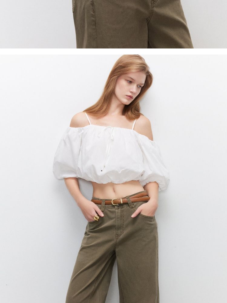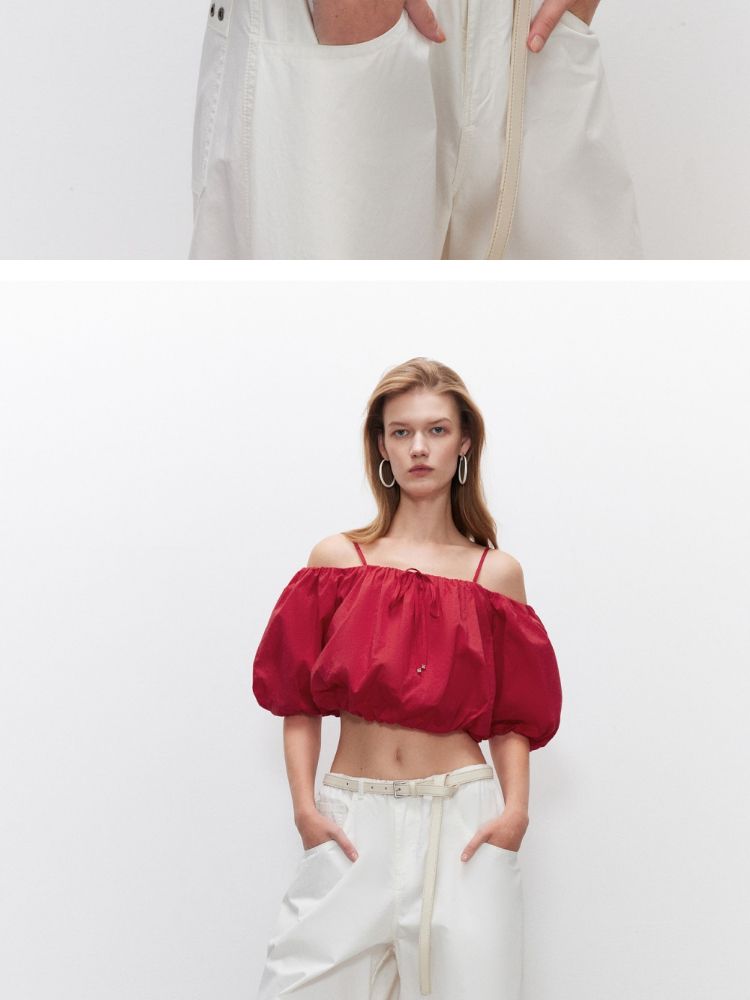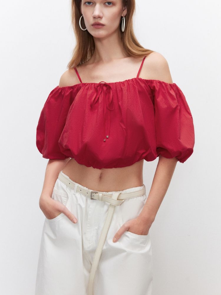 商品名称:【泡泡袖短款】2025夏季甜美系带一字肩雪纺衫女 309914