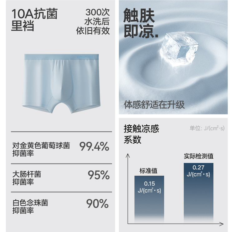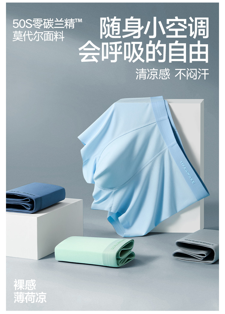 商品名称:【凉感莫代尔 10A抑菌消臭】3条装男士平角内裤四角短裤男 635994