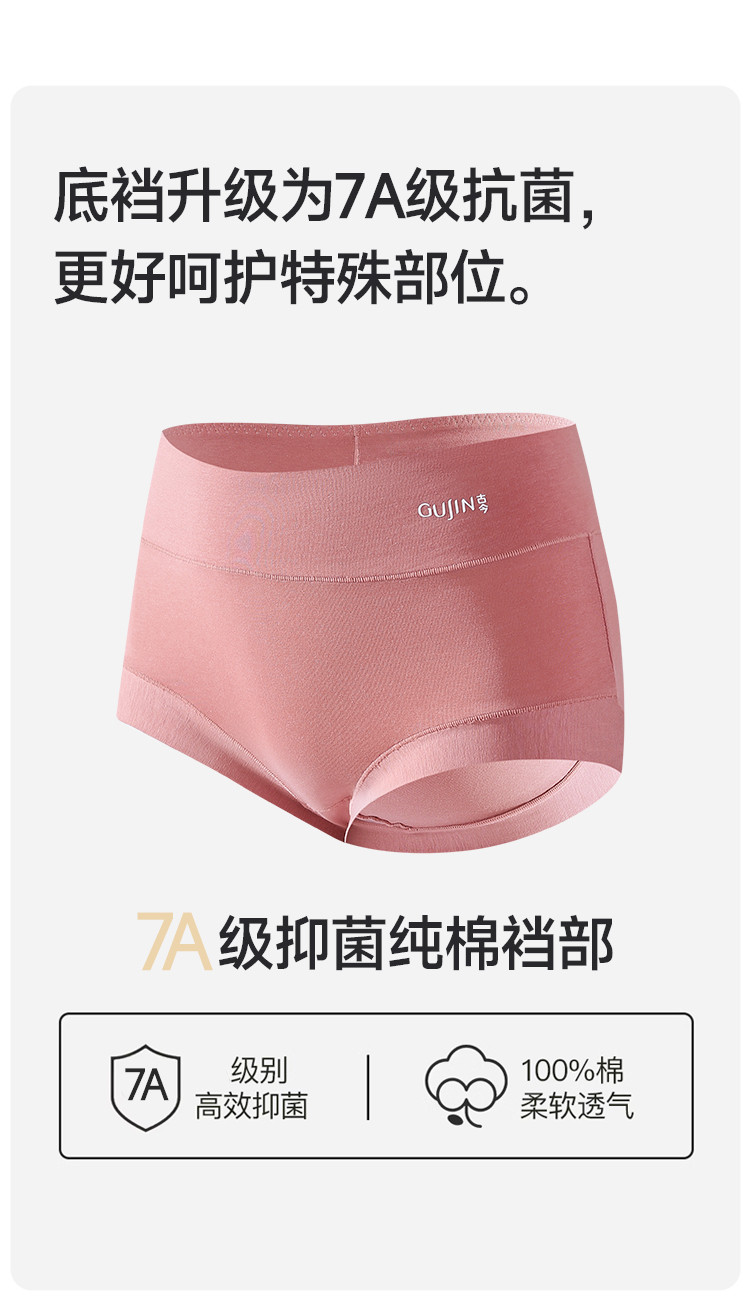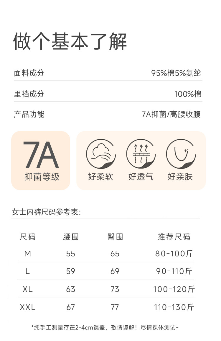 商品名称:【100纯棉抑菌裆】3条装中高腰收腹柔软透气女士内裤女短裤衩 111947