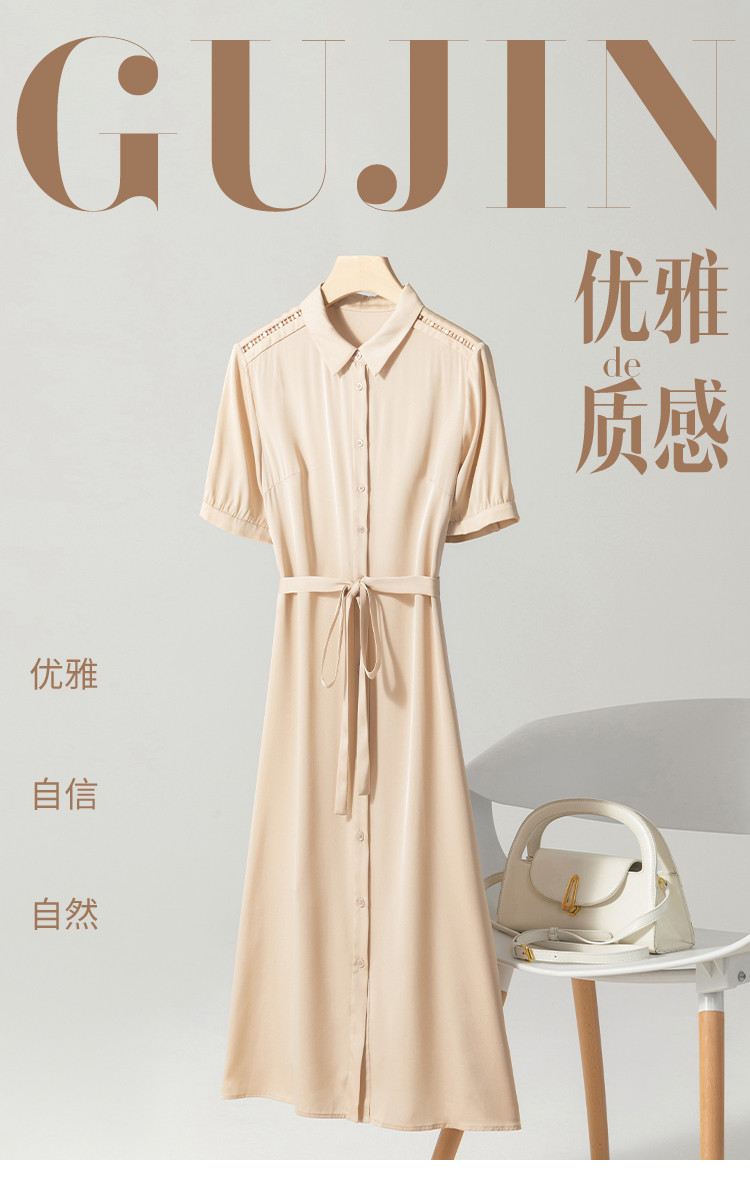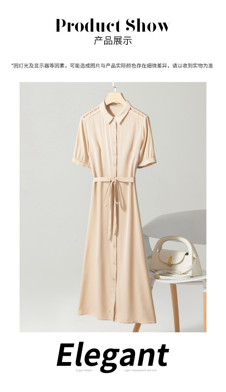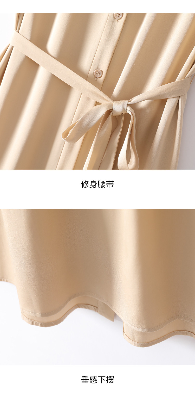 商品名称:【弹力桑蚕丝】夏季衬衫裙显瘦纯色百搭单排扣纯色裙子女 365139