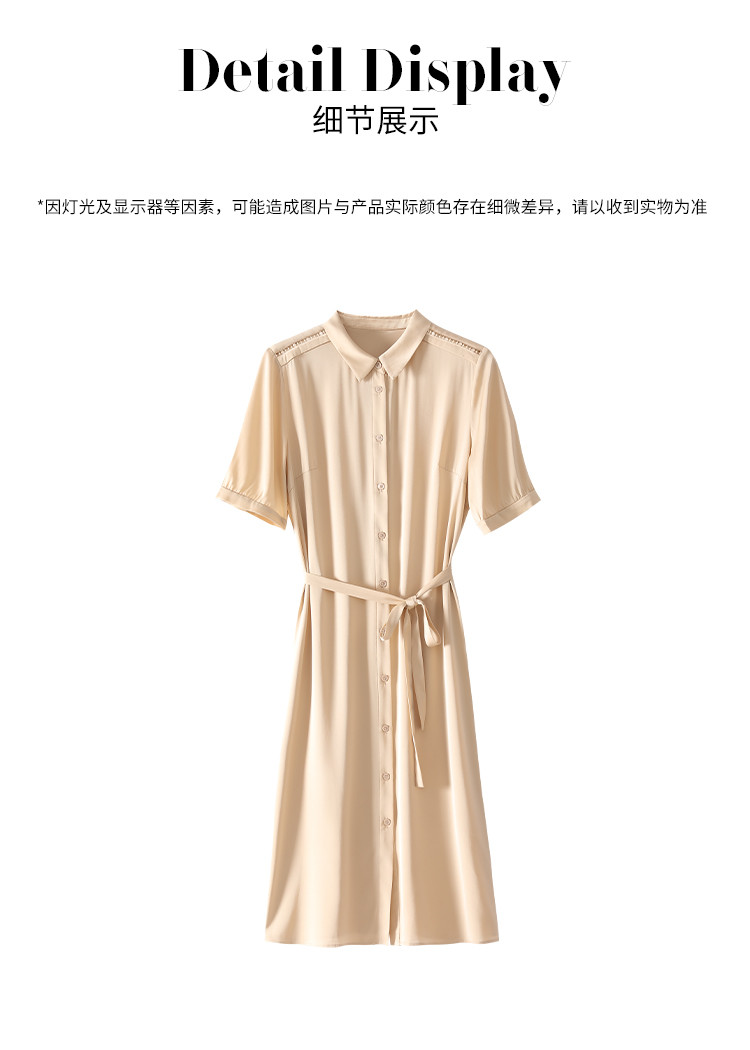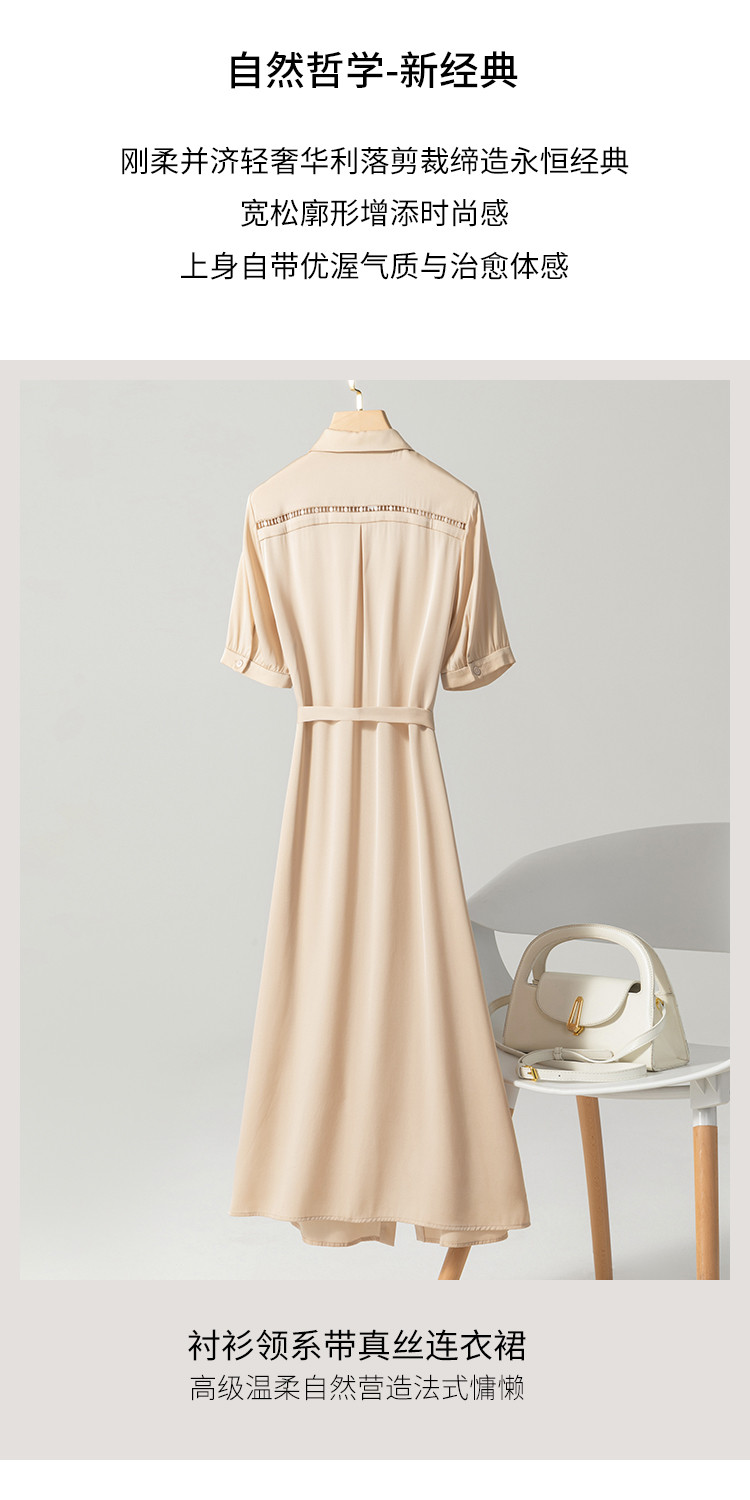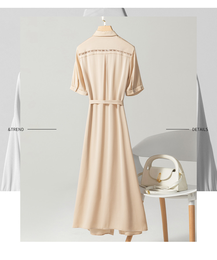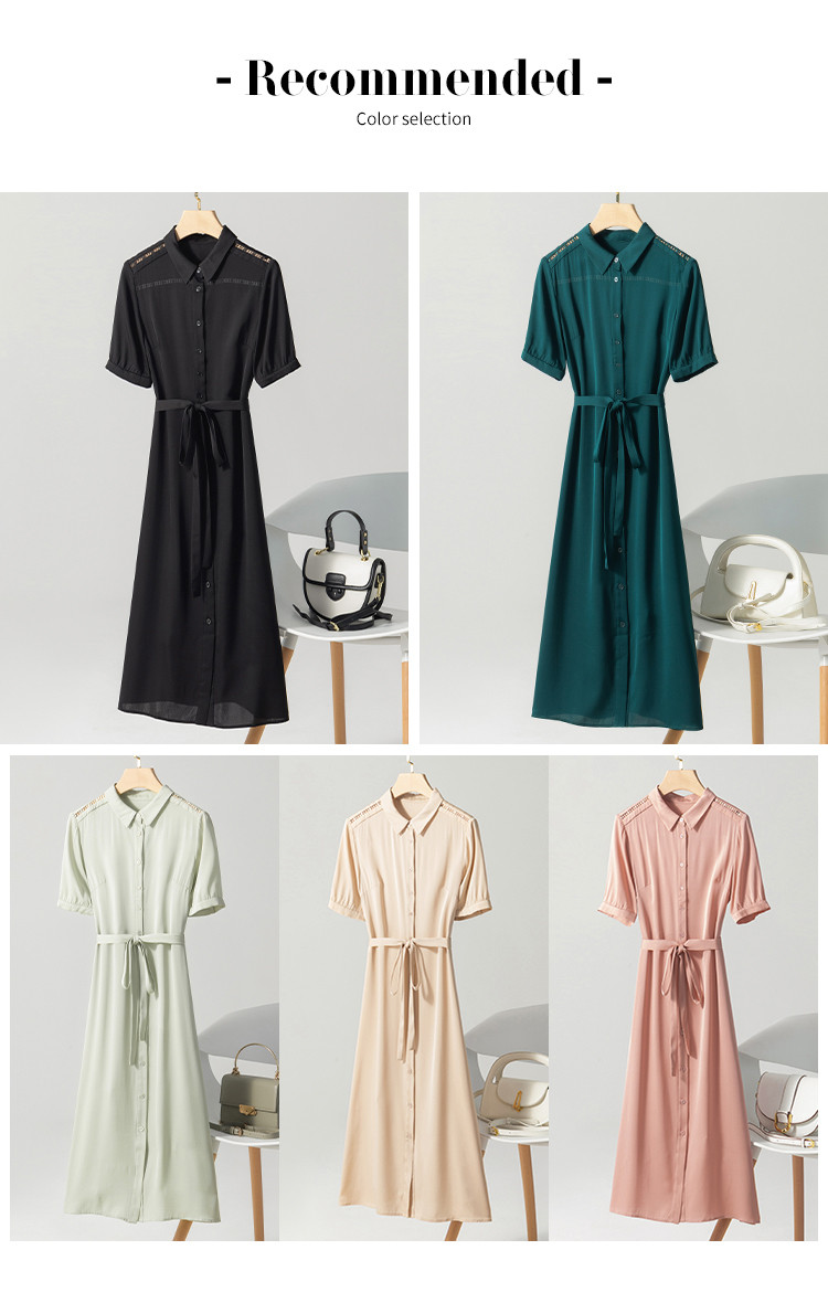 商品名称:【弹力桑蚕丝】夏季衬衫裙显瘦纯色百搭单排扣纯色裙子女 365139