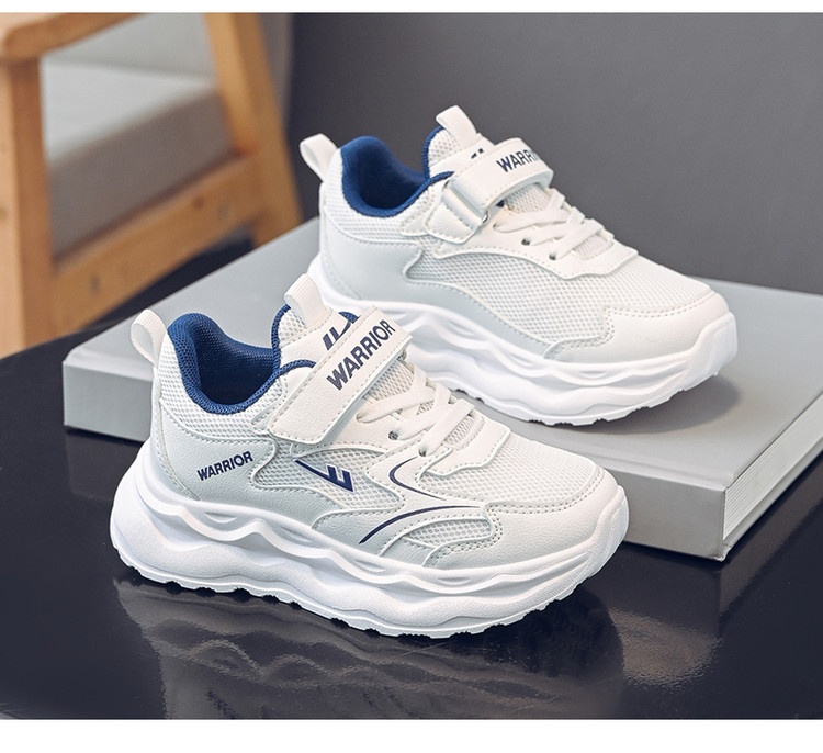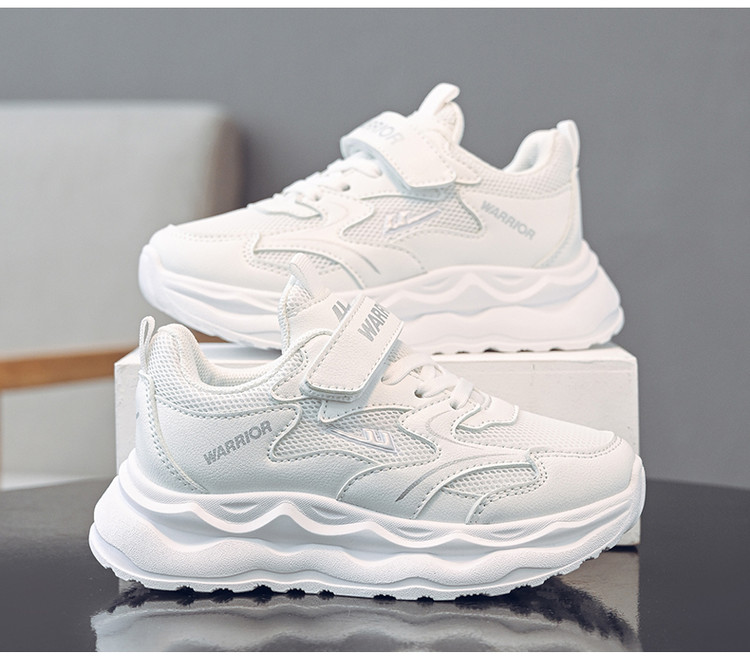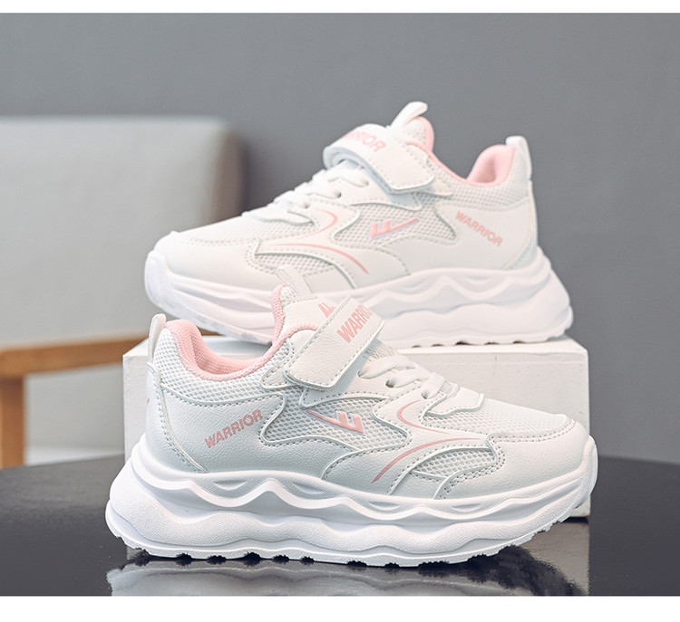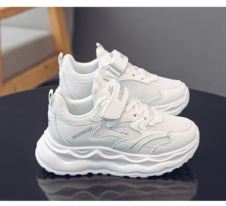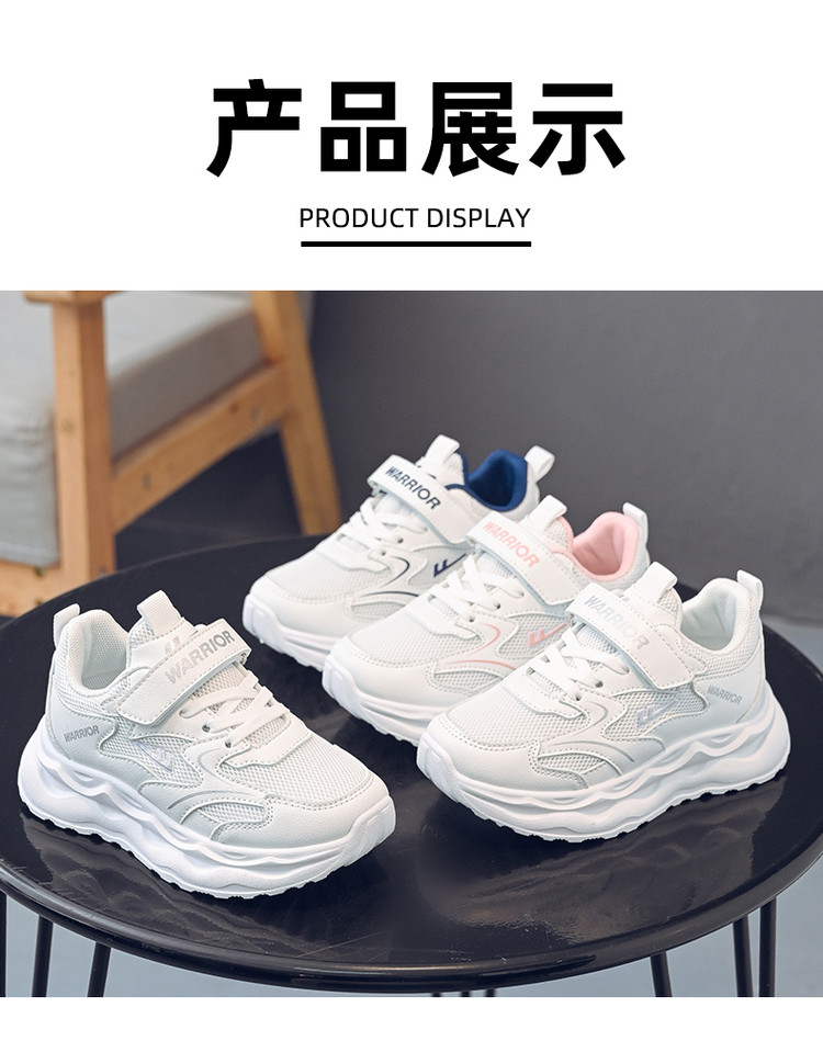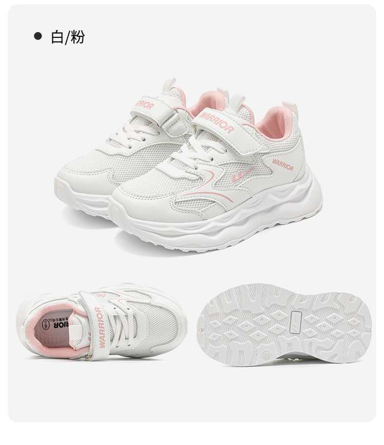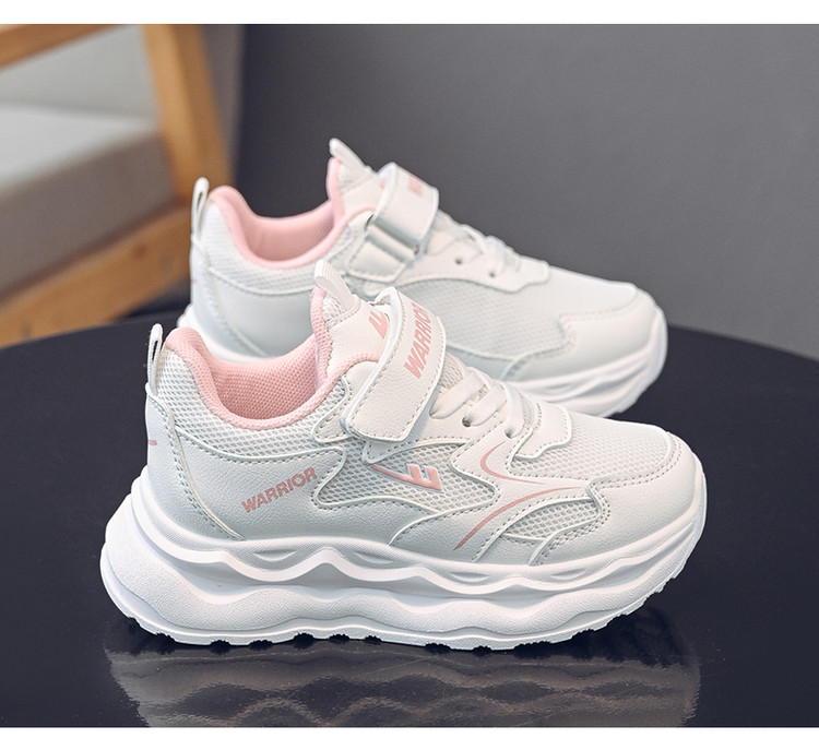男童鞋春季儿童网面透气小白鞋女童魔术贴运动鞋跑步鞋 858390