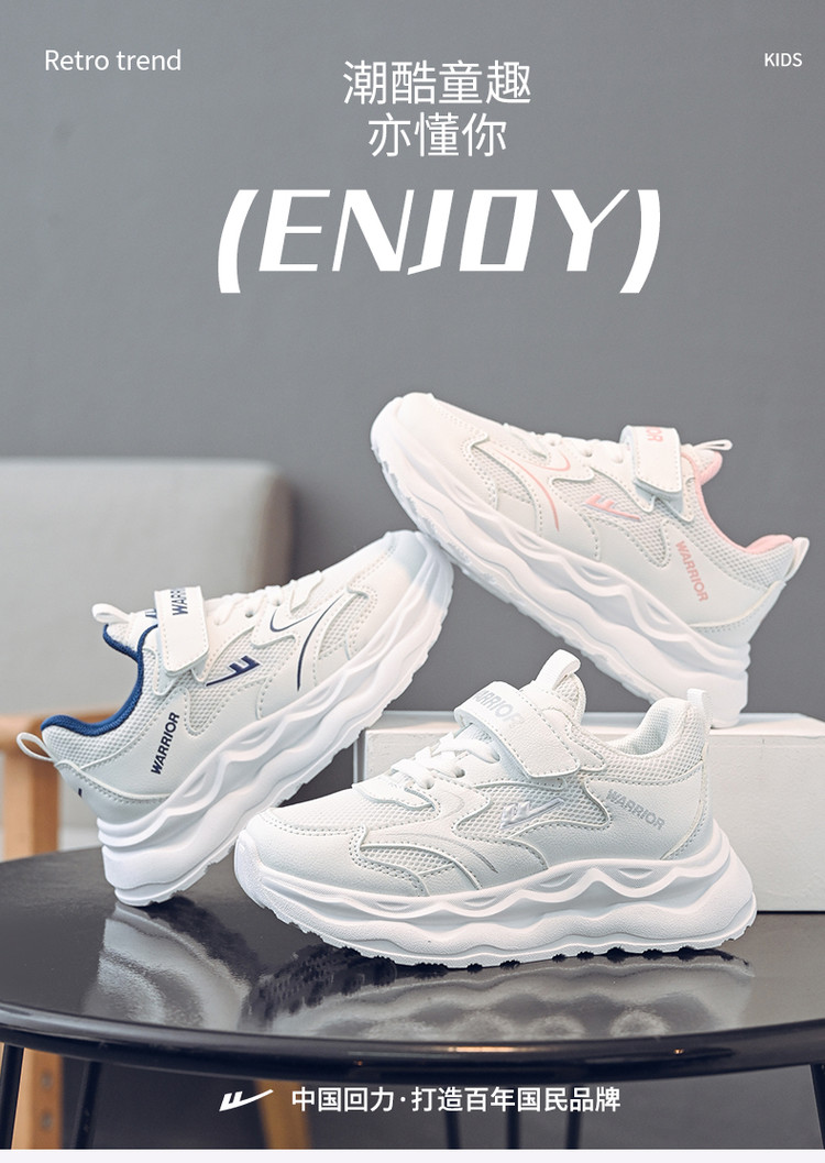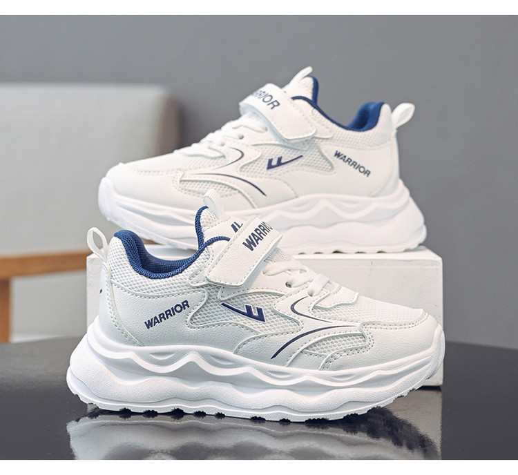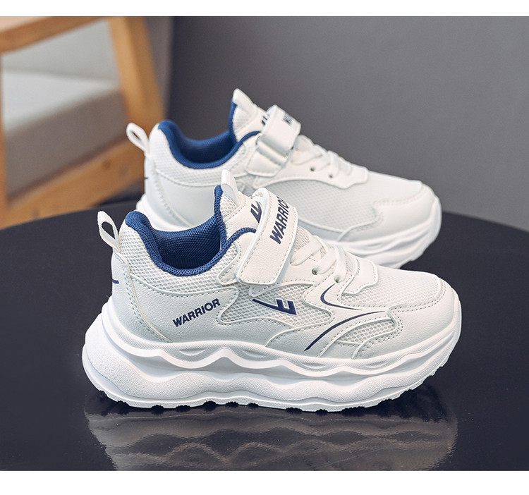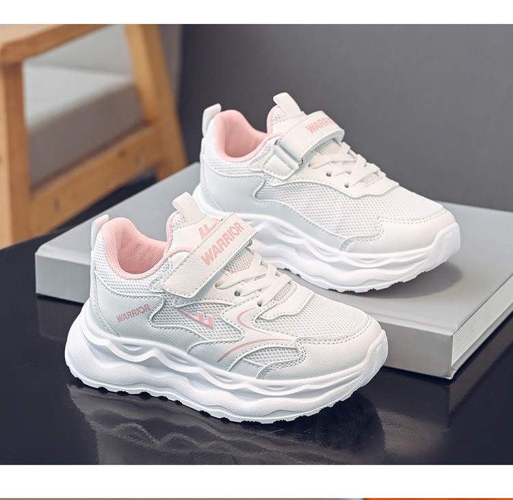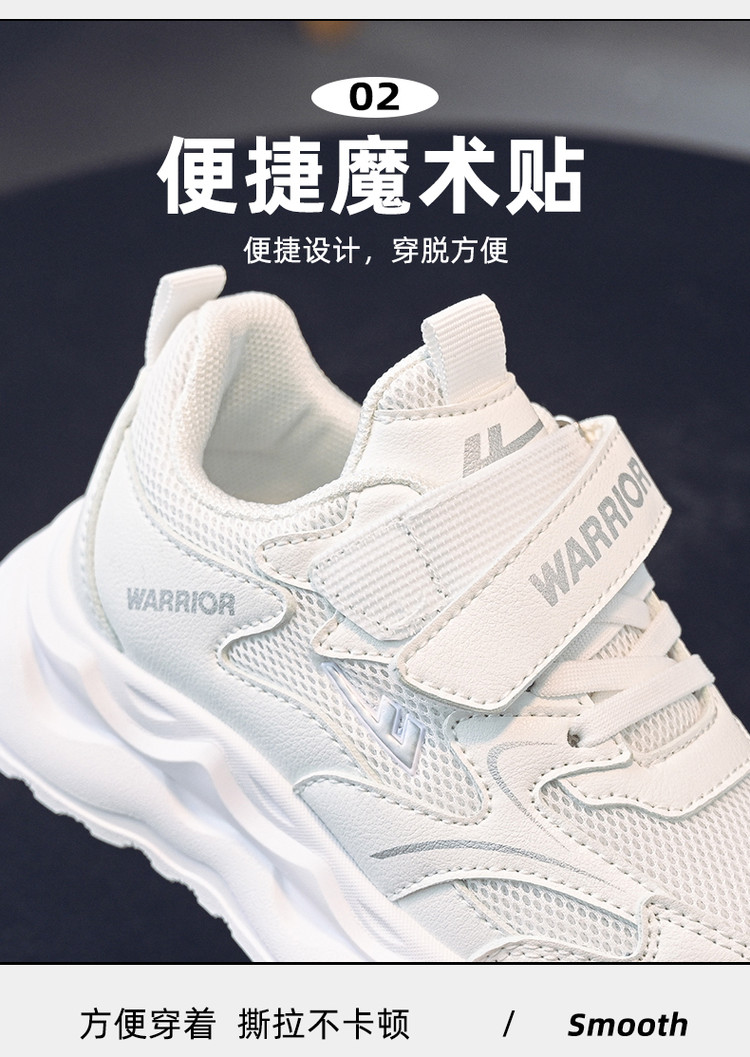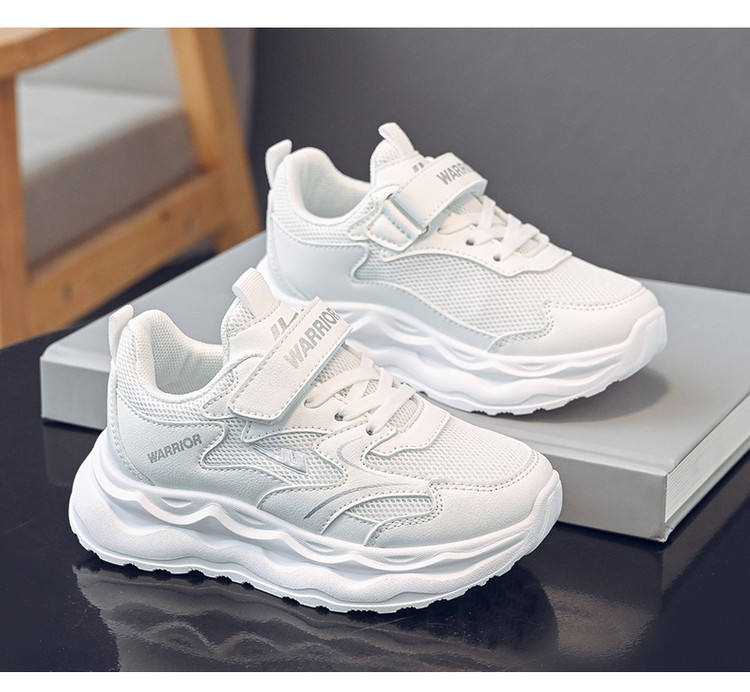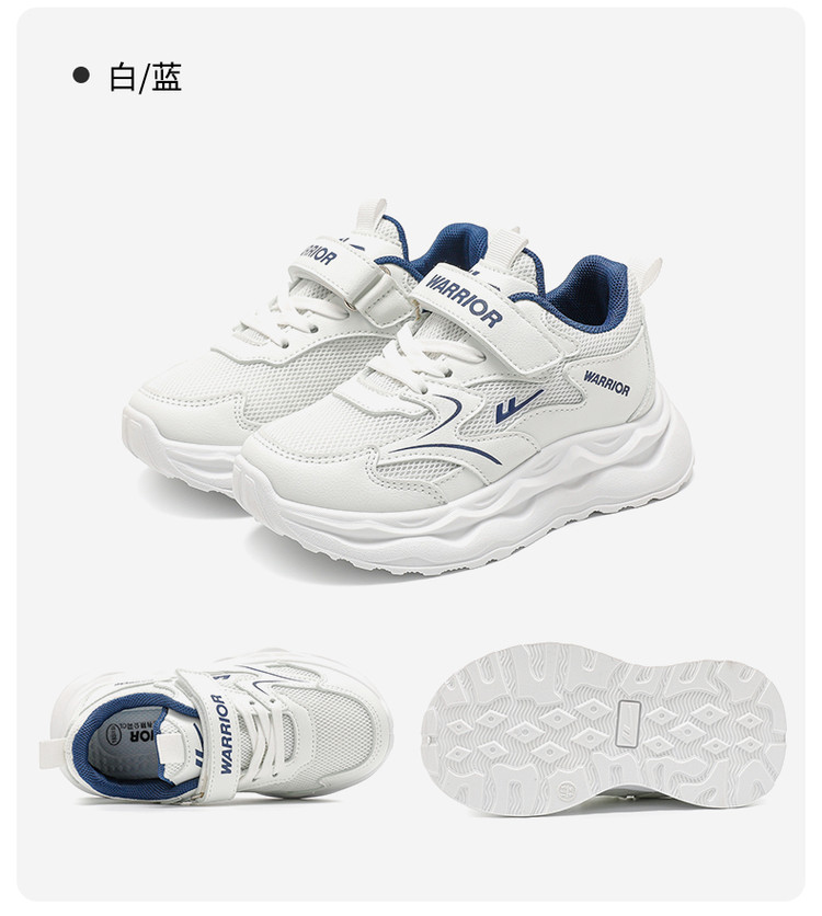 男童鞋春季儿童网面透气小白鞋女童魔术贴运动鞋跑步鞋 858390