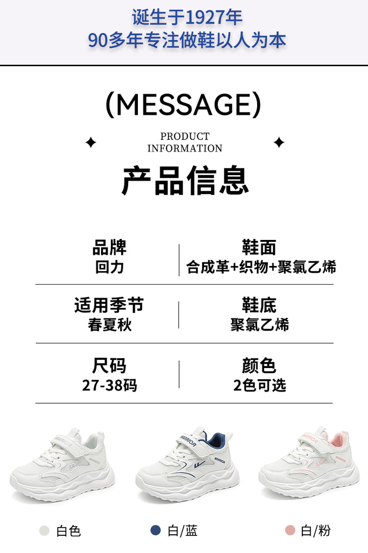 商品名称:男童鞋春季儿童网面透气小白鞋女童魔术贴运动鞋跑步鞋 858390