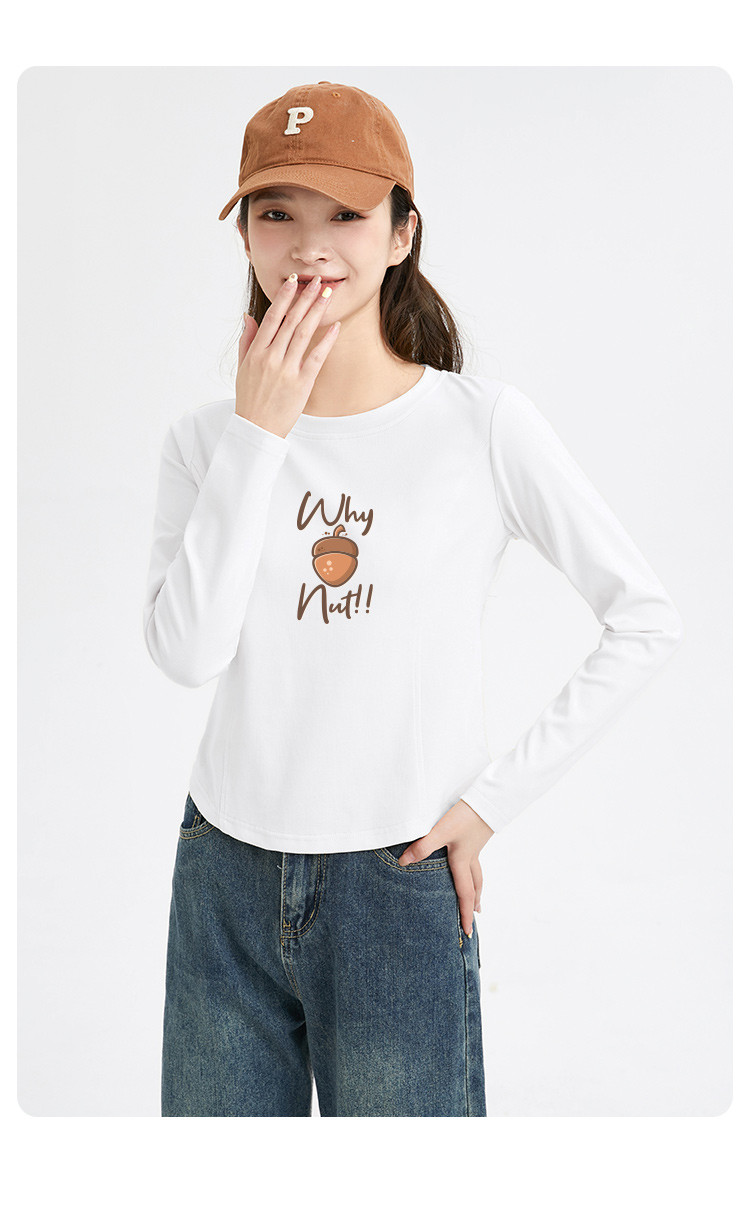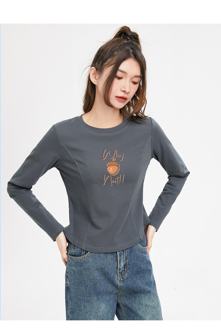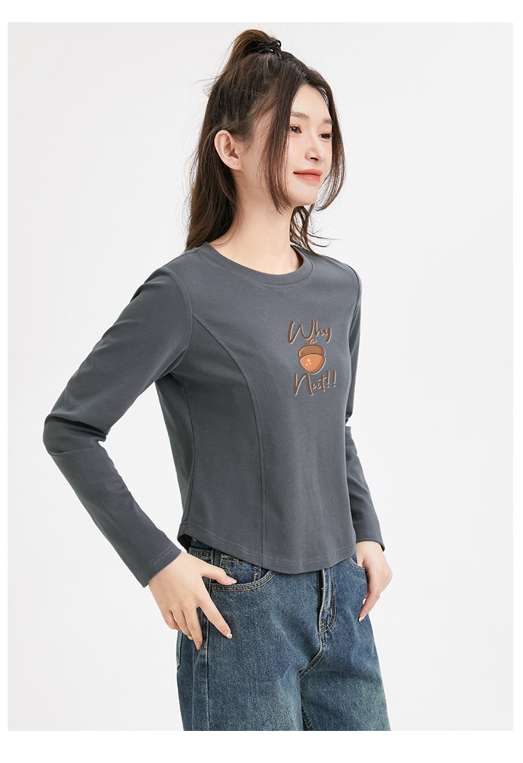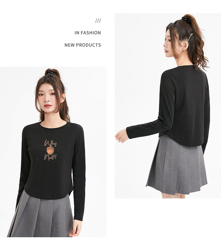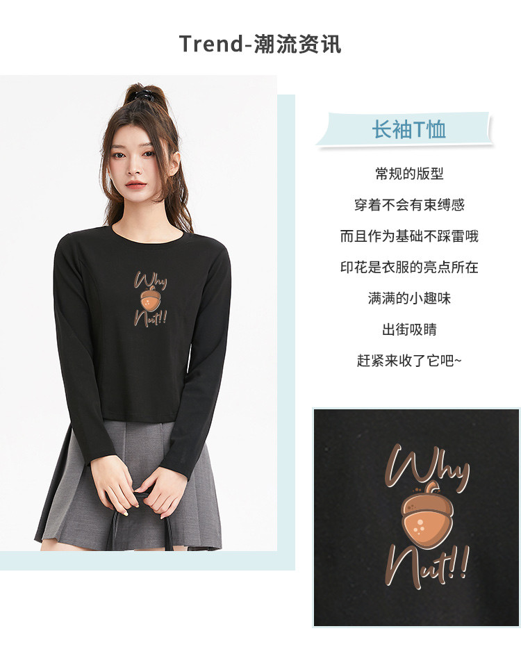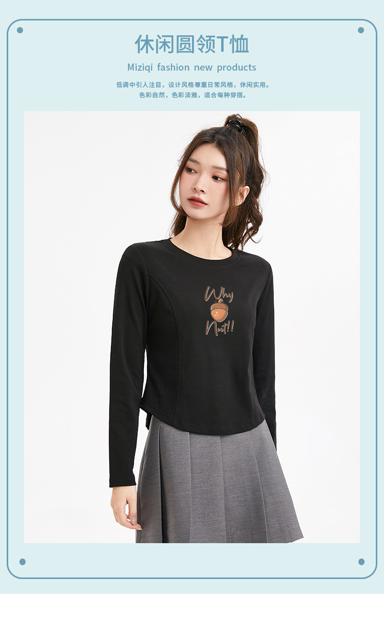 商品名称:米子旗春秋款圆领女式T恤印花长袖上衣百搭基础款 956762