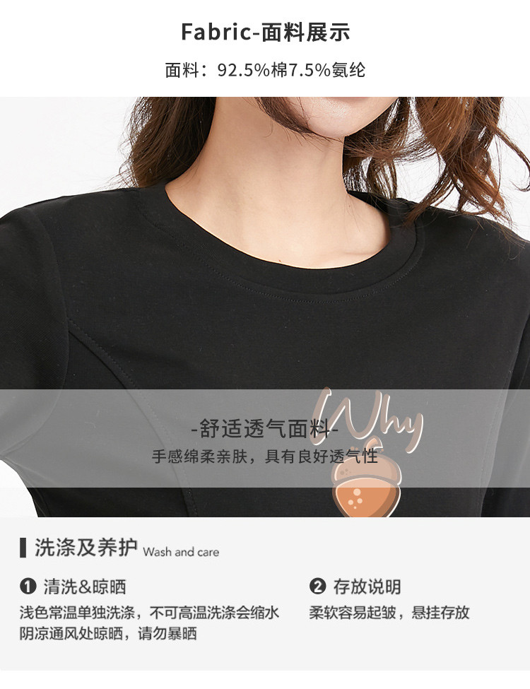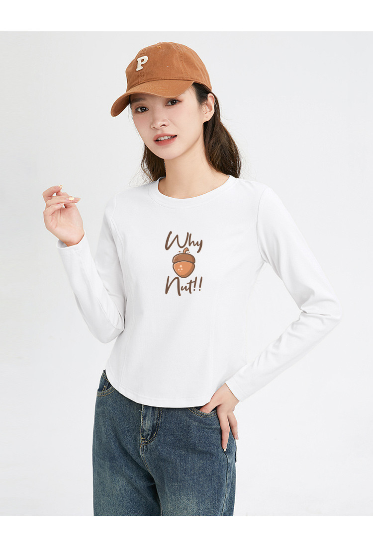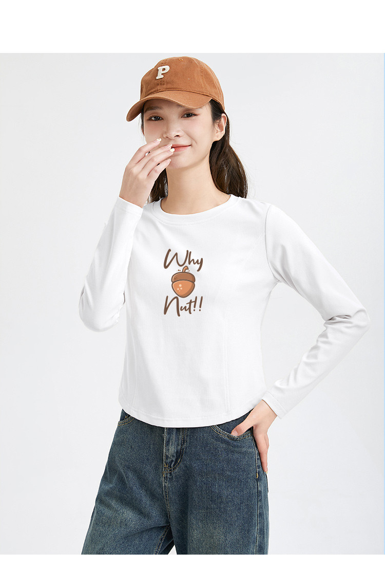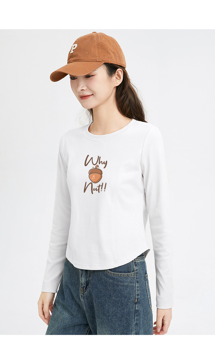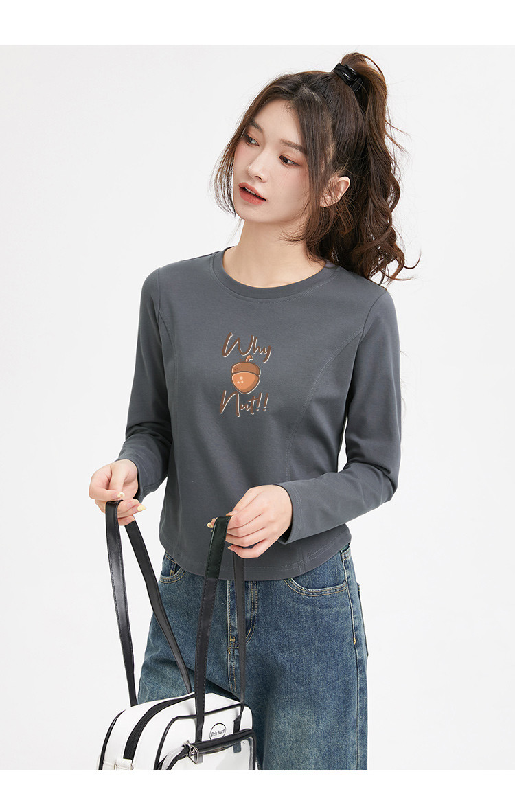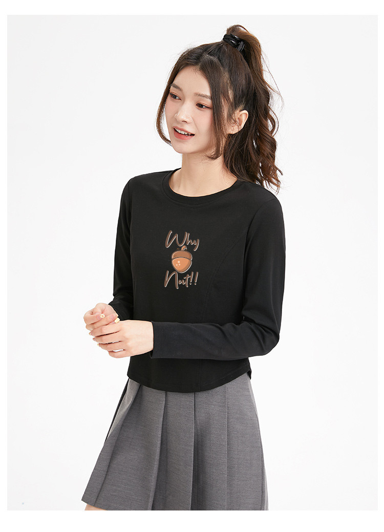 商品名称:米子旗春秋款圆领女式T恤印花长袖上衣百搭基础款 956762