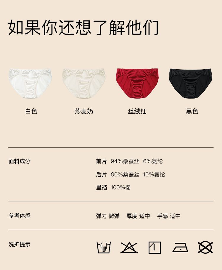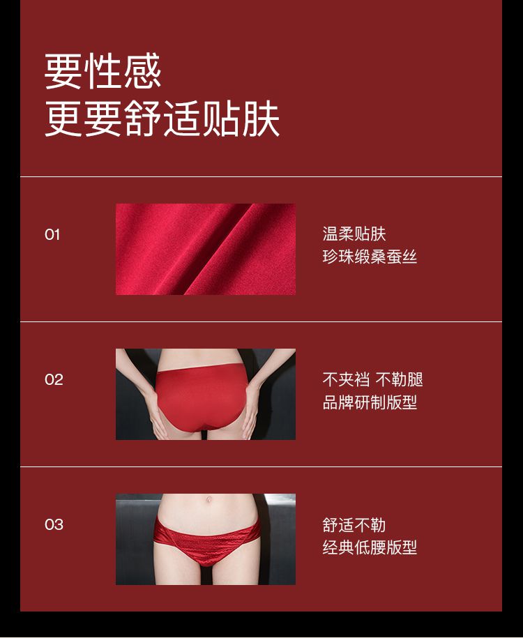 商品名称:【100%纯棉抗菌底档】婚礼性感桑蚕丝低腰三角裤不卷边内裤女 721152