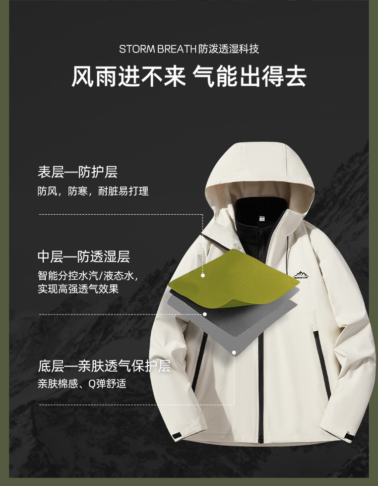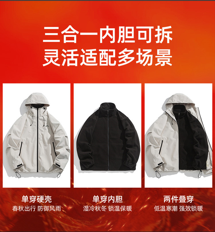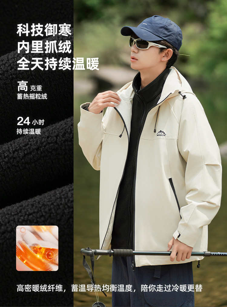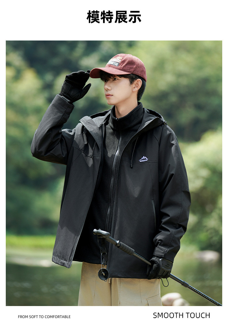 商品名称:【三合一两件套】山系机能风夹克男春秋简约潮牌户外防风保暖外套 569491