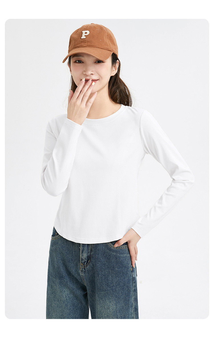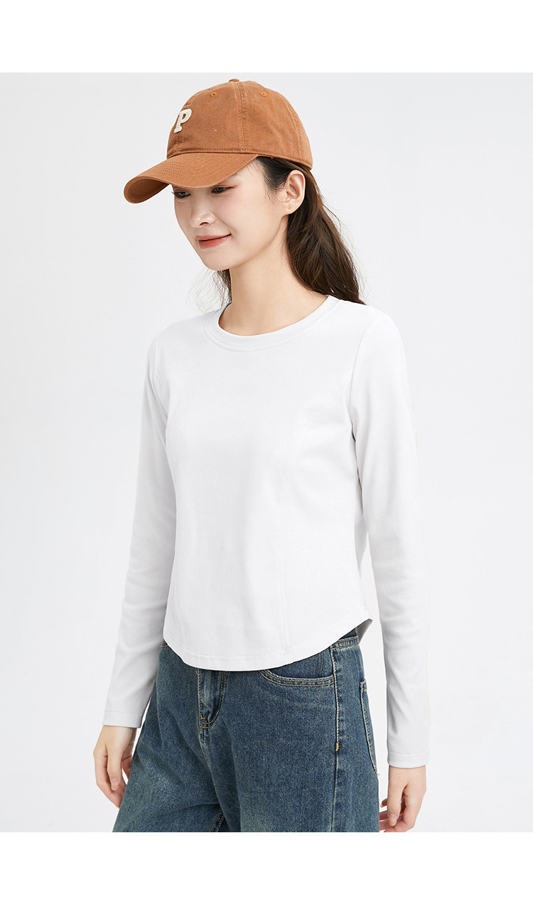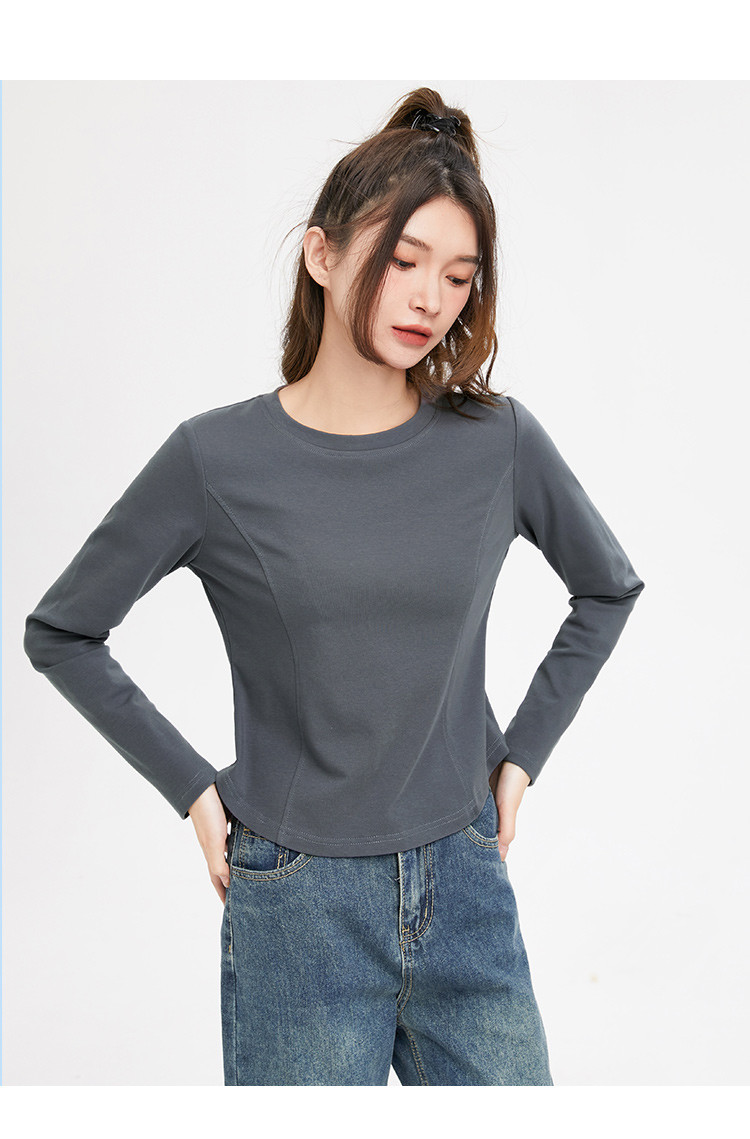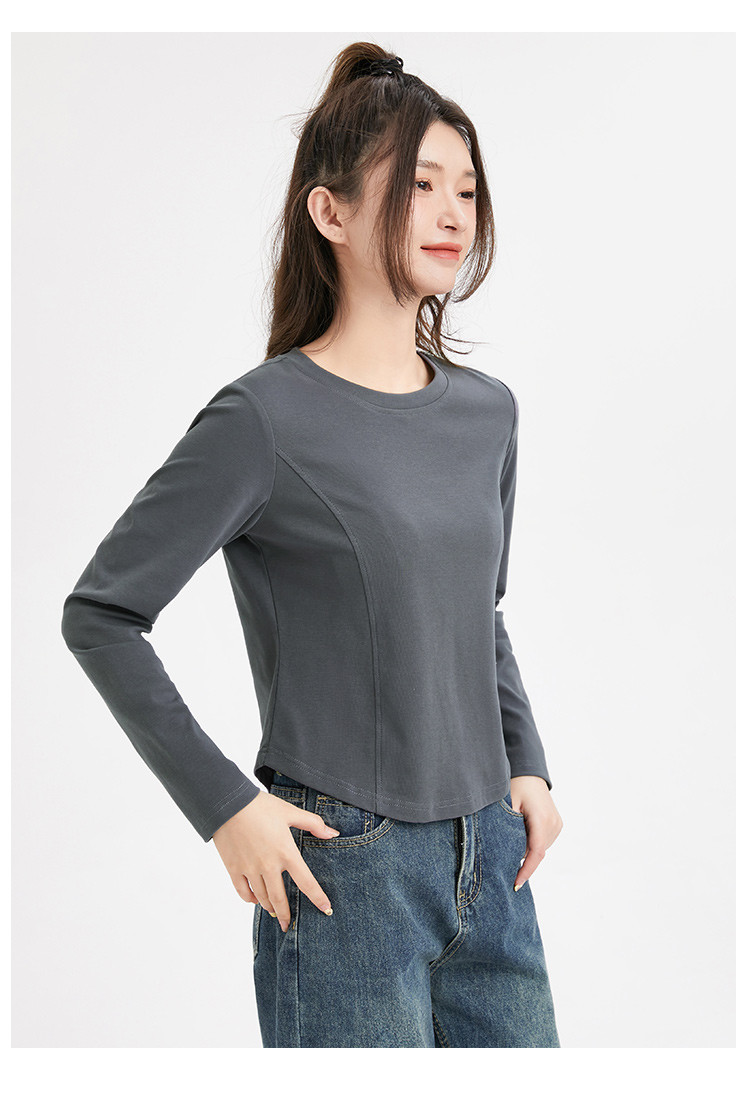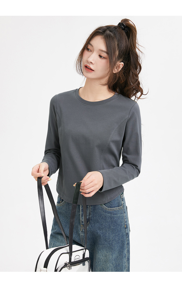 米子旗春秋季圆领女士T恤简约百搭休闲长袖打底衫女 008474