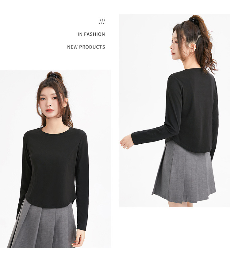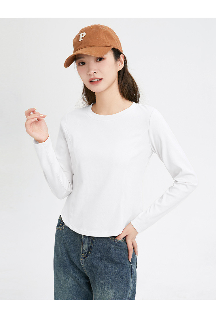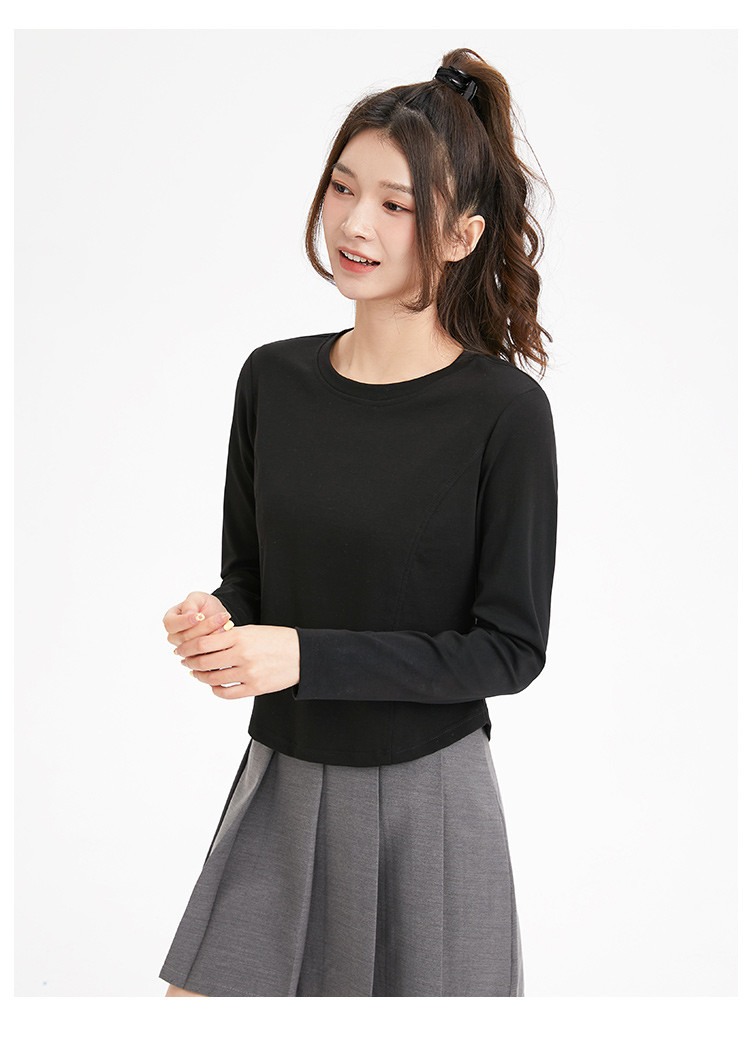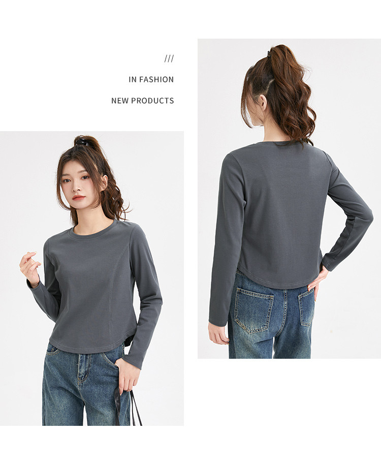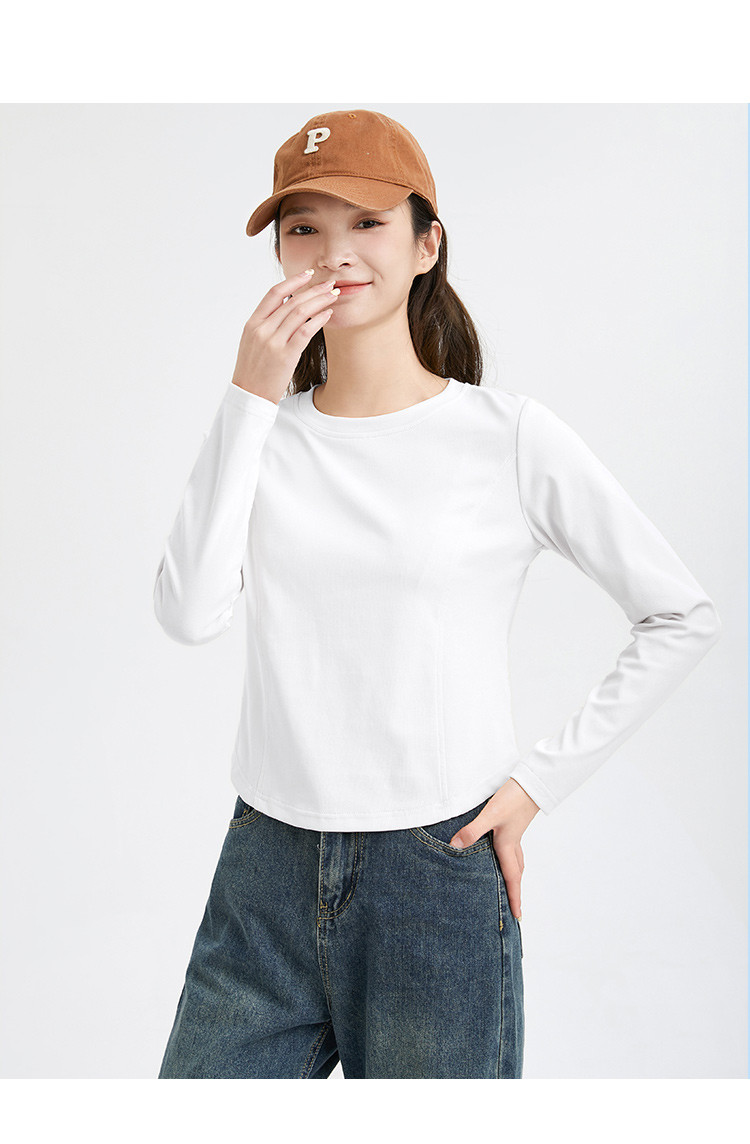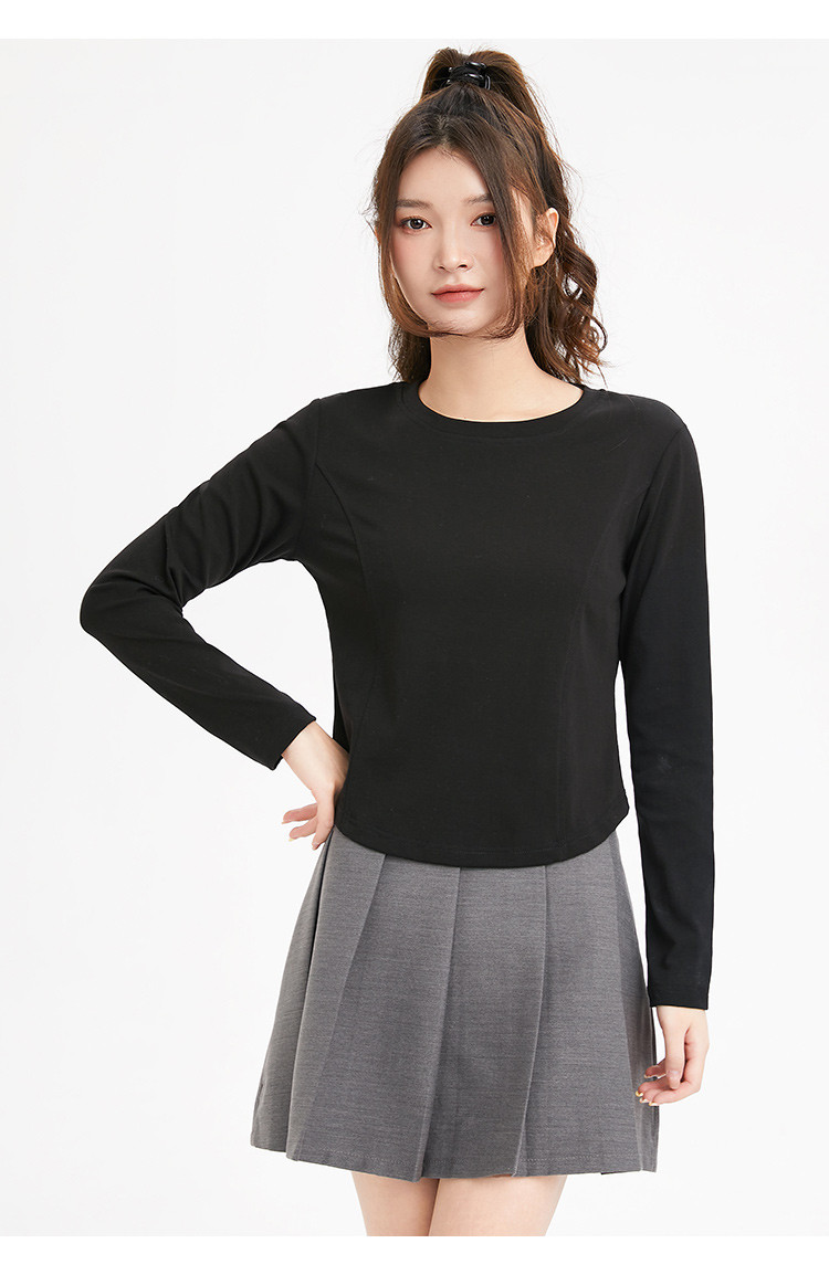米子旗春秋季圆领女士T恤简约百搭休闲长袖打底衫女 008474