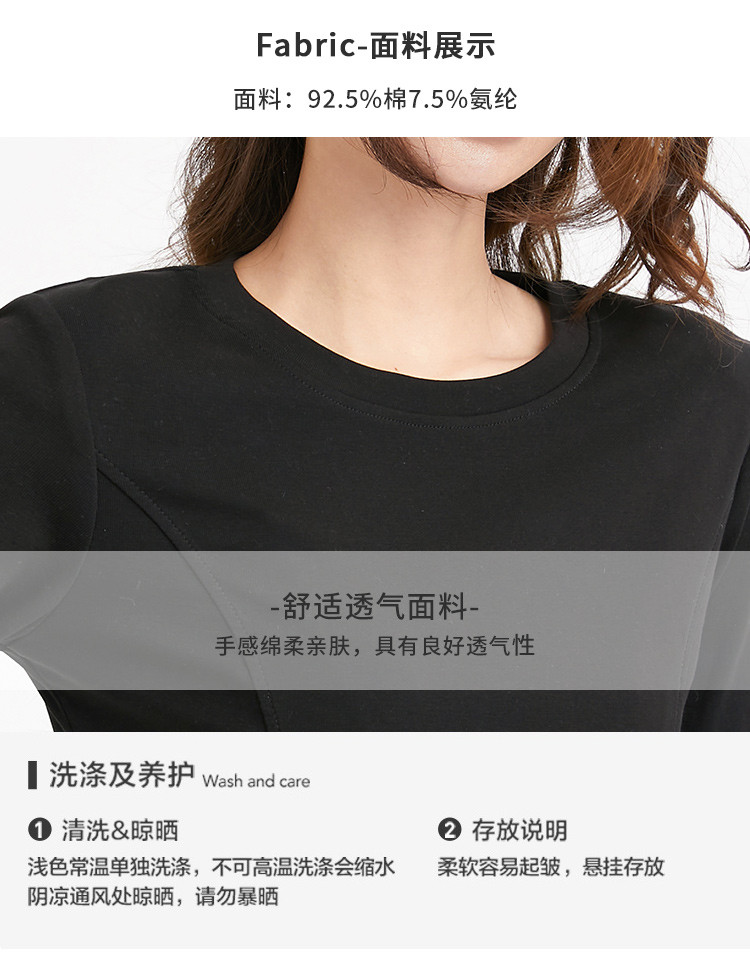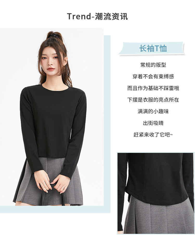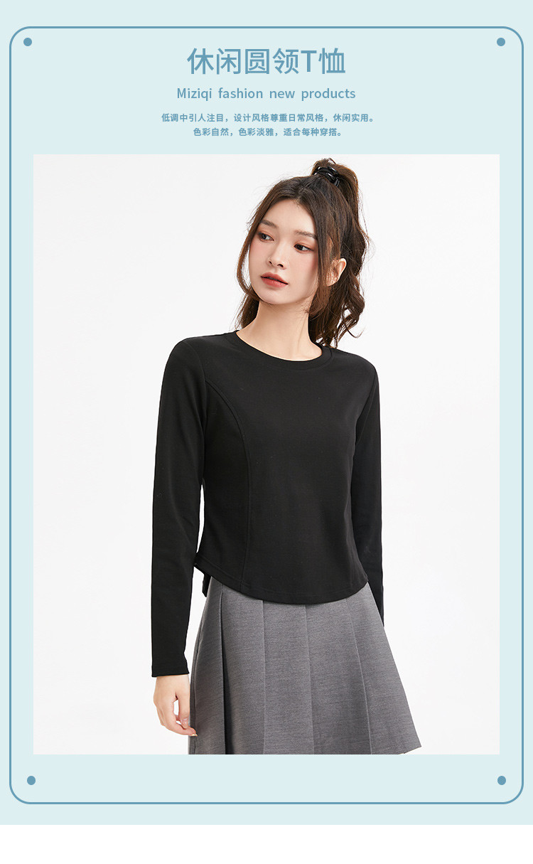 商品名称:米子旗春秋季圆领女士T恤简约百搭休闲长袖打底衫女 008474