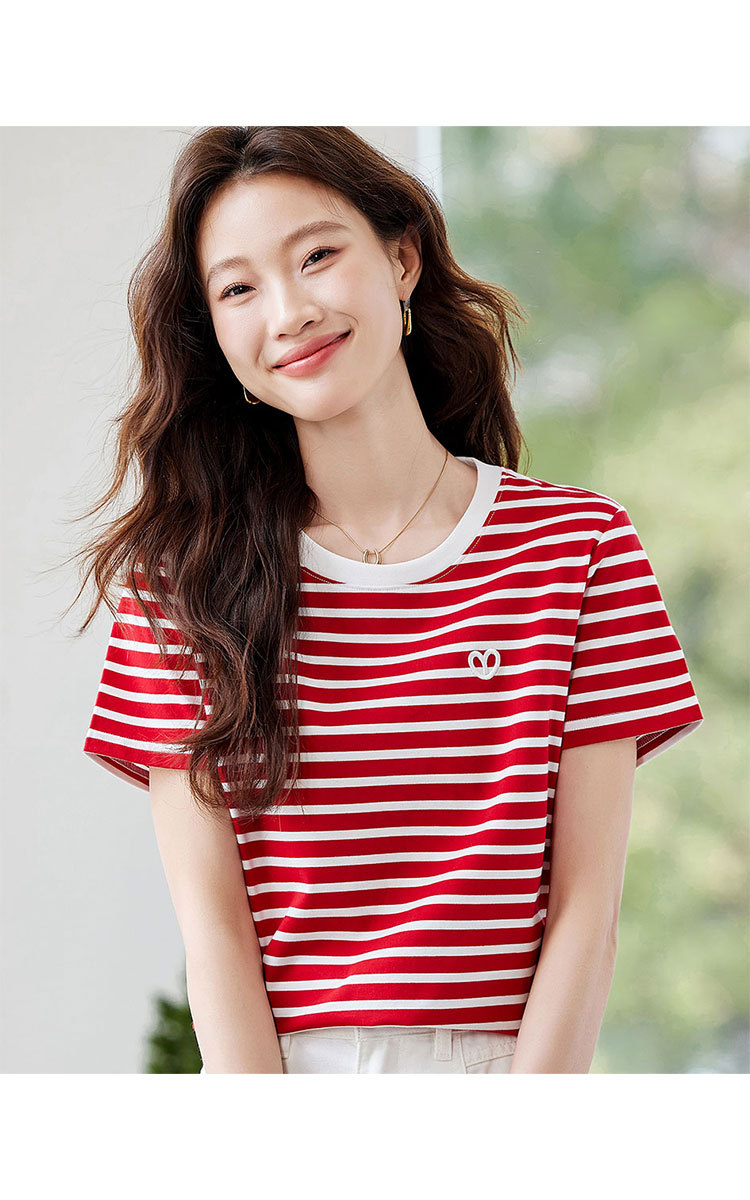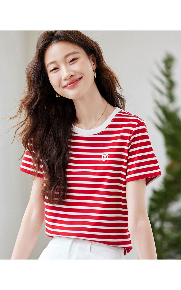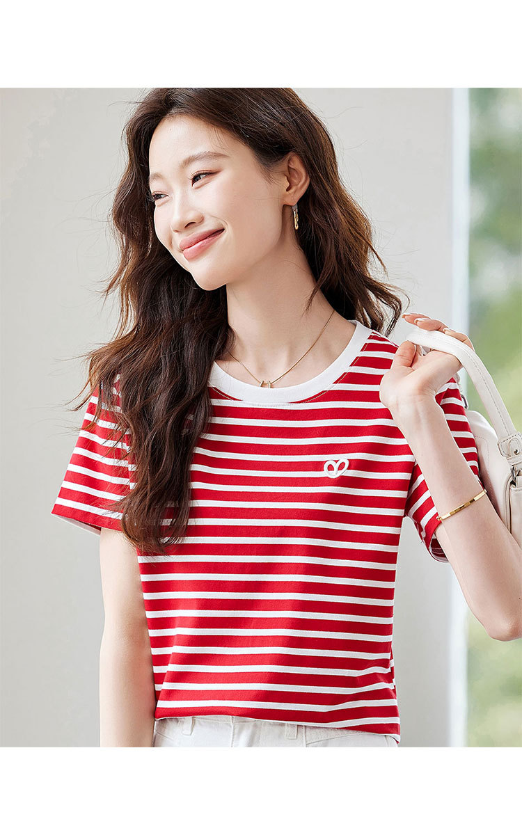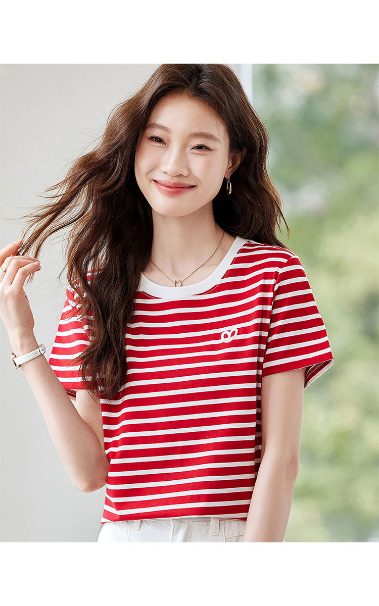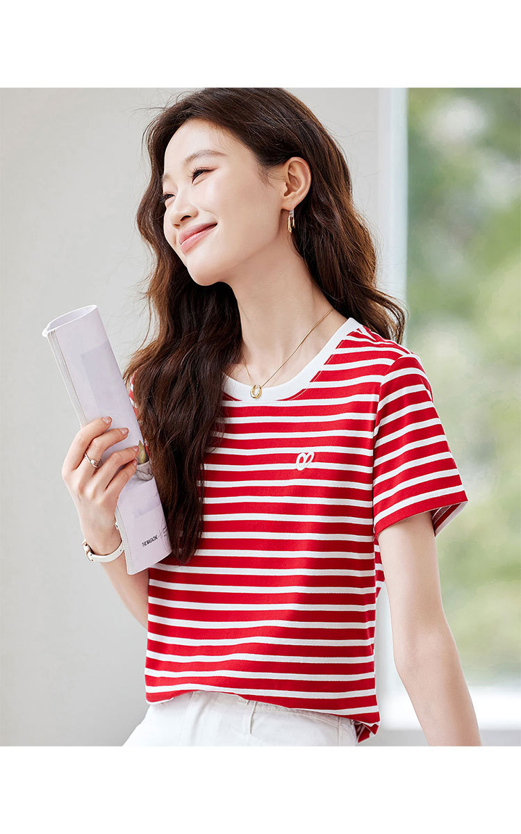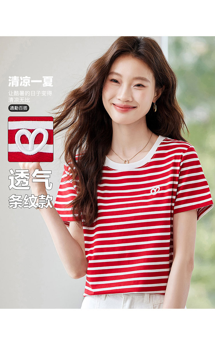 商品名称:【去繁就简】简约条纹减龄T恤女2025夏季都市通勤风撞色圆领 225055