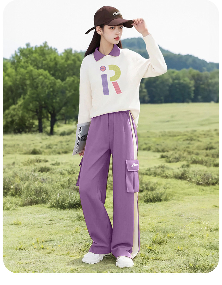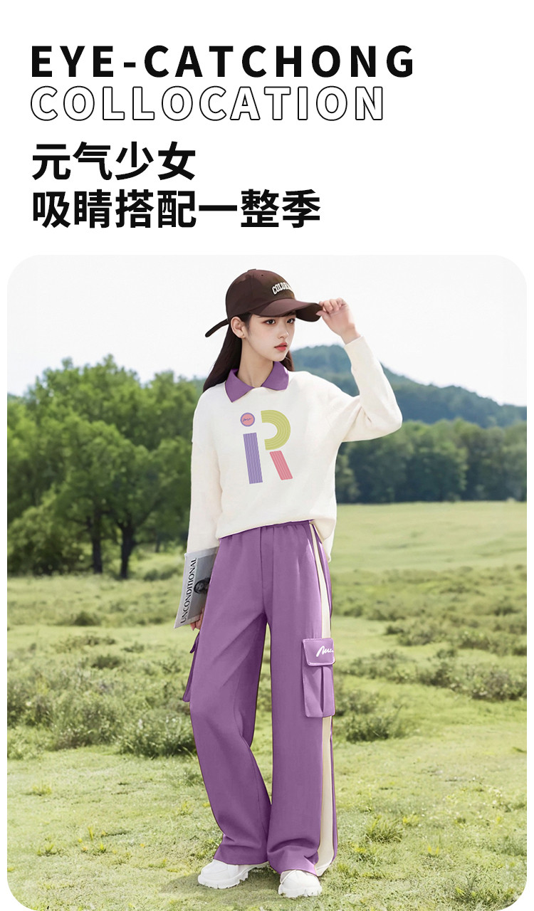 商品名称:童装女童套装时尚中大童翻领卫衣工装裤两件套春季百搭休闲 052307