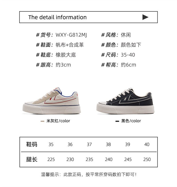 商品名称:春夏季低帮女鞋平底帆布鞋学生运动休闲鞋百搭经典厚底板鞋 039552