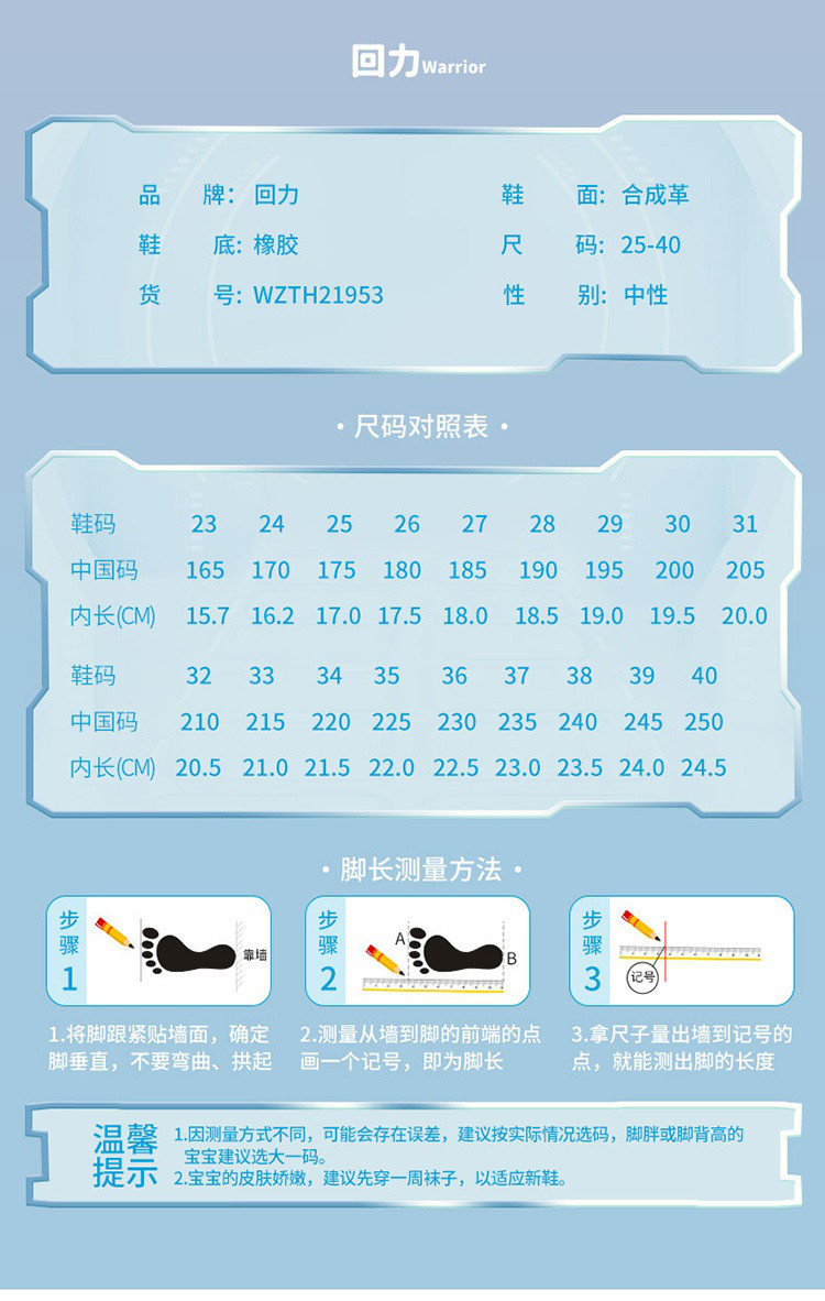| 尺码 | 脚长(mm) | 鞋长(mm) | 鞋内长(mm) |