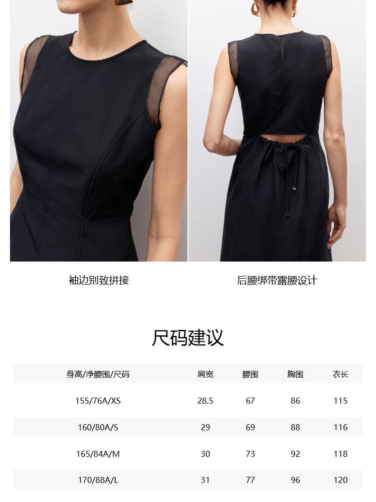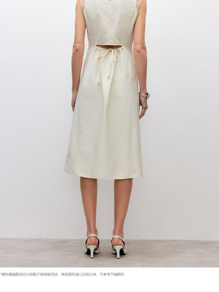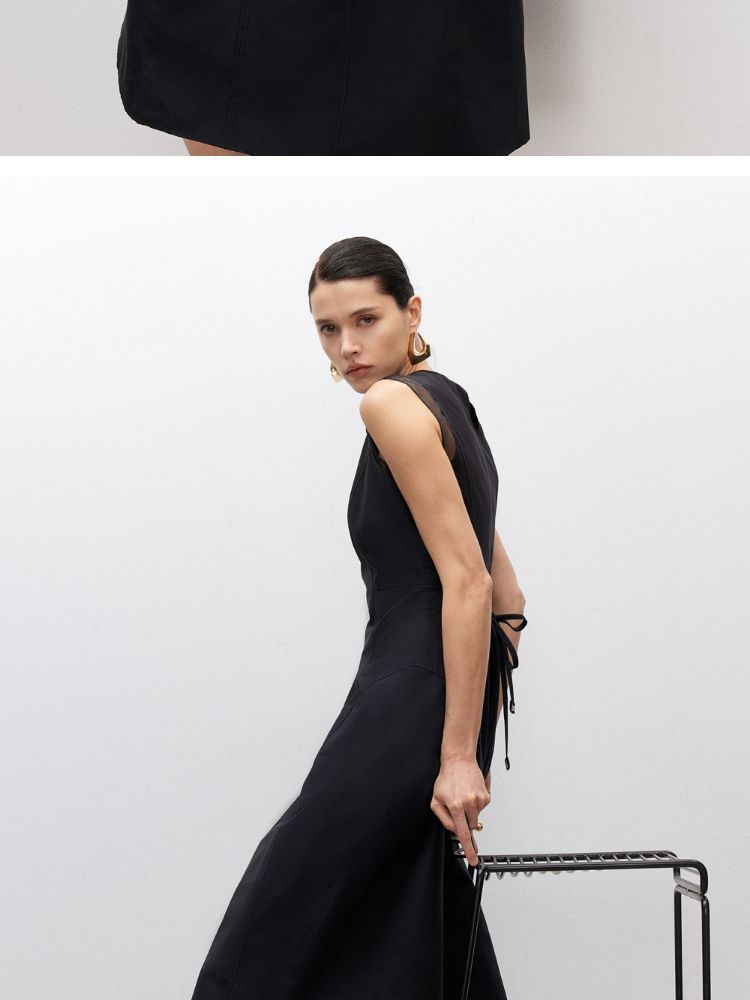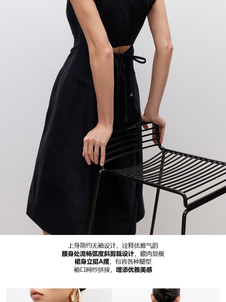 商品名称:【中长裙连衣裙】2025夏季无袖纯色A字露腰绑带连衣裙女 538138