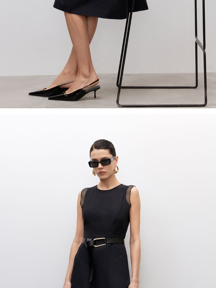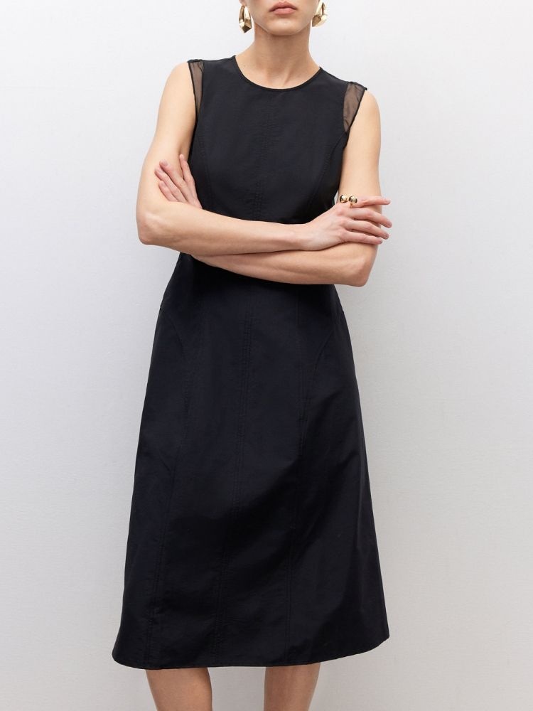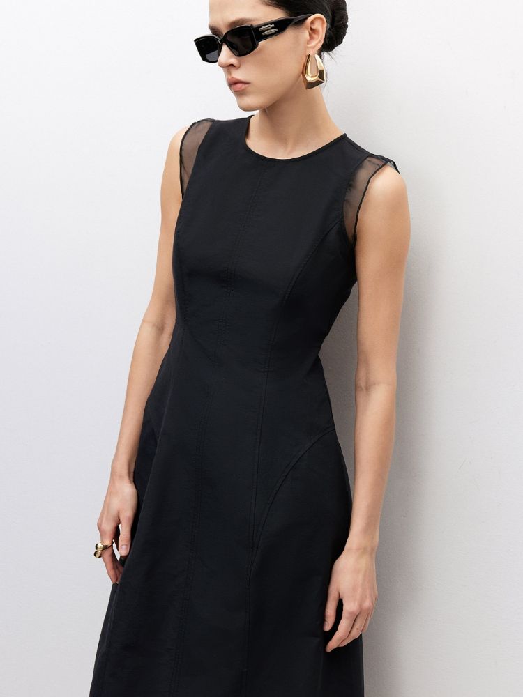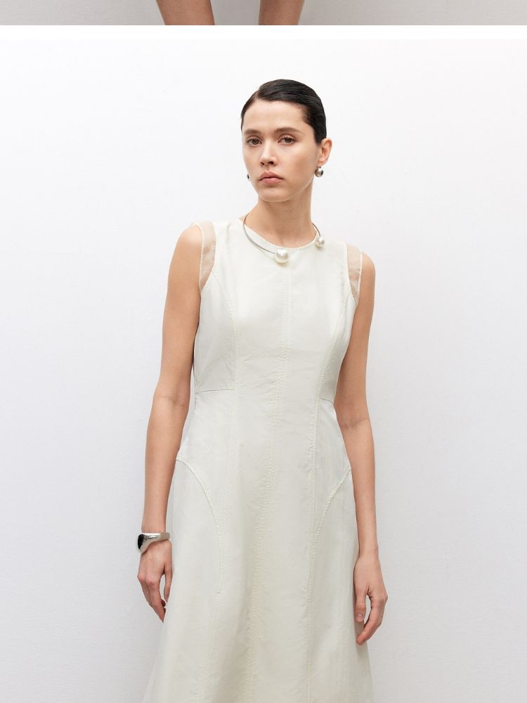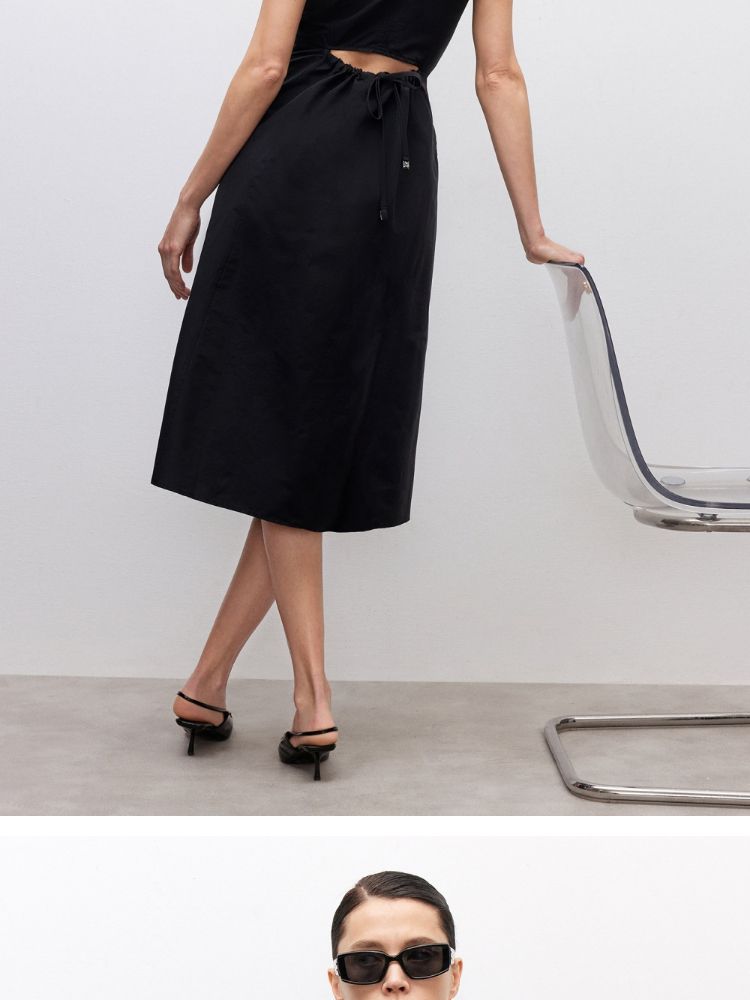 商品名称:【中长裙连衣裙】2025夏季无袖纯色A字露腰绑带连衣裙女 538138