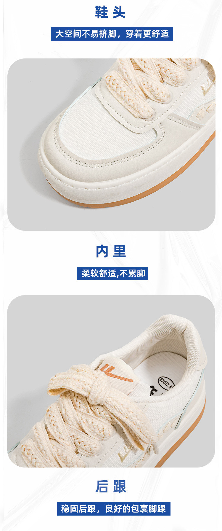 商品名称:【爆款特卖】时尚百搭拼色厚底板鞋女鞋学生党轻便舒适软底小白鞋 414723
