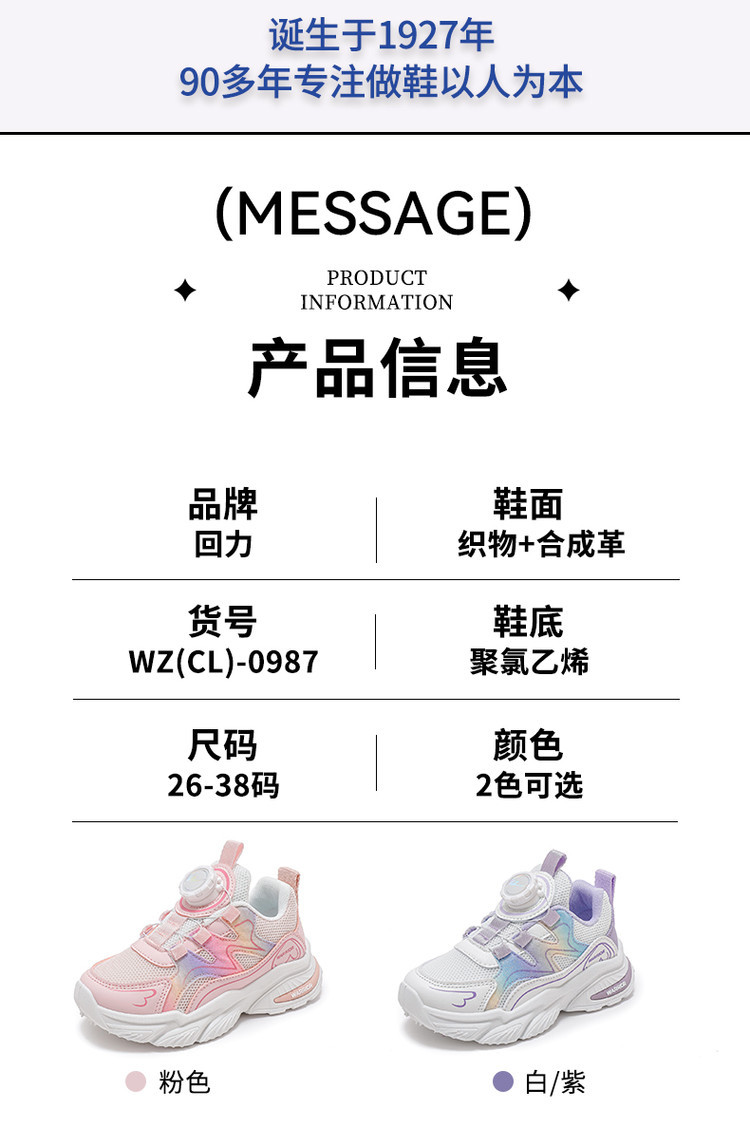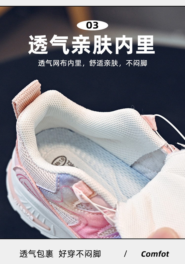 商品名称:女童鞋子儿童运动鞋春秋款软底透气网面轻便休闲鞋 441878