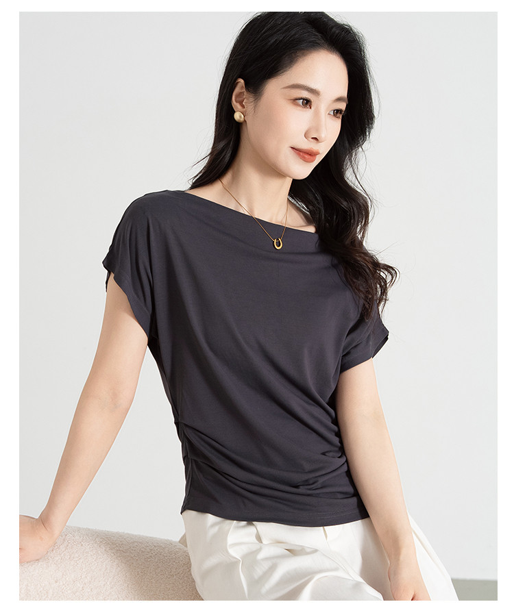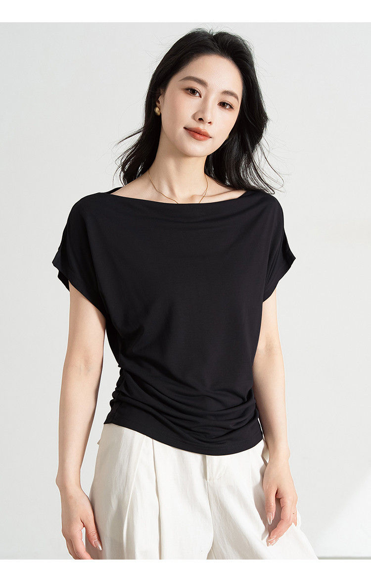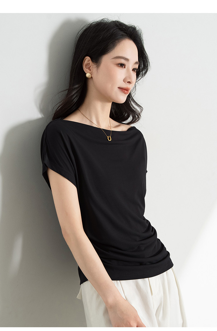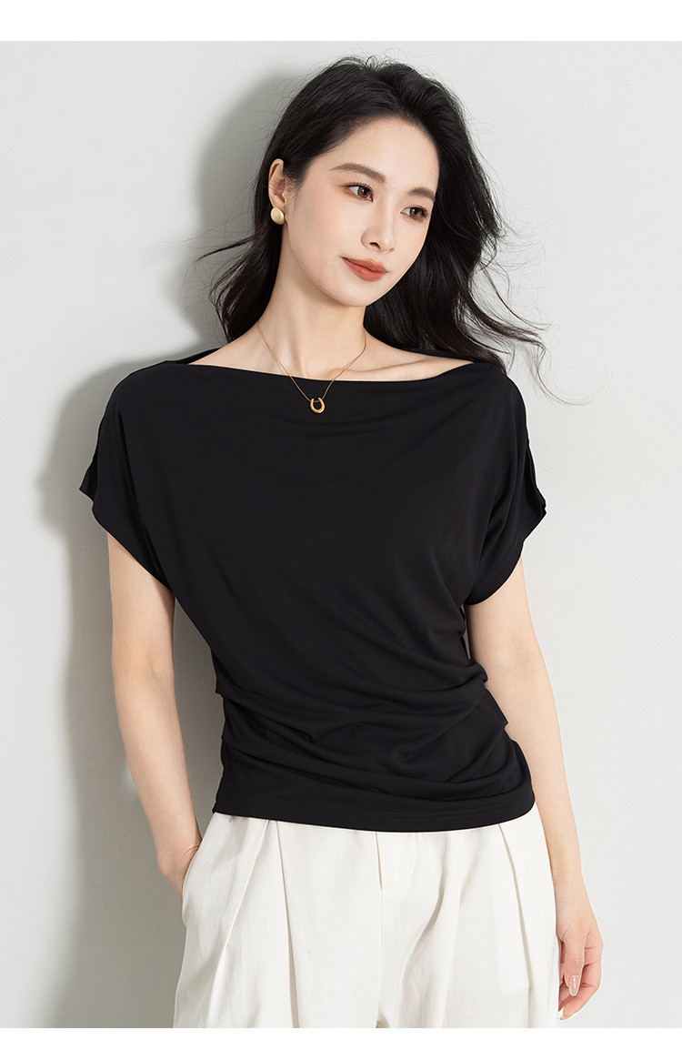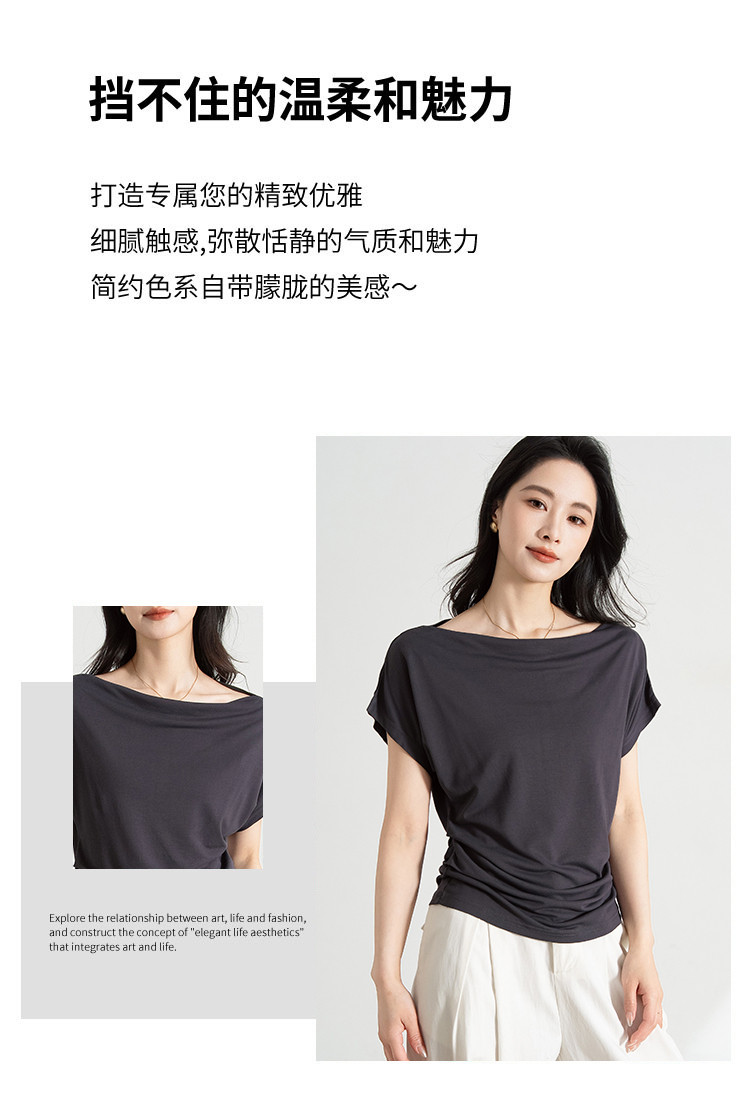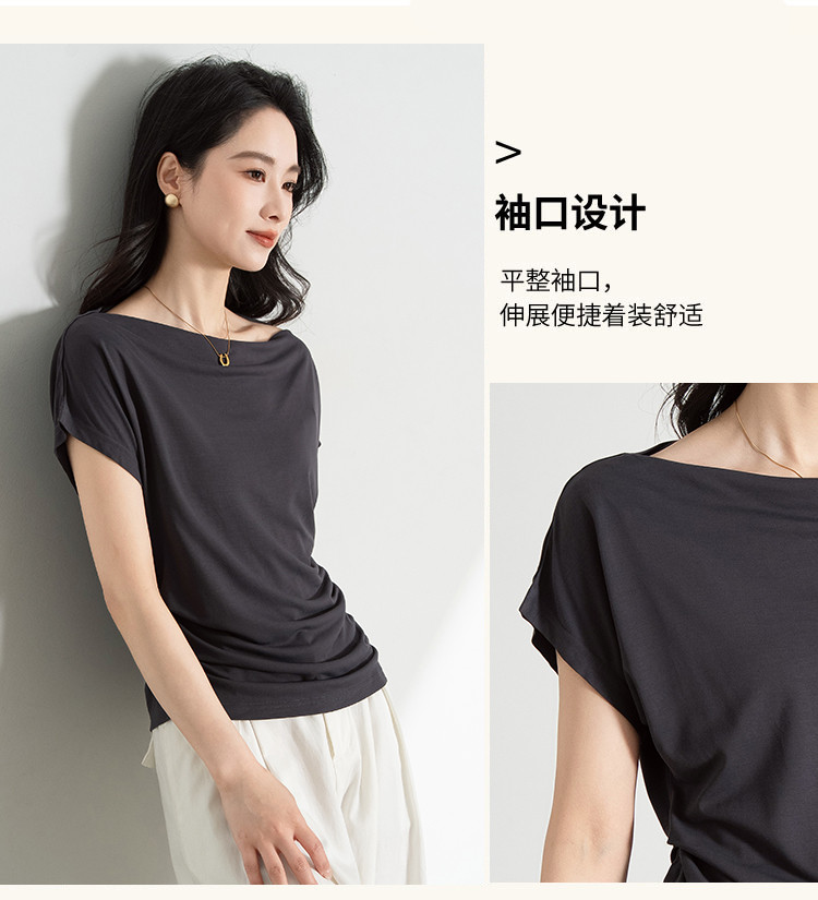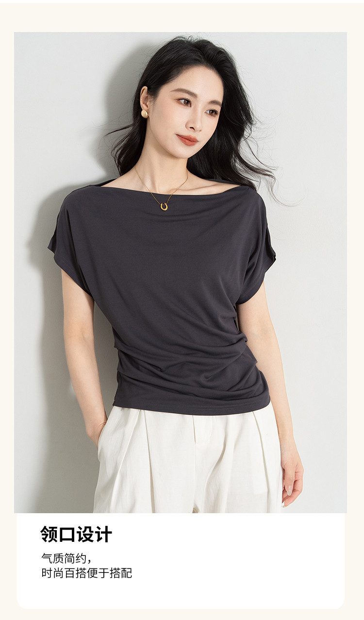 商品名称:【冰丝T恤】一字荡领短袖T恤女2025春夏清爽舒适短袖上衣 901599