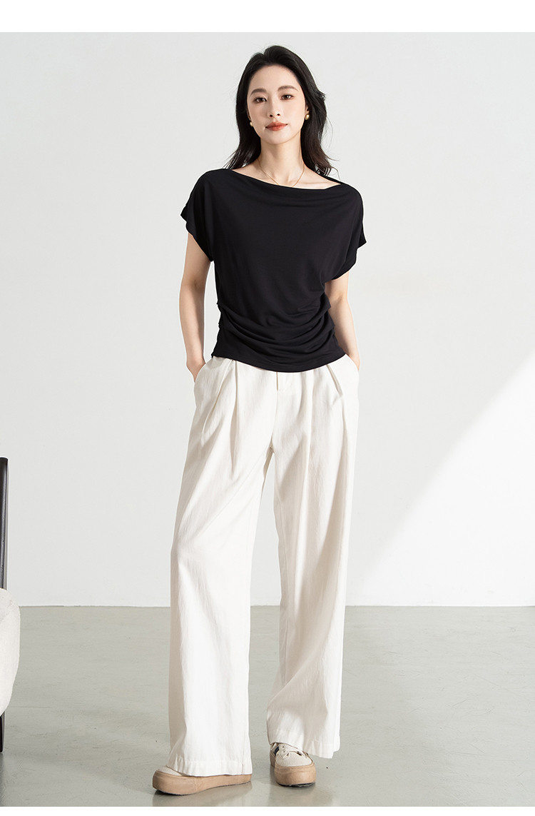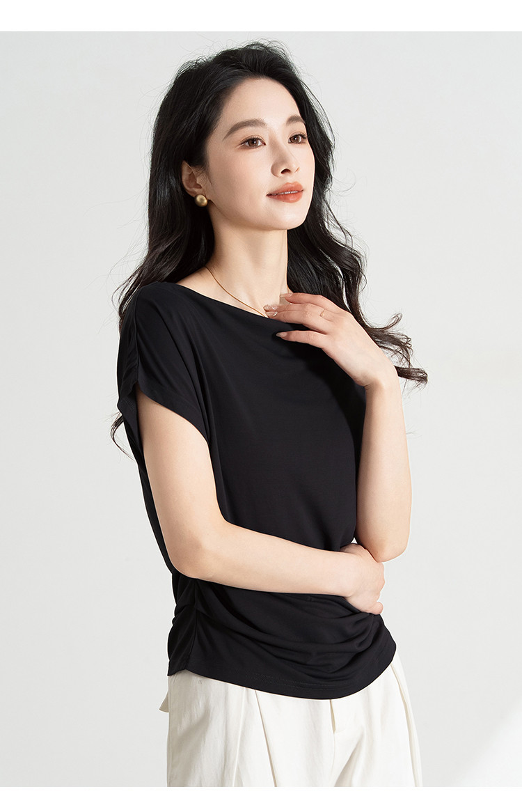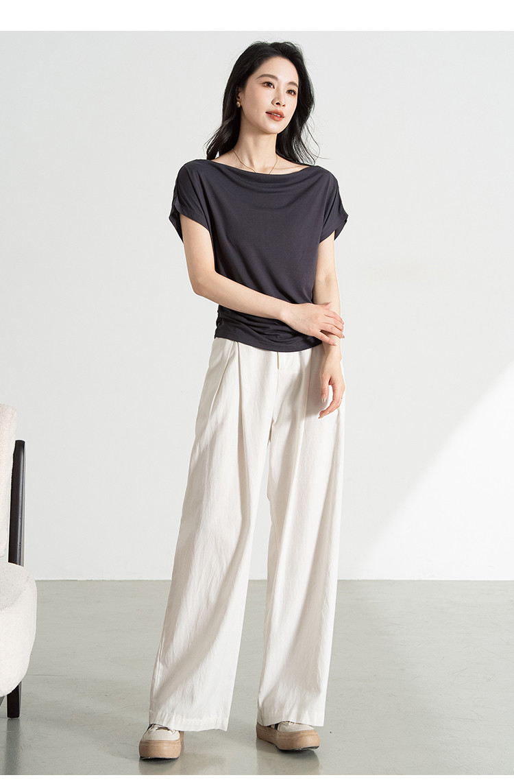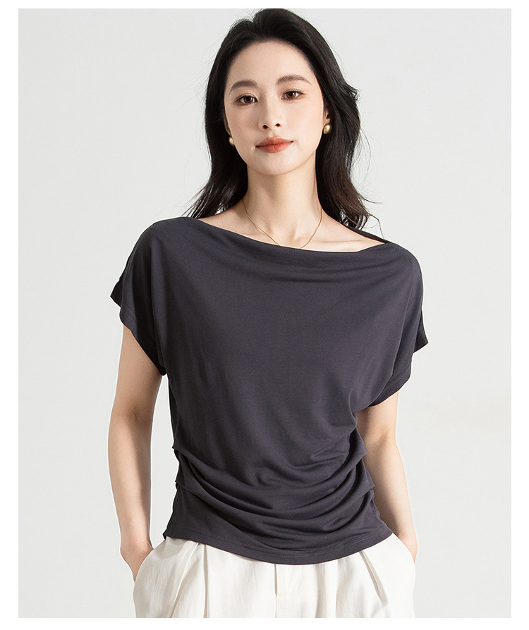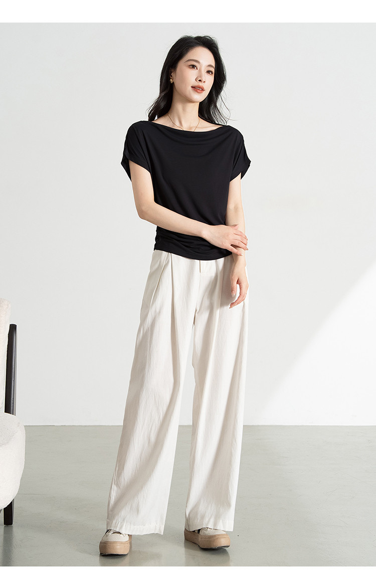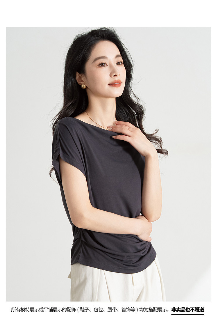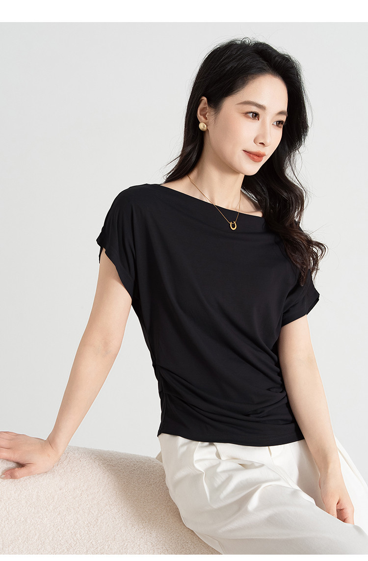 商品名称:【冰丝T恤】一字荡领短袖T恤女2025春夏清爽舒适短袖上衣 901599